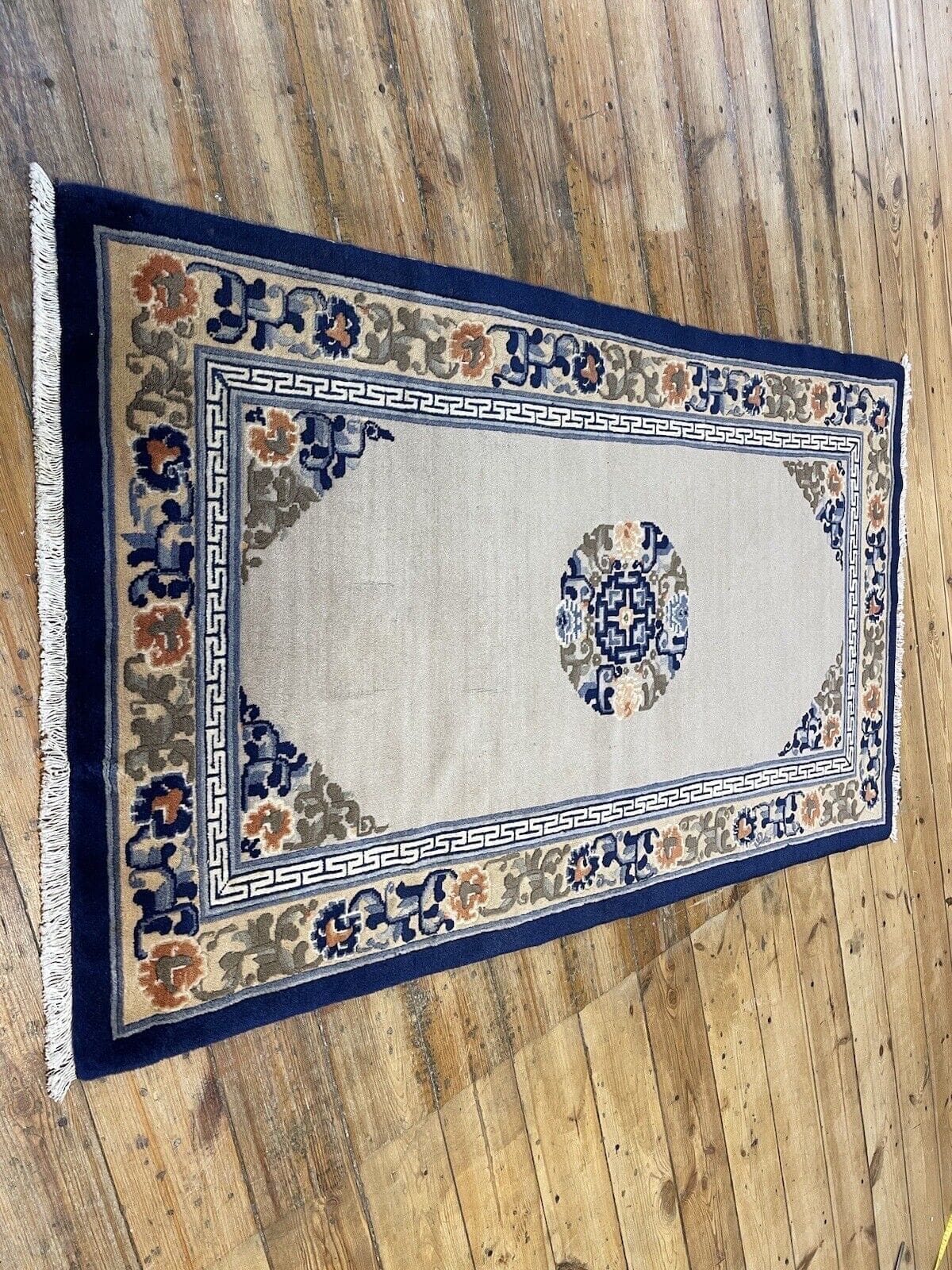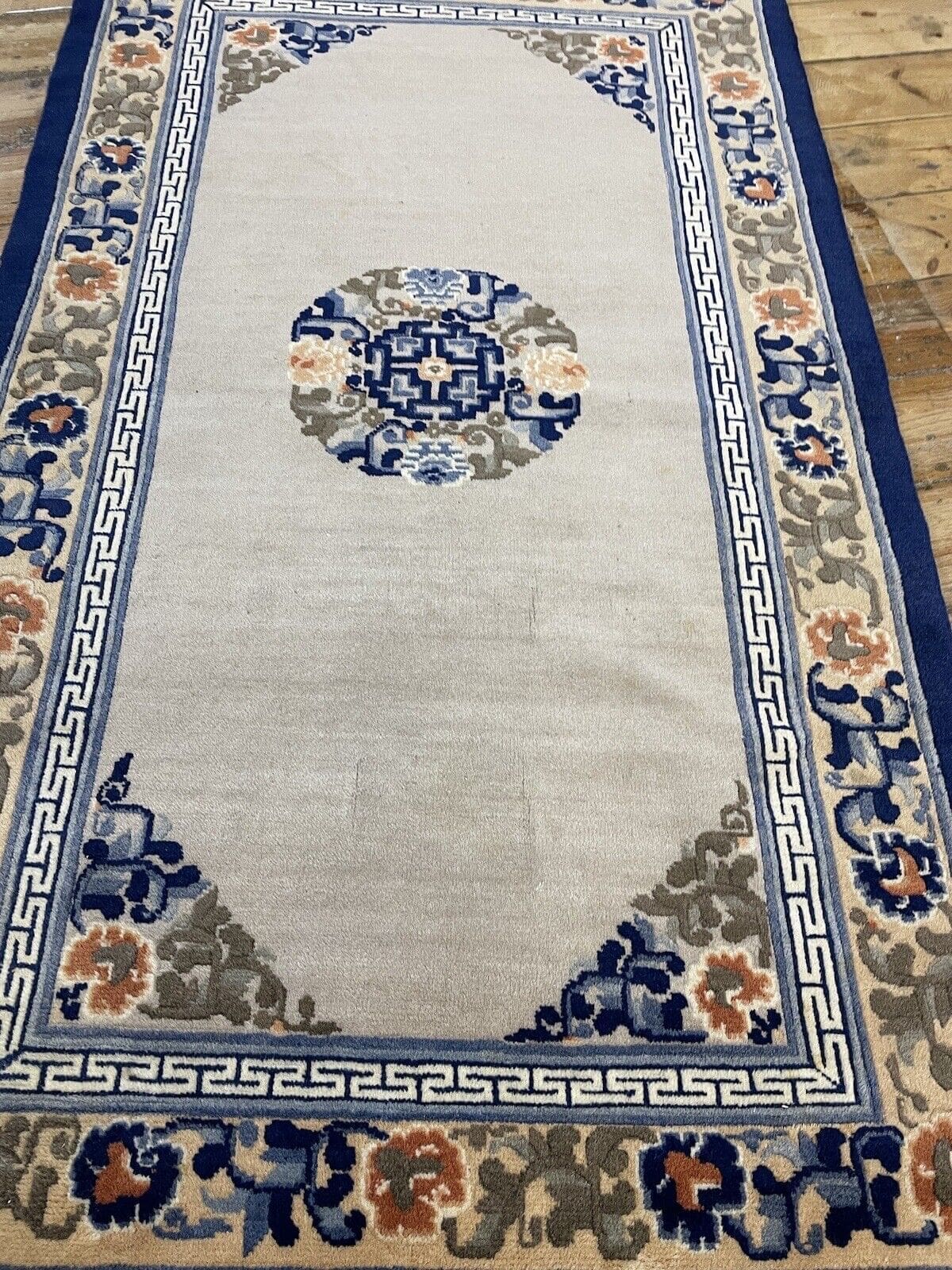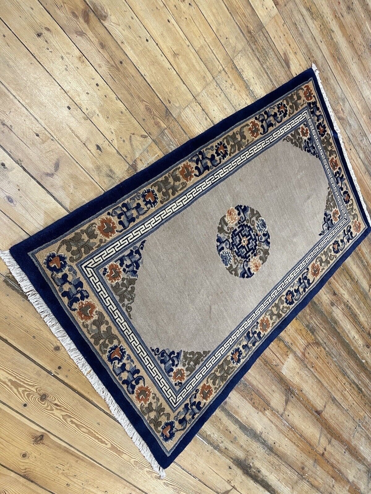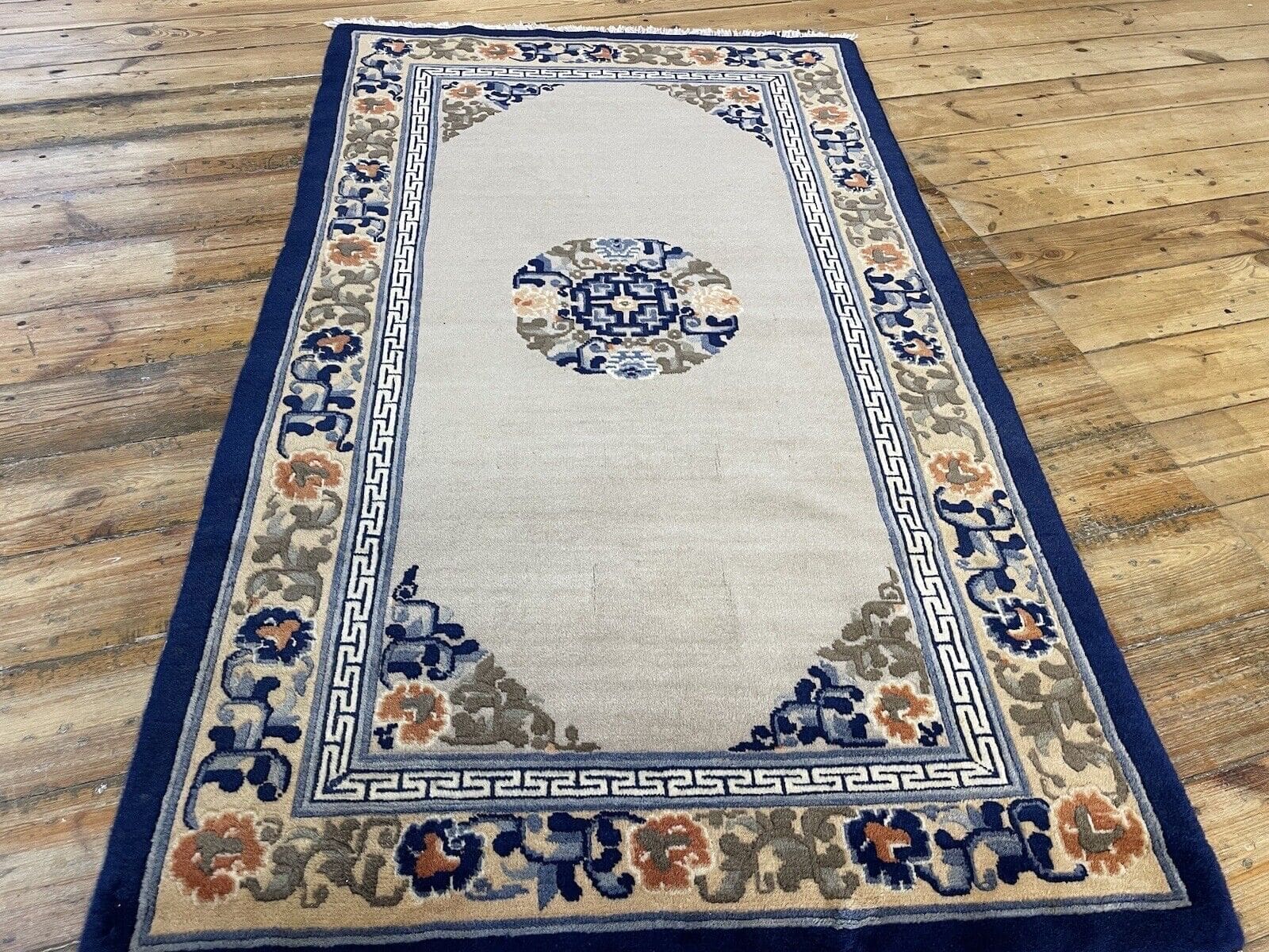 Die Muster auf Ihrem antiken Peking Teppich spiegeln eine lange Tradition der Teppichknüpfkunst wider. Oft sind sie von der Natur, floralen Motiven und geometrischen Formen inspiriert, die in der orientalischen Kultur symbolische Bedeutungen tragen.