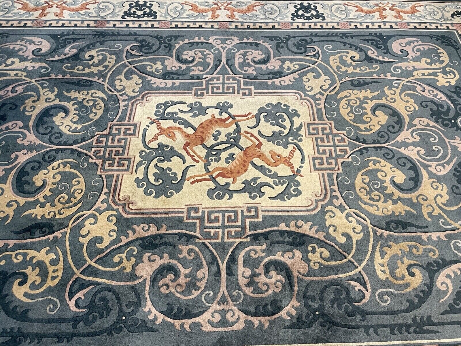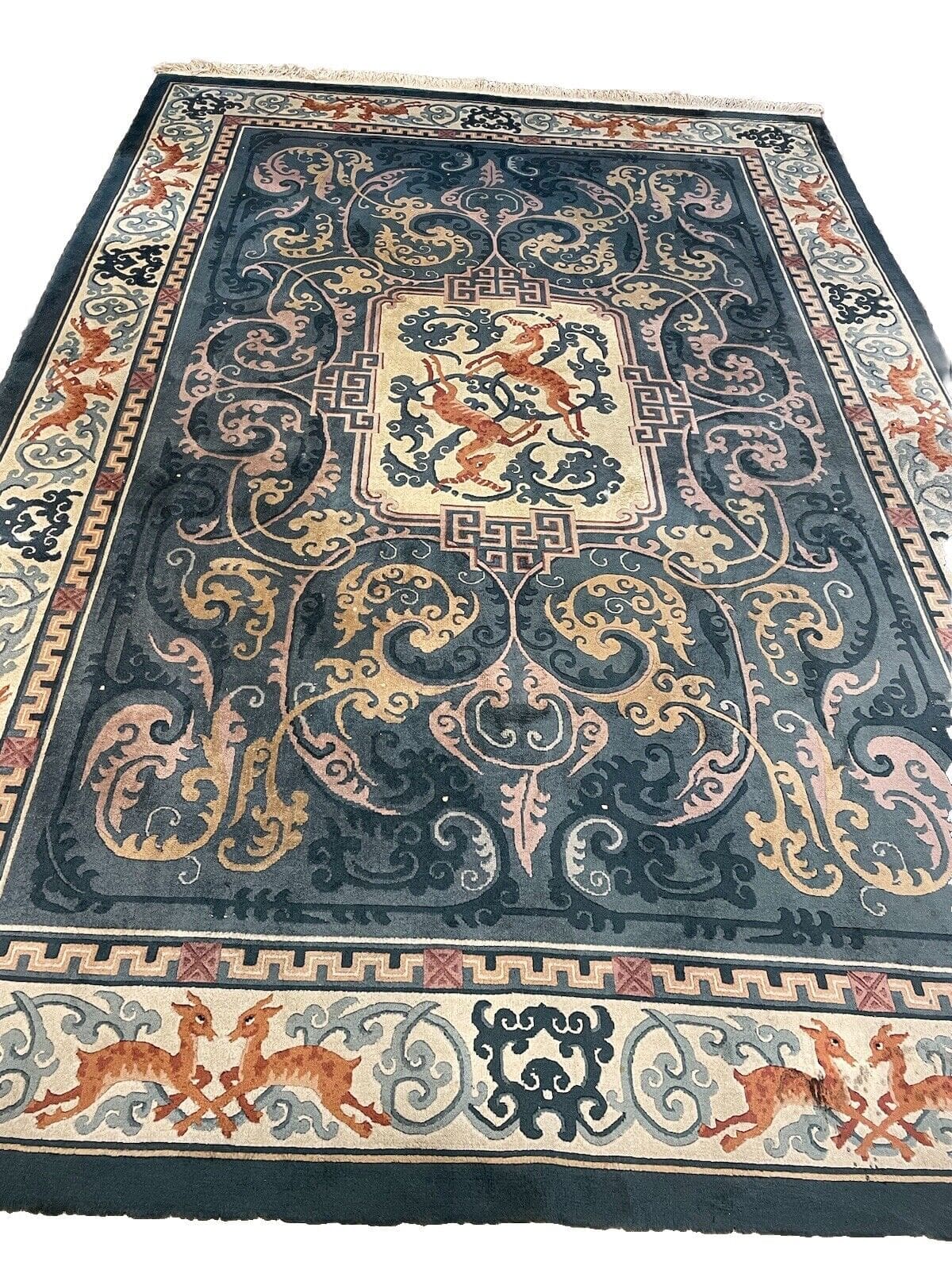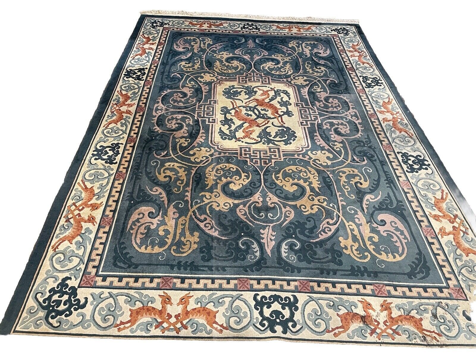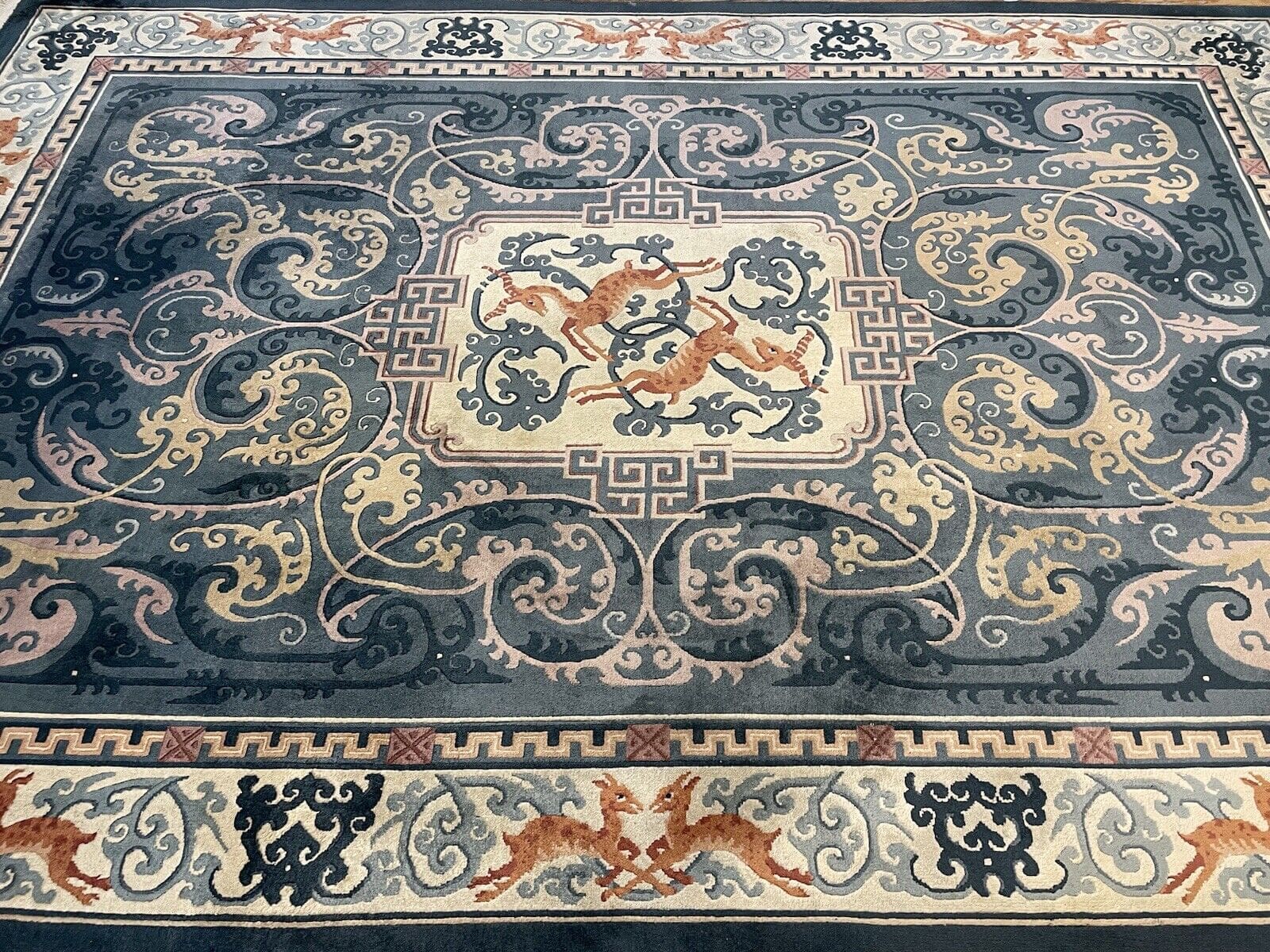 Dieser Teppich stammt aus der renommierten Region Peking, die berühmt für ihre traditionelle Teppichknüpfkunst ist. Die Geschichte des Teppichhandwerks in dieser Region reicht viele Jahrhunderte zurück. Peking ist nicht nur die Hauptstadt Chinas, sondern auch ein kulturelles Zentrum, in dem Kunst und Handwerk auf einzigartige Weise verschmelzen. Hier wurden unzählige Teppiche gefertigt, die die Vielfalt und Schönheit der chinesischen Kultur widerspiegeln.