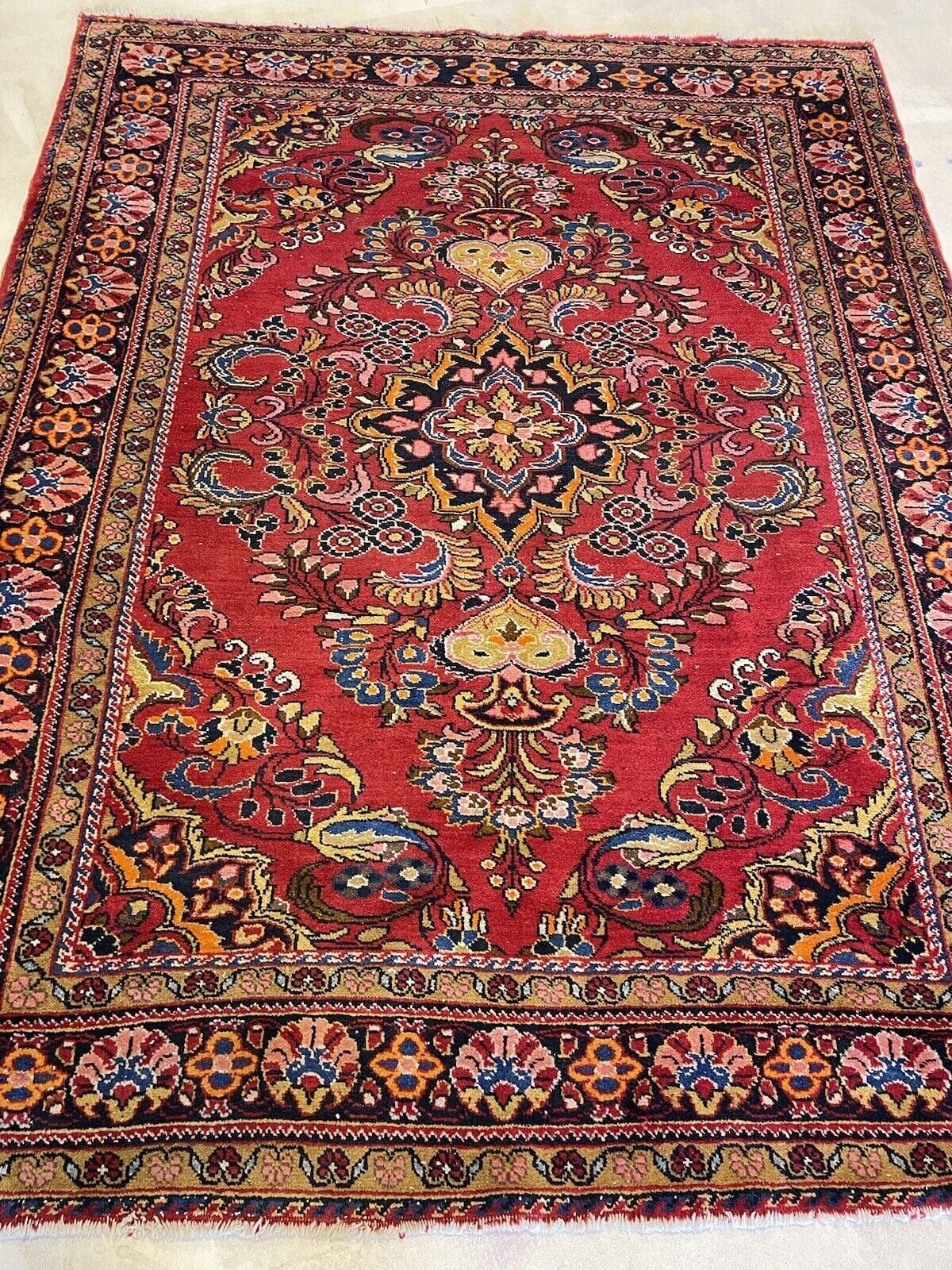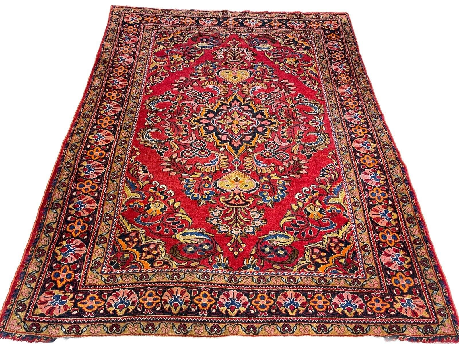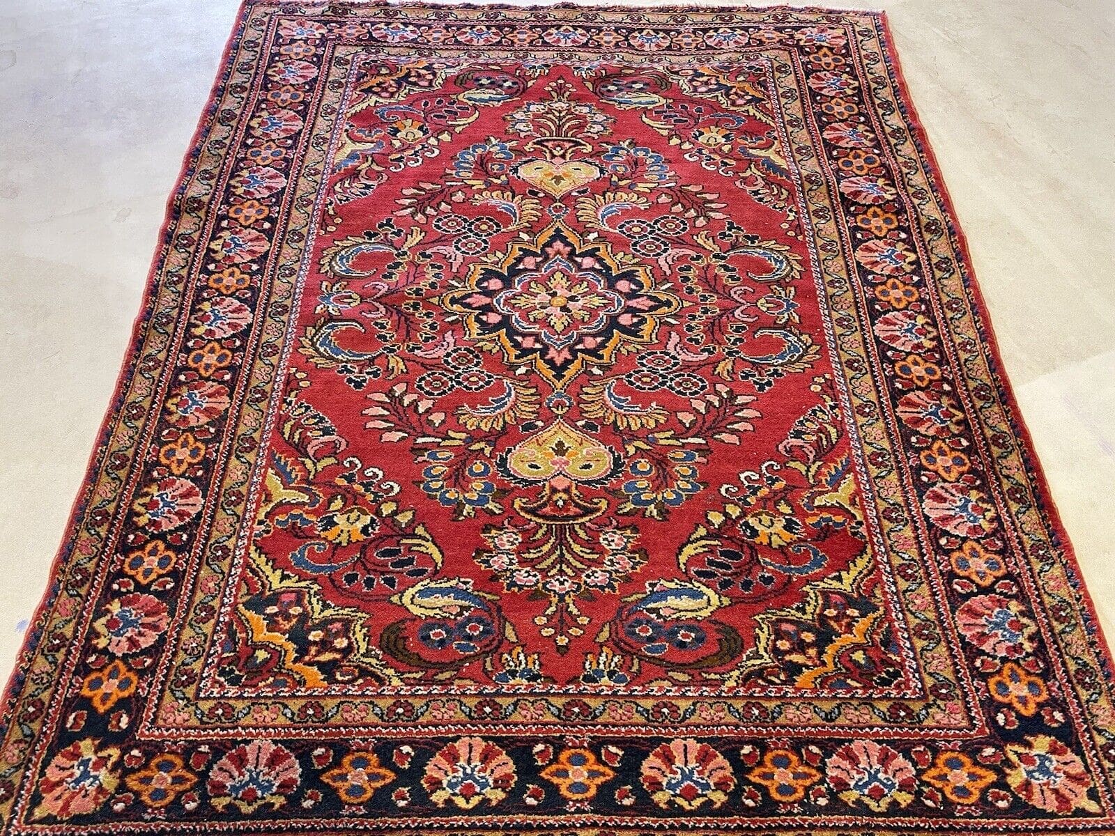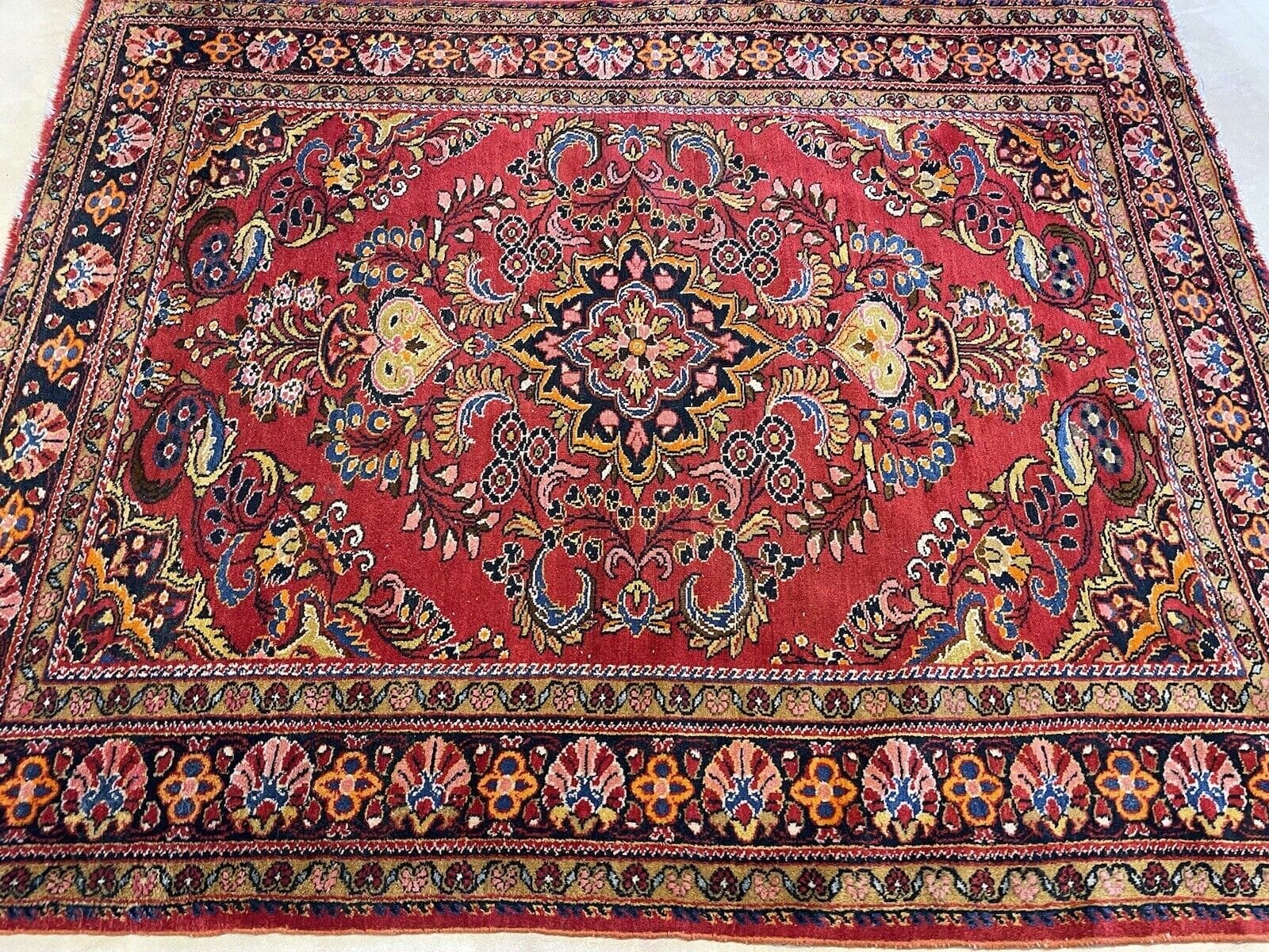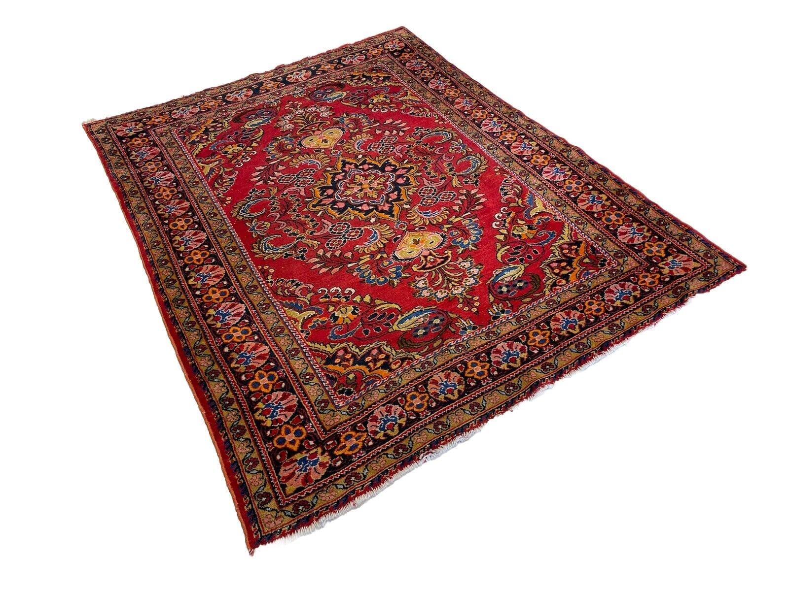 Antiker persischer Teppich | Größe: 185×150 cm | Material: 100% Wolle | Muster: Geblümt | Florhöhe: 5 mm | Zustand: Gebraucht | Ursprung: Iran | Stil: Antik | Herstellungsart: Handgeknüpft | Epochen: Frühes 20. Jahrhundert (1911-1940)