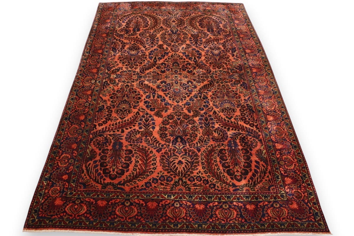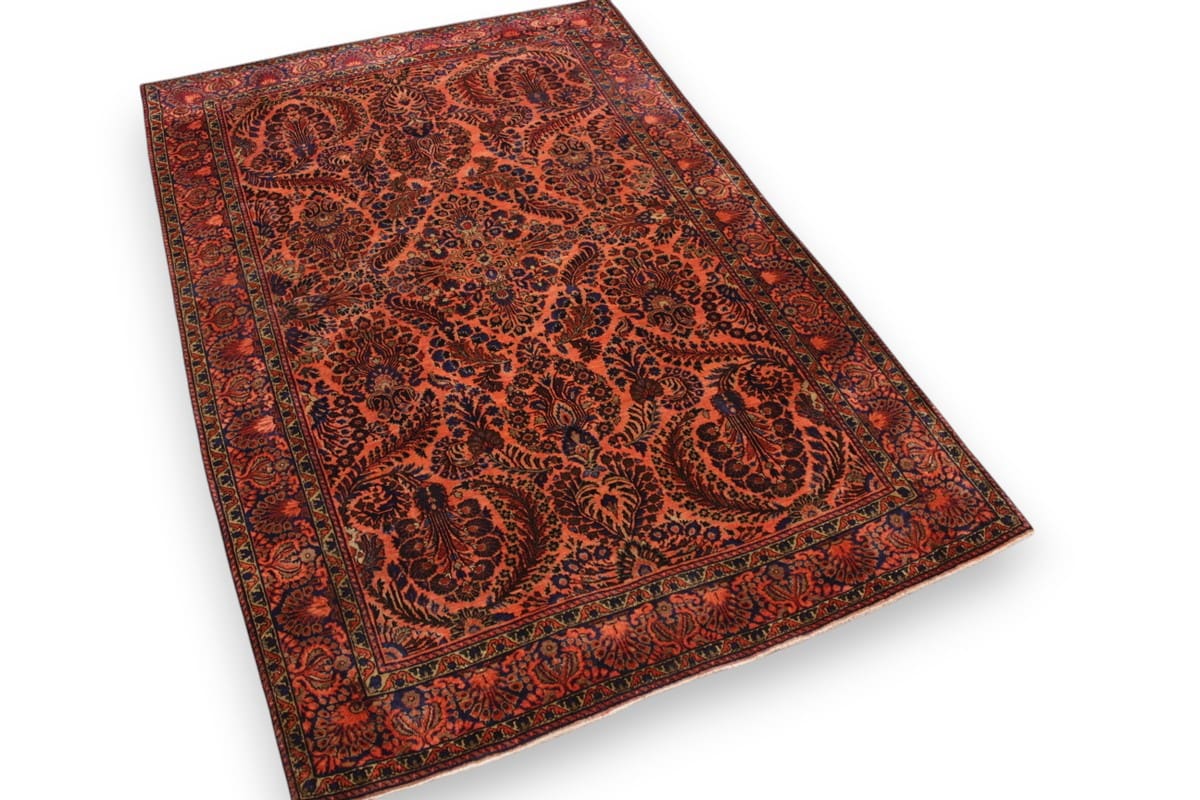 Antiker Perserteppich Sarough 202×131 cm – Farbenfrohes Blumenmuster, handgeknüpft