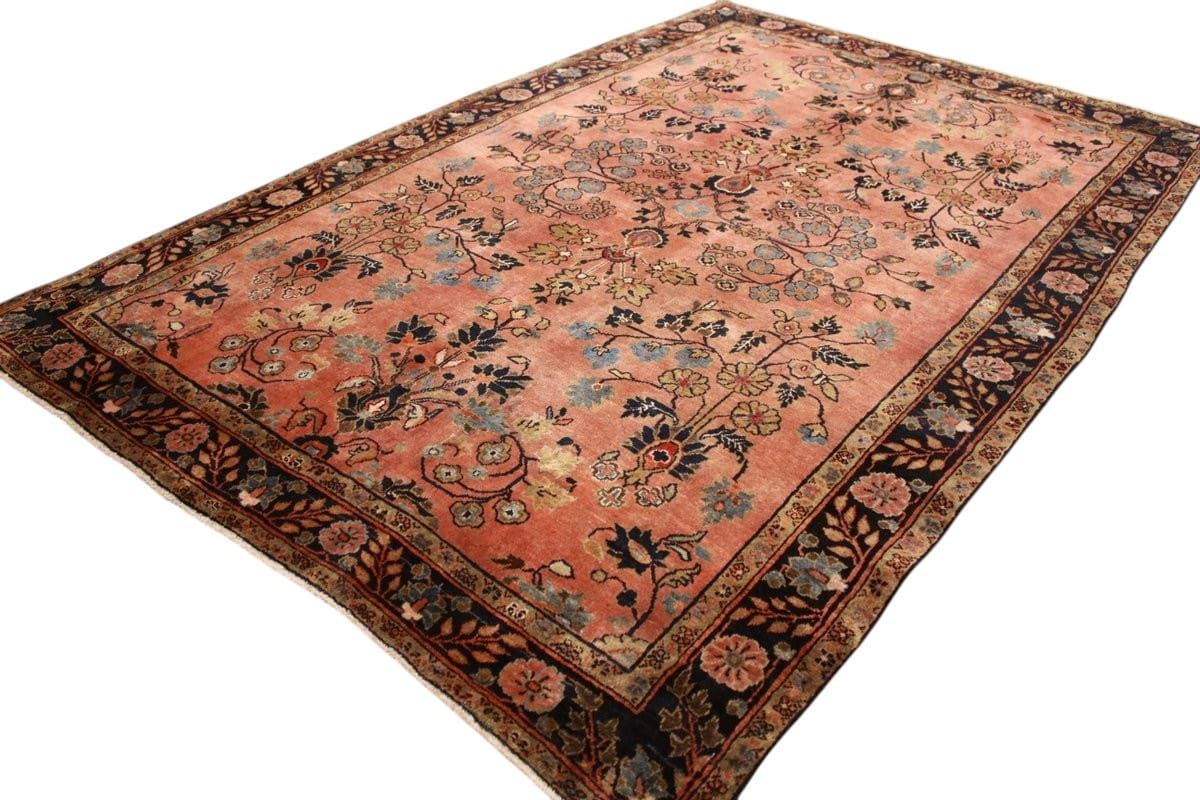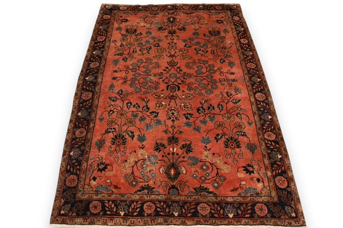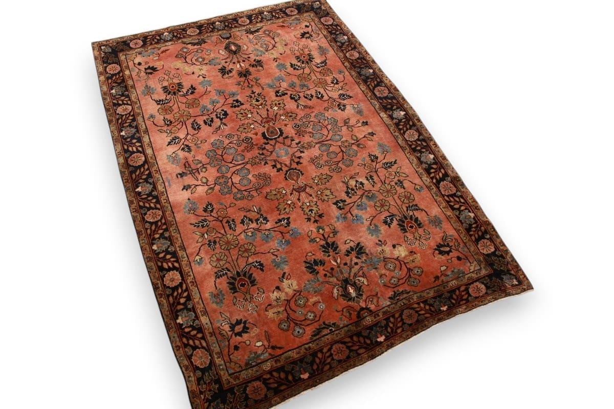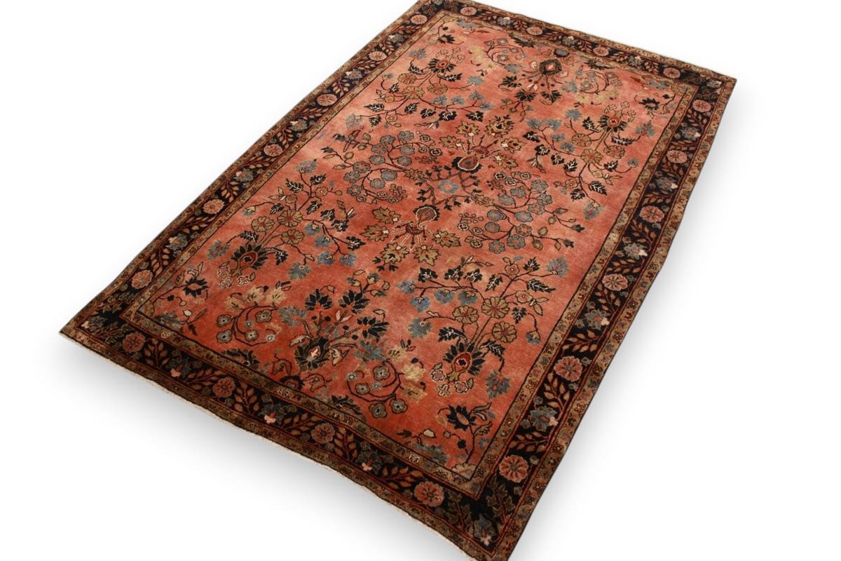 Antiker Perserteppich Sarough | Knotendichte: 400.000 Knoten/m² | Material: Hochwertige Wolle | Größe: 202×136 cm | Zustand: Sehr gut | Ursprung: Iran | Muster: Farbenfrohe Blatt- und Blumenmotive