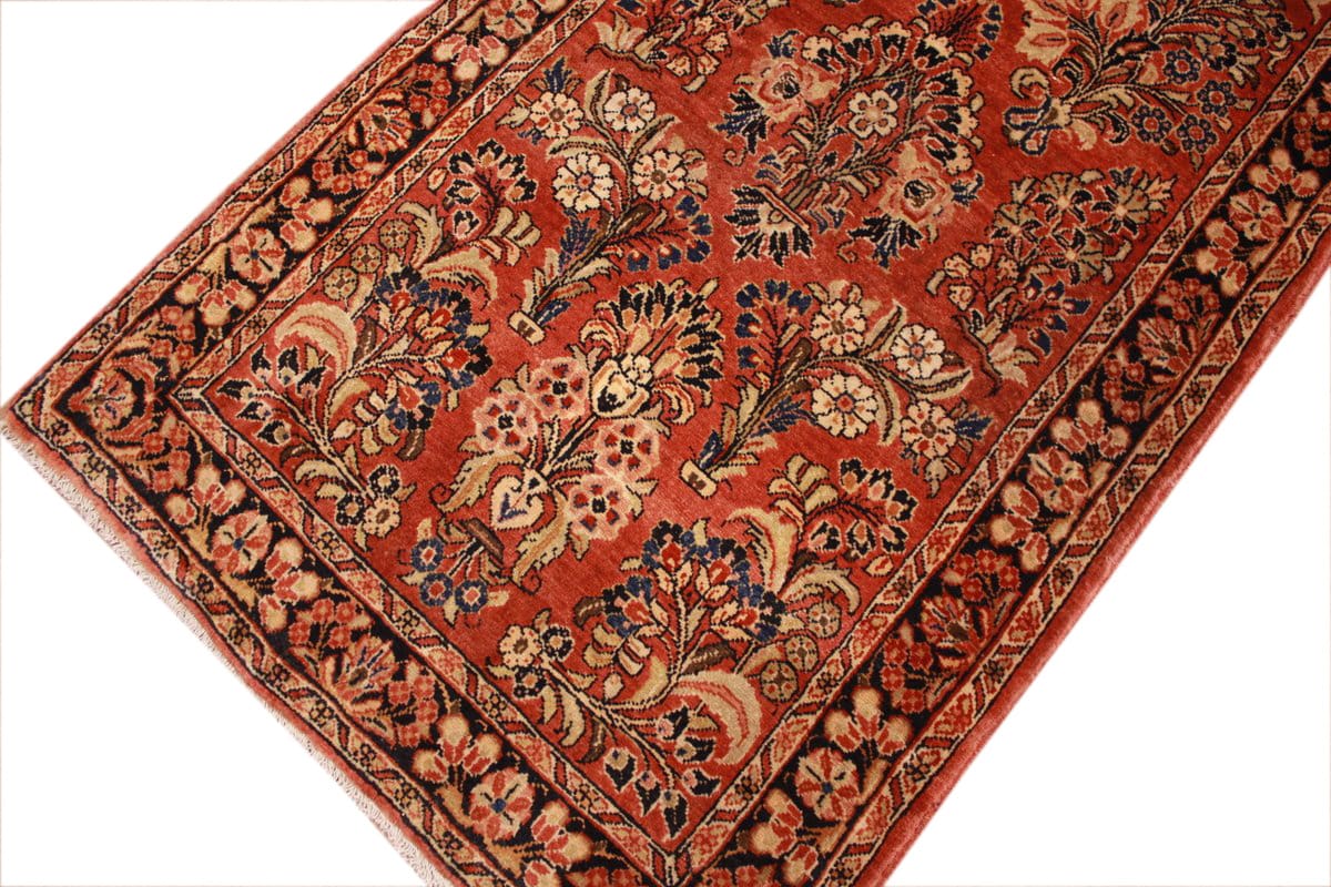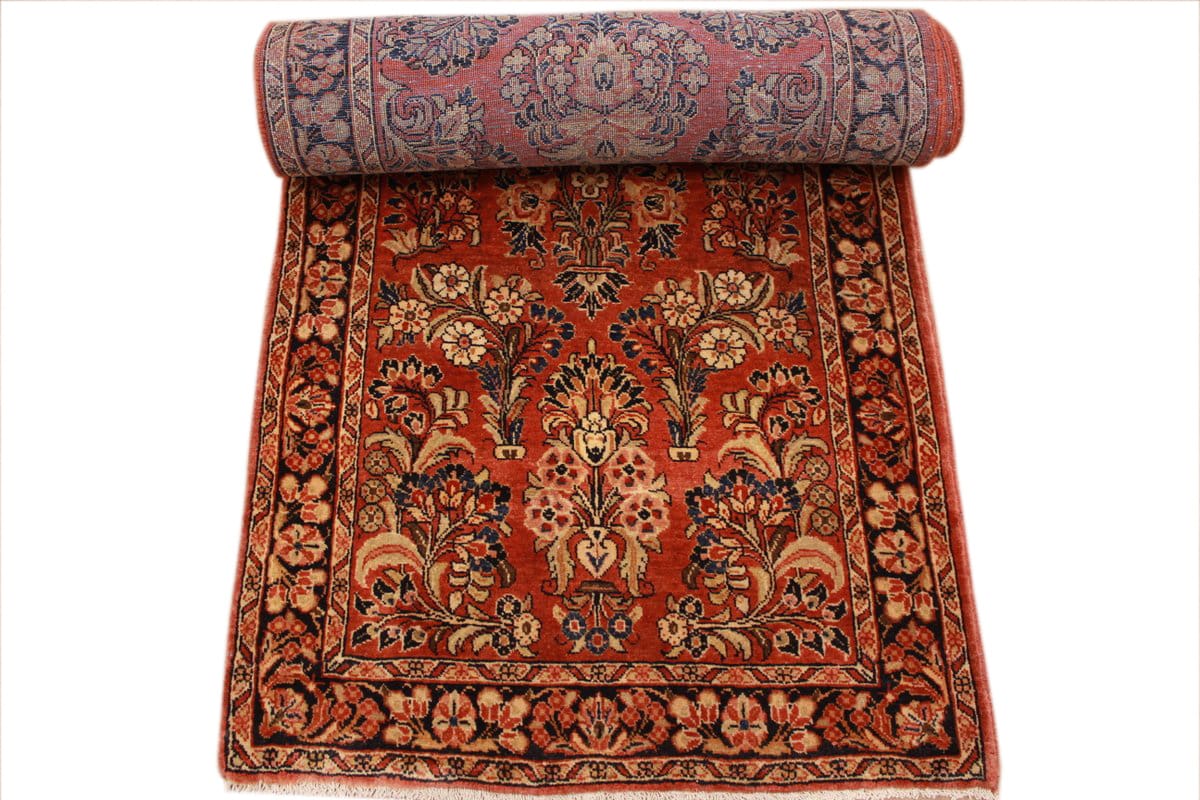 Antiker Perserteppich Sarough 416×85 cm, Blumenmuster, handgeknüpft