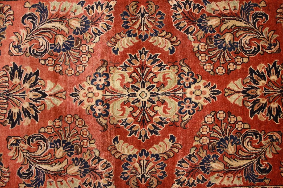 Das florale Muster des antiken Sarough-Teppichs ist besonders hervorzuheben. Blumenmotive symbolisieren im orientalischen Raum häufig Fruchtbarkeit und das Leben selbst. Die kunstvollen Blumen umgeben geometrische Elemente, die eine harmonische Balance schaffen. Solche Muster sind nicht nur ästhetisch ansprechend, sondern erzählen auch Geschichten aus der persischen Kultur.