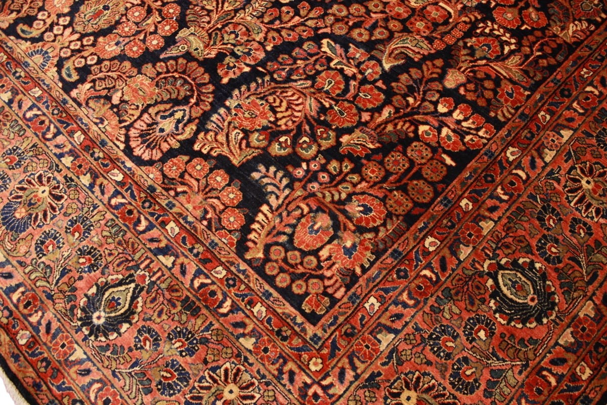 Antiker Perserteppich Sarough | Knotendichte: Hoch | Muster: Farbenfrohe Blatt- und Blumenmotive | Größe: 421×306 cm | Material: Hochwertige Wolle | Zustand: Antik, sehr gut erhalten | Ursprung: Persien