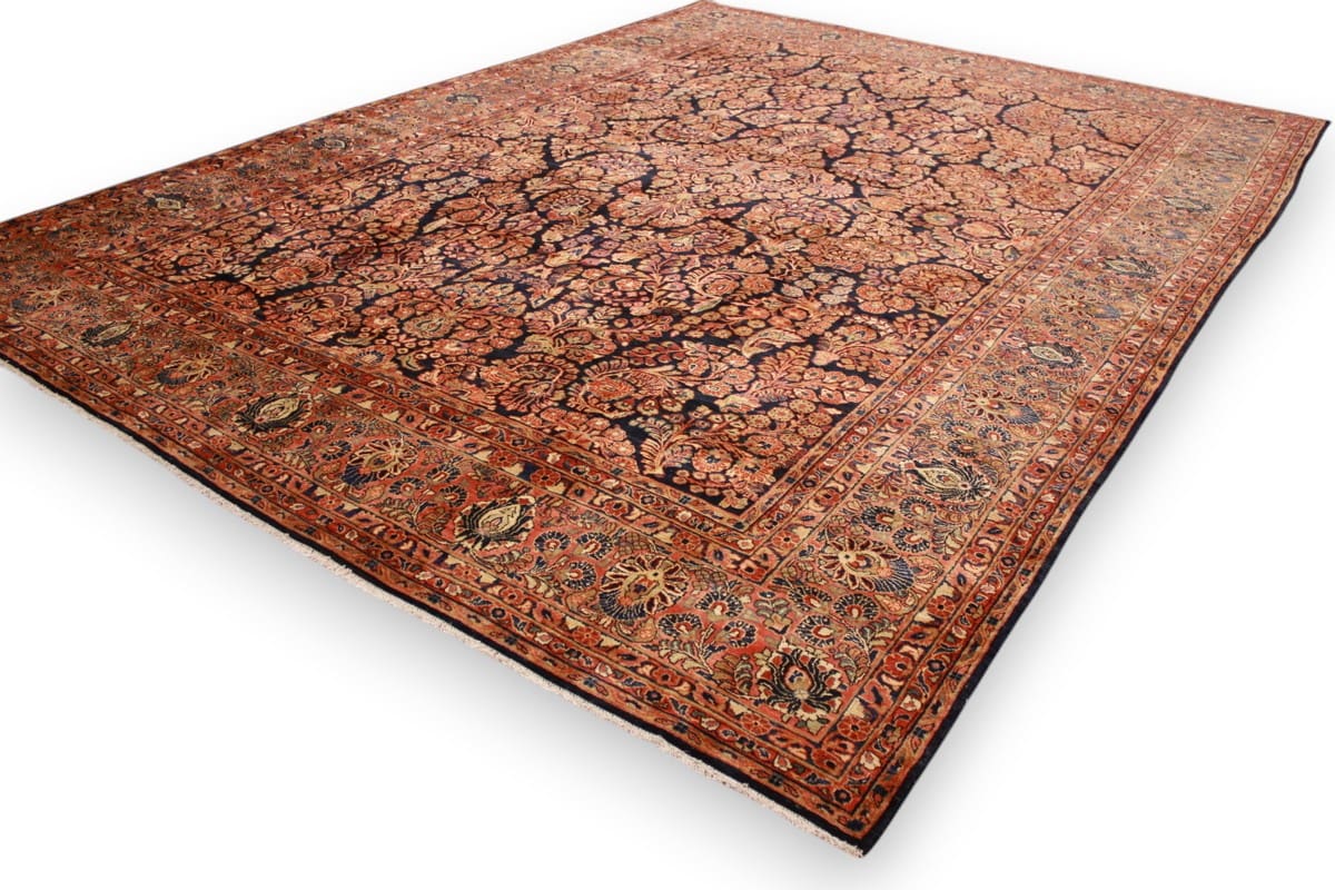 Antiker Perserteppich Sarough 421×306 cm – Farbenfrohe Blumenmuster, handgeknüpft