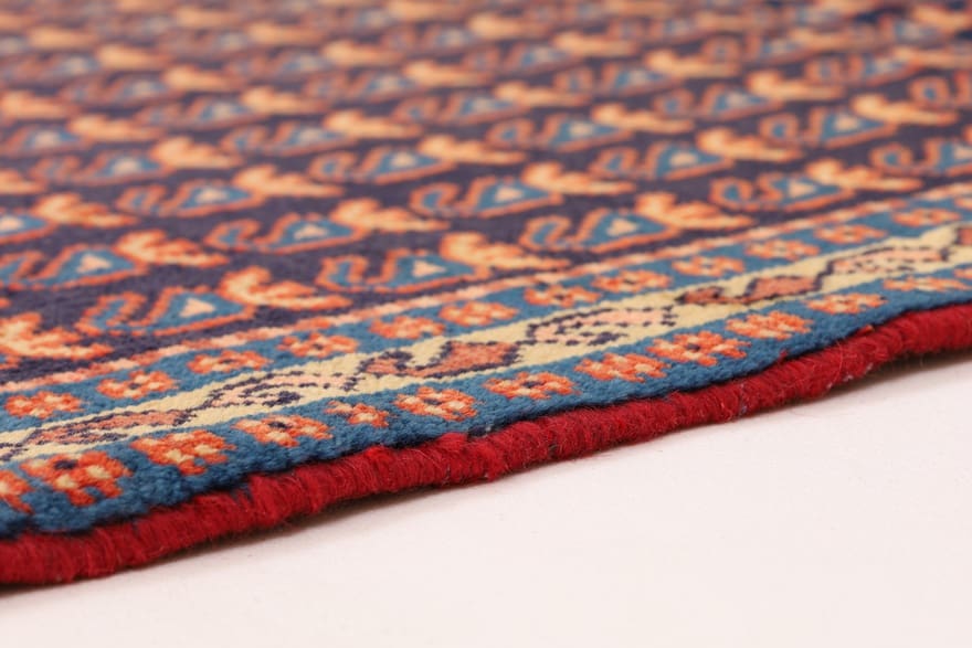 Echte Sarough Teppiche sind handgeknüpft und zeichnen sich durch eine hohe Knotendichte aus. Achten Sie auch auf die Rückseite des Teppichs, wo die Knotentechnik und das verwendete Material sichtbar werden. Ein authentischer Sarough zeichnet sich zudem durch Qualität und Detailtreue in Mustern und Farben aus.