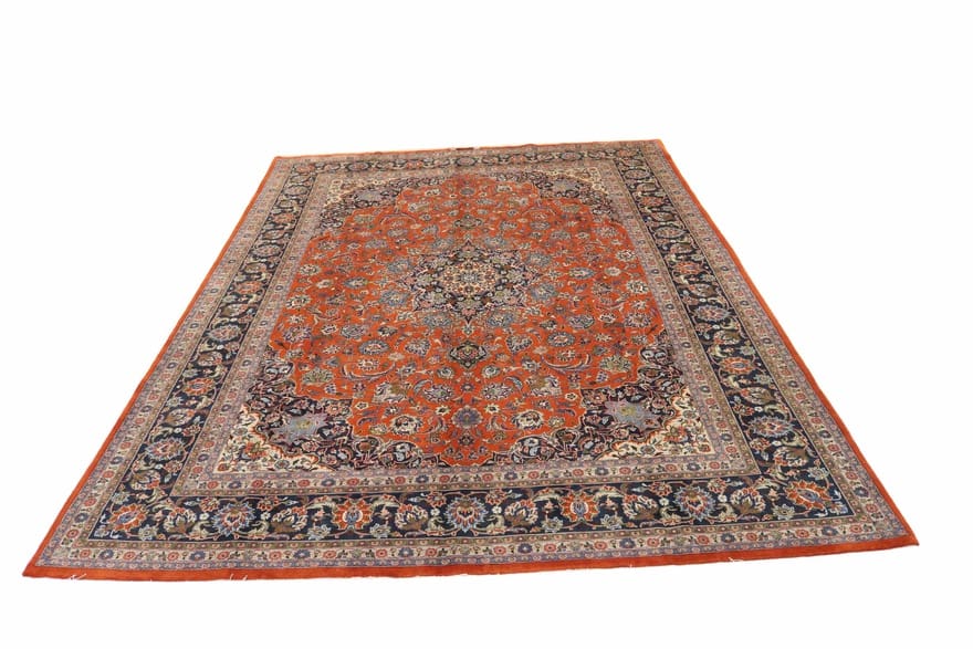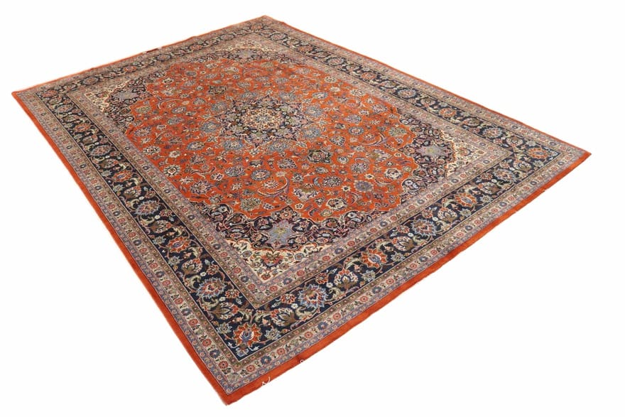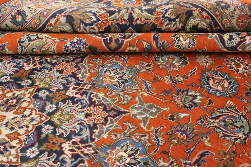Sarough Teppich | Knotendichte: 200.000 – 250.000 Knoten/m² | Material: Handgesponnene Wolle und Baumwollkette | Größe: 402×286 cm | Farbe: Rot/Orange | Zustand: Neu | Ursprung: Iran/Persien | Dicke: ca. 10 mm | Gewicht: ca. 45 kg | Verarbeitung: Handgeknüpft | Form: Rechteckig