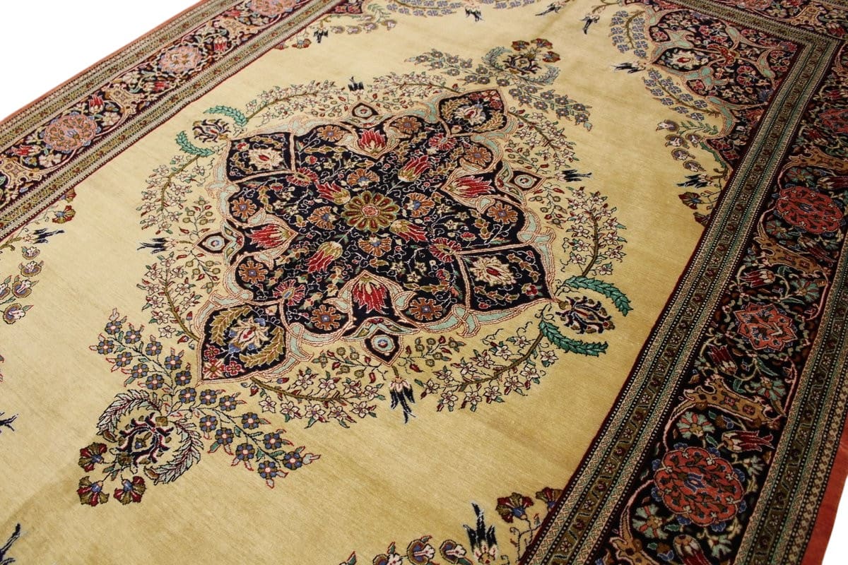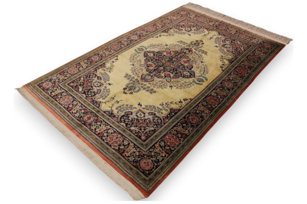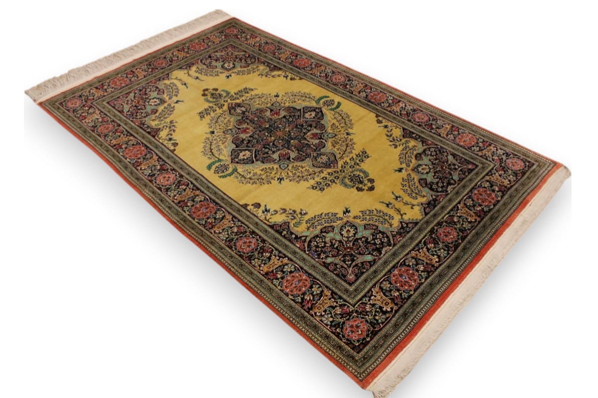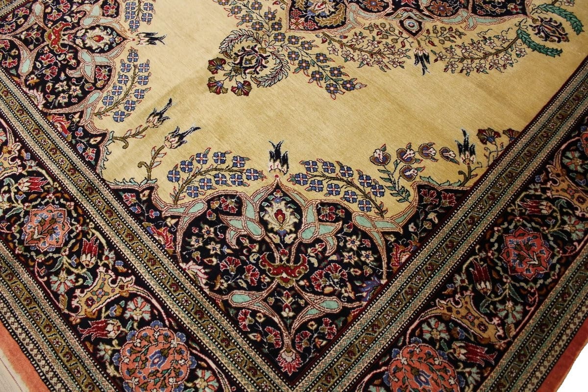 Antiker Seidenteppich Ghom 204×139 cm Gold, handgeknüpft, Perserteppich
