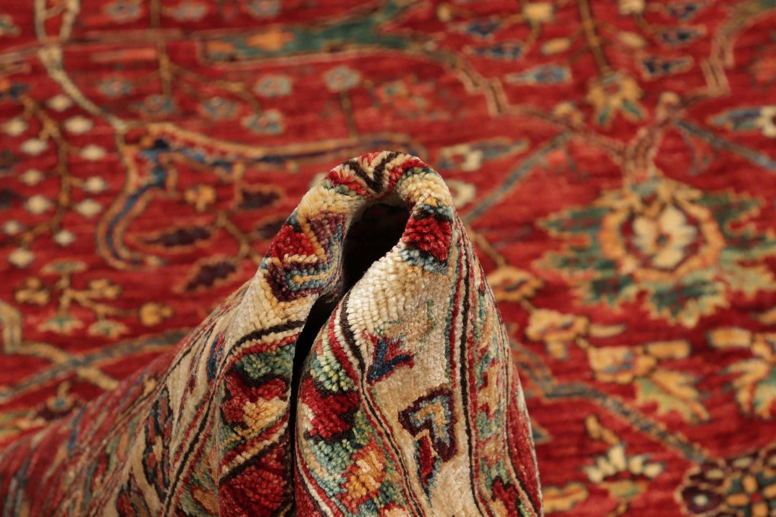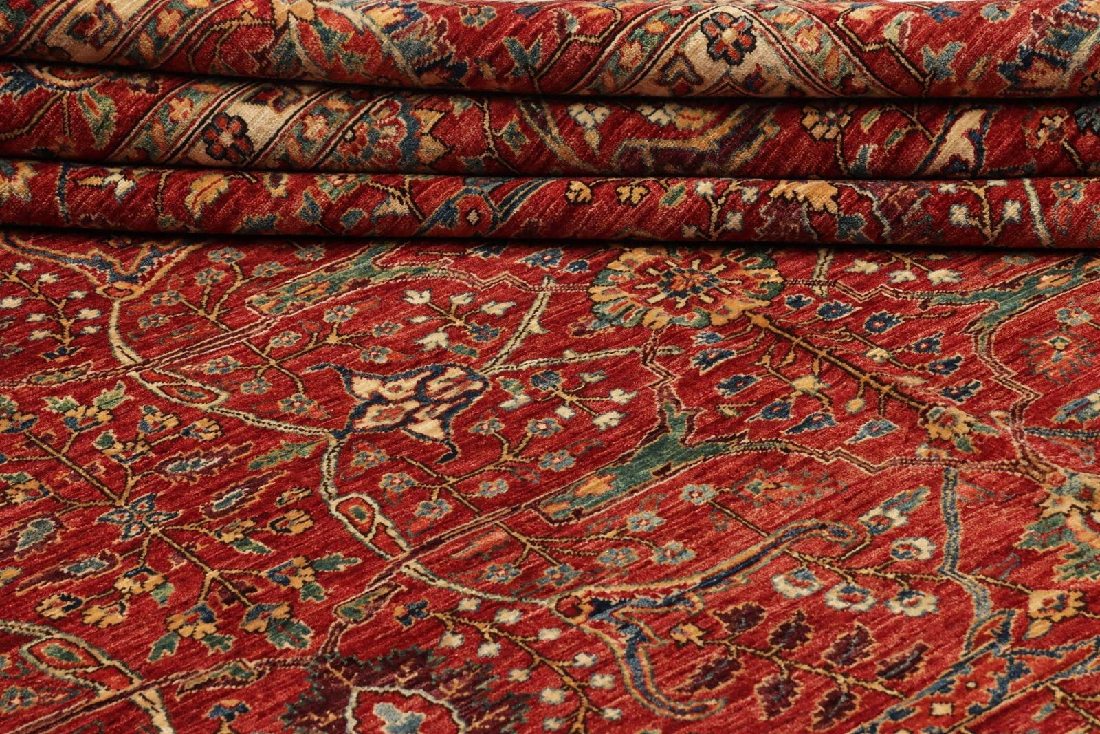Der Ariana Orientteppich besteht zu 100 % aus feiner Schurwolle, die ihm eine außergewöhnliche Weichheit und eine lebendige Farbtiefe verleiht. Schurwolle hat die Fähigkeit, Wärme zu speichern und gleichzeitig Feuchtigkeit zu regulieren, was den Teppich ideal für sämtliches Raumklima macht. Die handknüpfte Technik sorgt für eine hohe Präzision und Detailverliebtheit, die bei maschinell gefertigten Teppichen oft verloren geht. Jedes Knotengefüge ist ein Unikat und erzählt die Geschichte von traditioneller Handwerkskunst, die in den Herkunftsländern seit Generationen gepflegt wird.