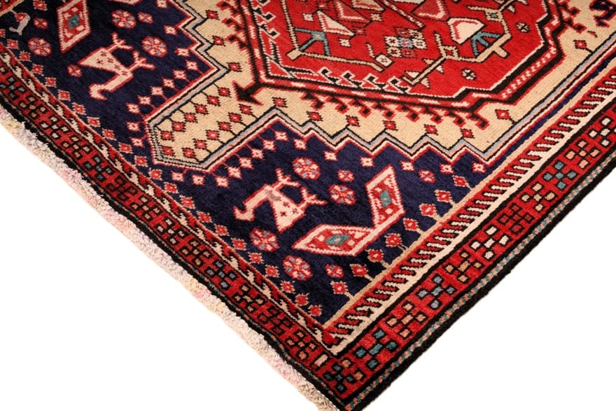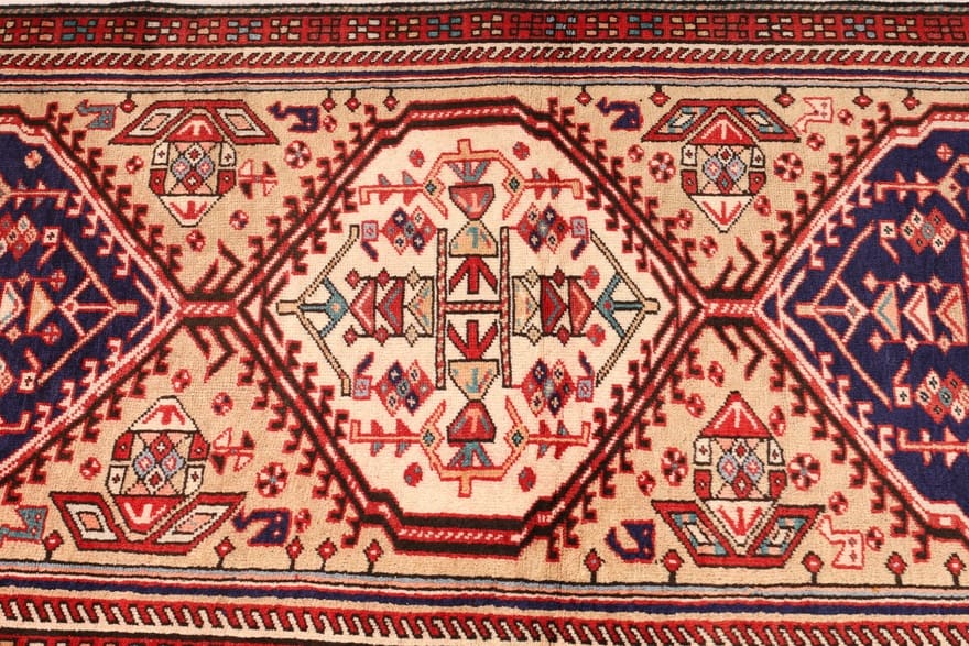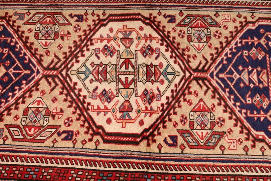 Typische Farben, die in den Teppichen aus Azarbaijan vorkommen, sind tiefes Rot, Blau, und Goldtöne, die sich harmonisch ergänzen und dem Teppich eine warme und einladende Ausstrahlung verleihen. Diese Farbpalette macht den Teppich zu einem idealen Begleiter für verschiedene Einrichtungsstile – von traditionell bis modern.