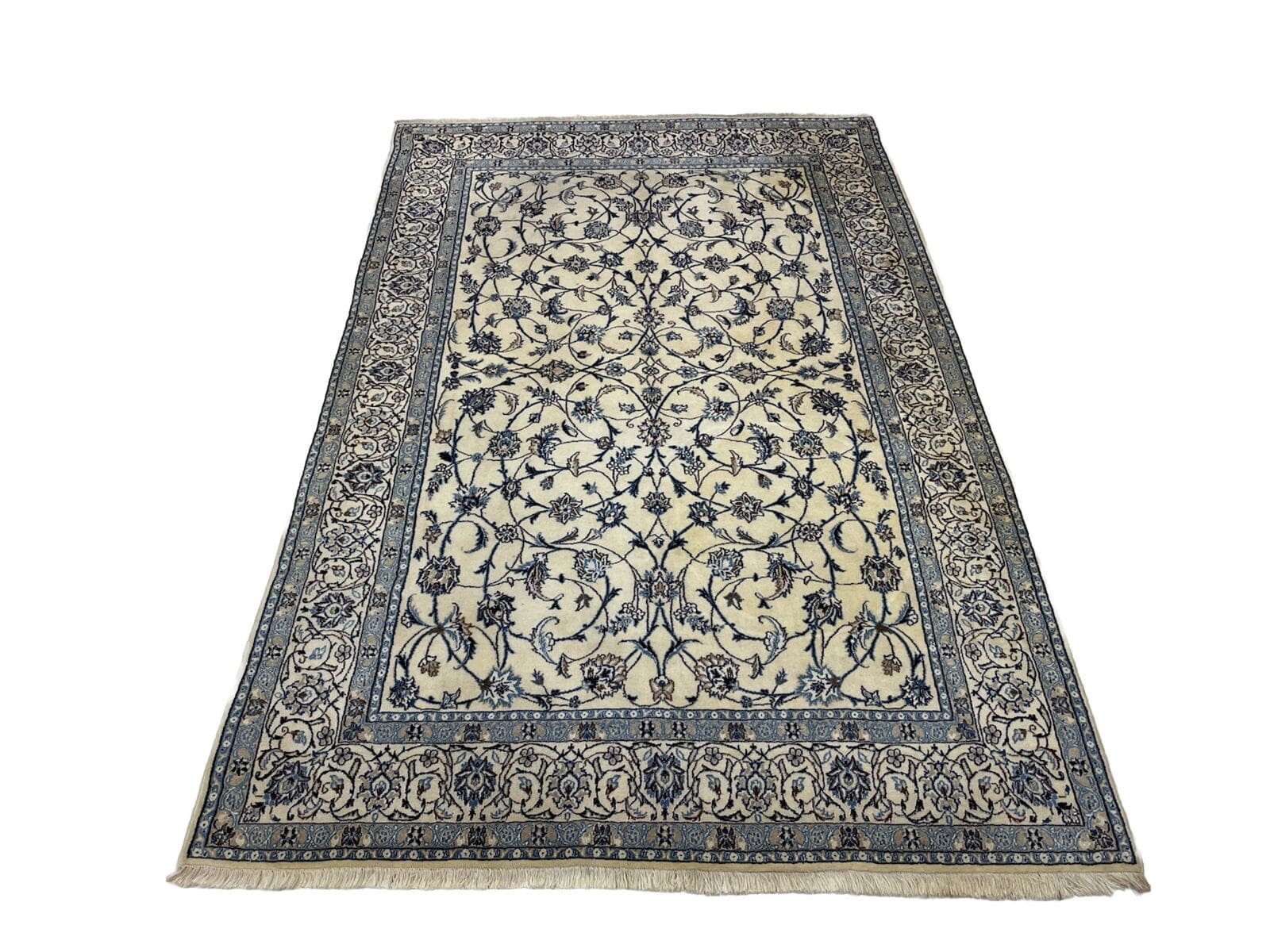 (Verkauft) Beige Handgeknüpfter Top Nain Perserteppich 250×160 cm – Florales Design mit Medallion und dekorierten Ecken, 1-3 cm Florhöhe, Top Qualität, handgeknüpft, Perserteppich