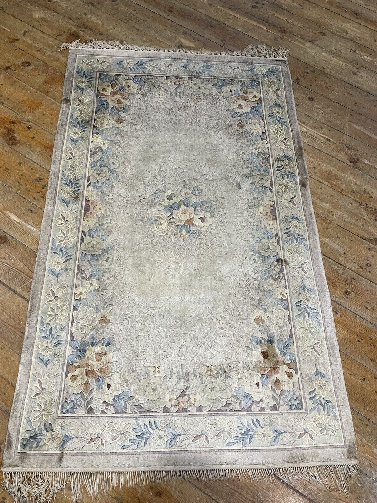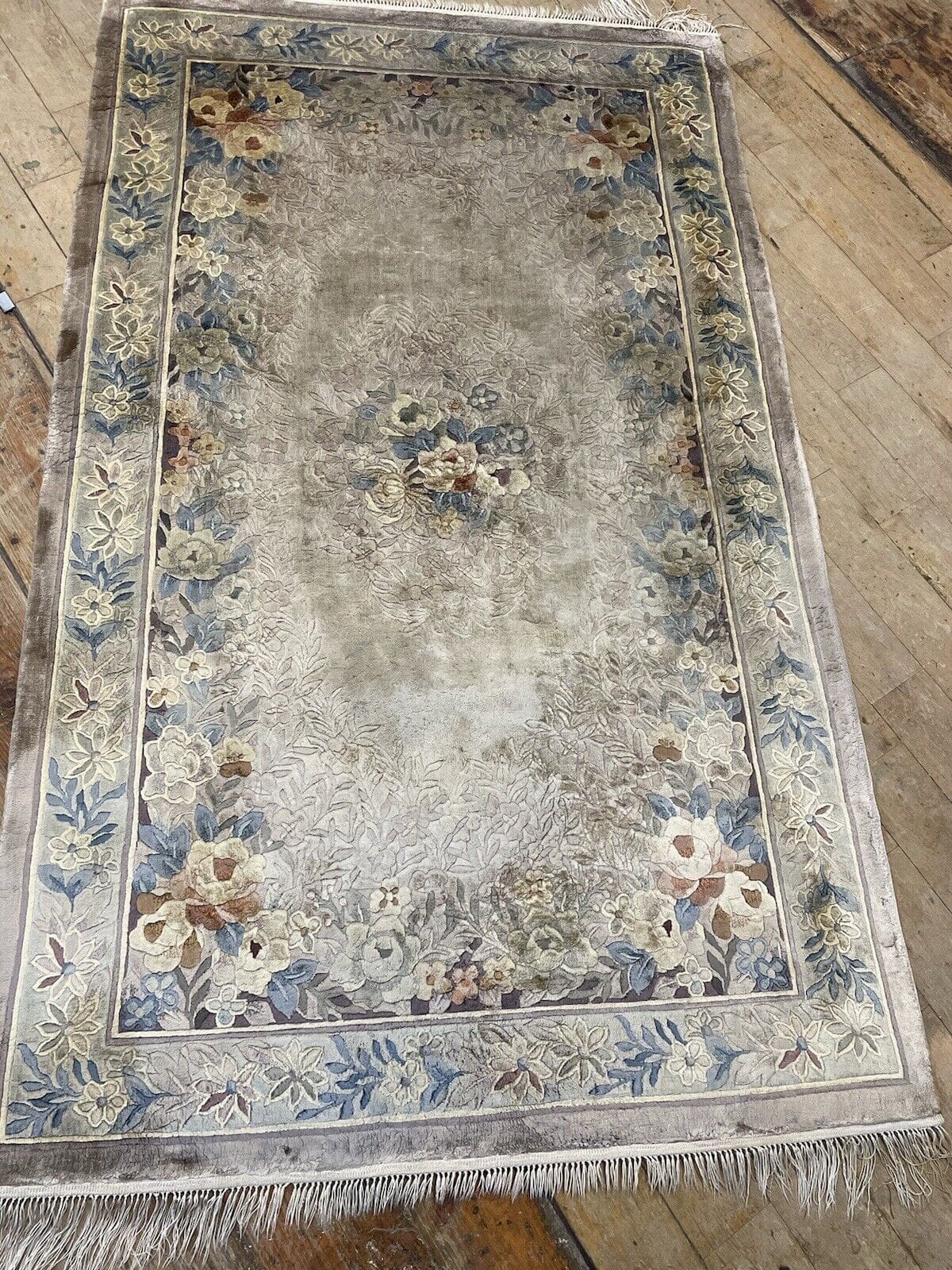 Reine Naturseide | Handgeknüpft | Größe: 150×90 cm | Knotendichte: ca. 380.000 Knoten/m² | Florhöhe: 0,5 cm | Stil: Klassisch, orientalisches Muster | Zustand: Gebraucht | Herkunft: China, Peking | Epoche: Spätes 20. Jahrhundert | Perfekt für verschiedene Räume