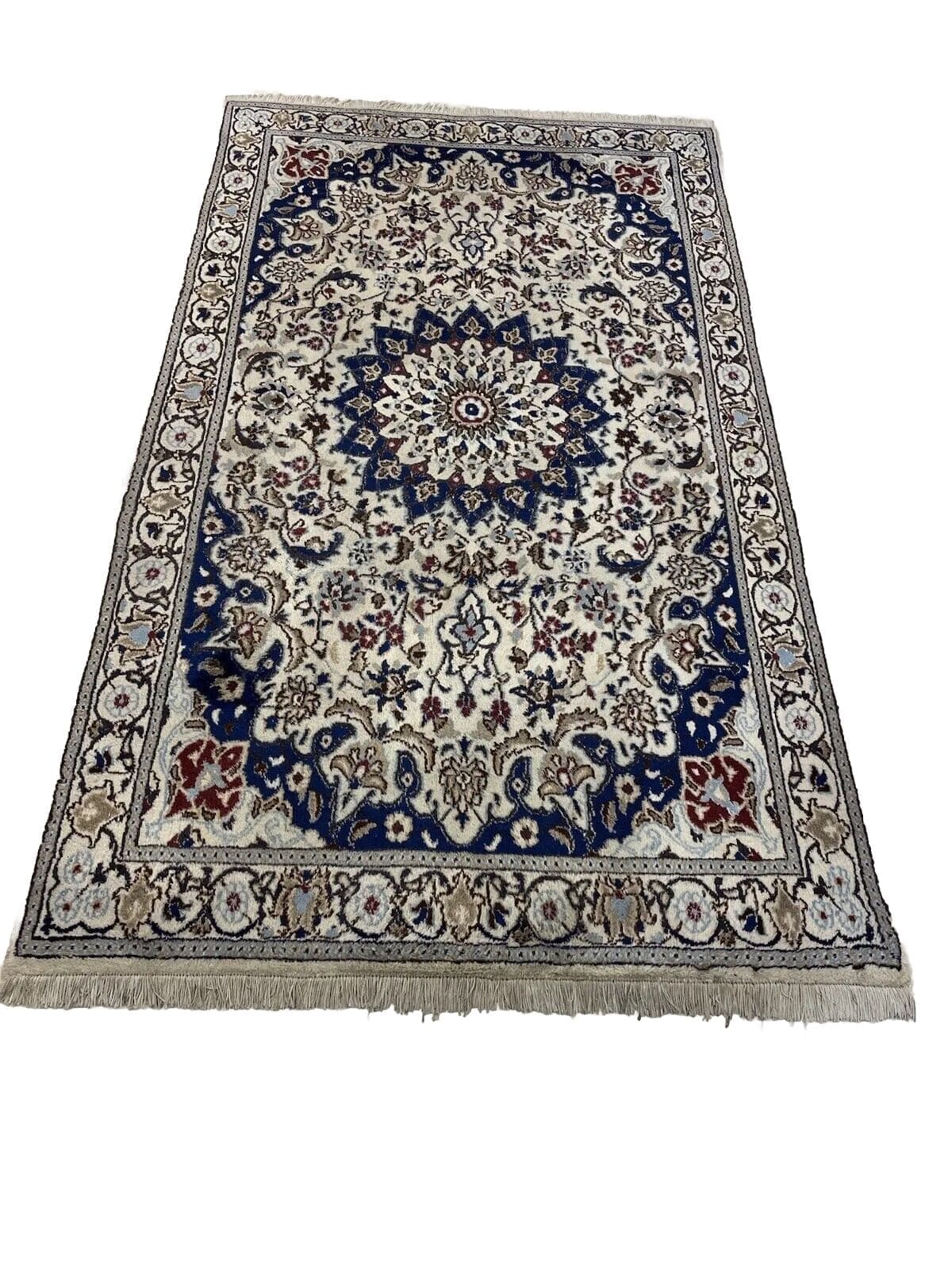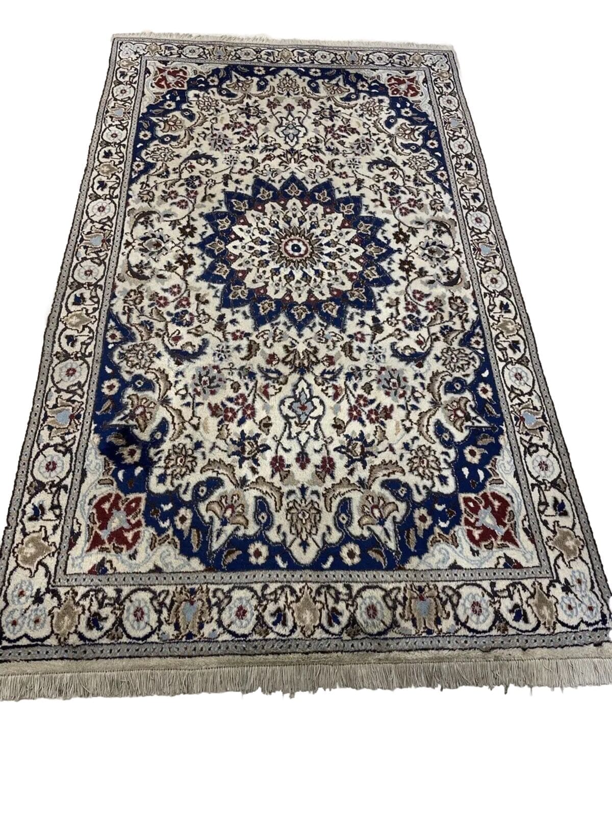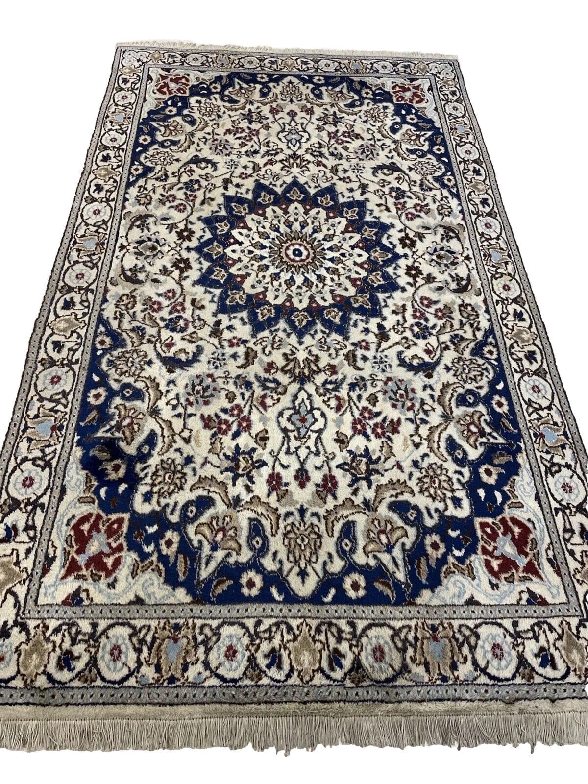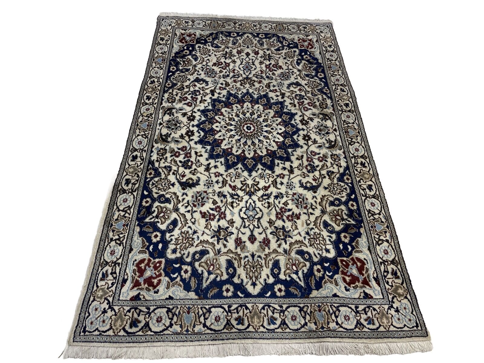 Handgeknüpfter Nain Perserteppich | Größe: 200×115 cm | Material: Hochwertige Wolle und Baumwolle | Muster: Florales Design mit Medallion | Florhöhe: 1-3 cm | Zustand: Neu mit Etikett | Stil: Traditionell Persisch | Für Fußbodenheizung geeignet | Herkunft: Persisch | Bordüre: Beige | Form: Rechteckig