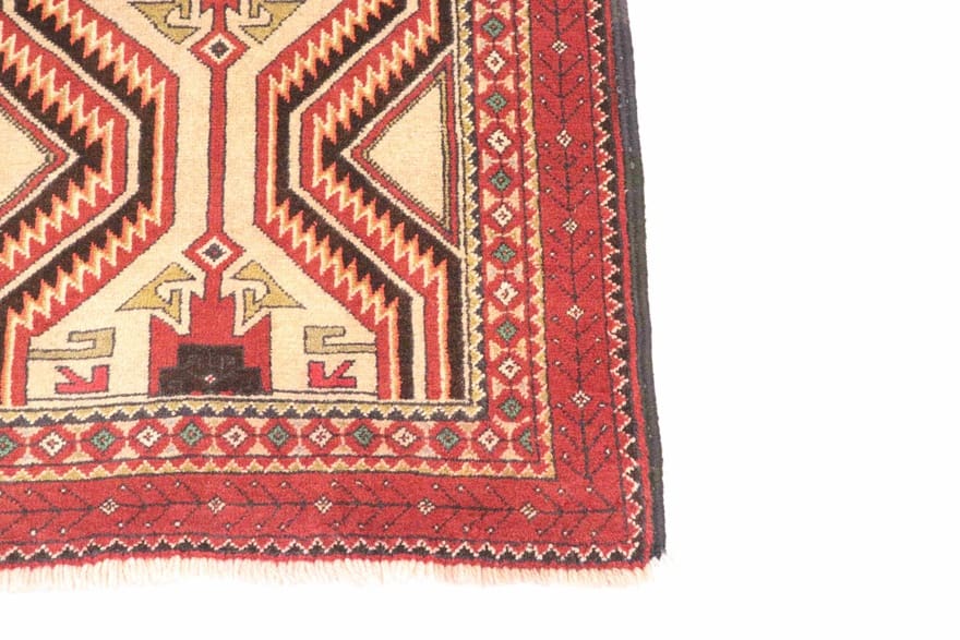 Die Belutsch sind ein bekanntes nomadisches Volk, das in den Grenzregionen von Iran, Afghanistan und Pakistan ansässig ist. Ihre Teppiche sind tief in ihrer Kultur verwurzelt und spiegeln die Traditionen, Geschichte und Lebensweise des Volkes wider. Die Knüpfmuster und Designs der Belutsch-Teppiche sind oft inspiriert von der Natur und dem alltäglichen Leben in der Wüste, in Kellern oder beim Nomadendasein. Geometrische Muster sind vorherrschend und schaffen eine faszinierende Anziehungskraft.