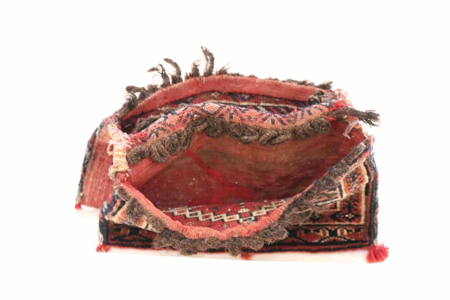 Antiker Belutsch-Teppich | Knotendichte: 90.000 Knoten/m² | Material: Handgesponnene Wolle | Größe: 42×36 cm | Farbe: Rot/Orange | Form: Rechteckig | Verarbeitung: Handgeknüpft | Ursprung: Iran/Persien | Alter: Antik | Dicke: ca. 8 mm | Gewicht: ca. 2 kg