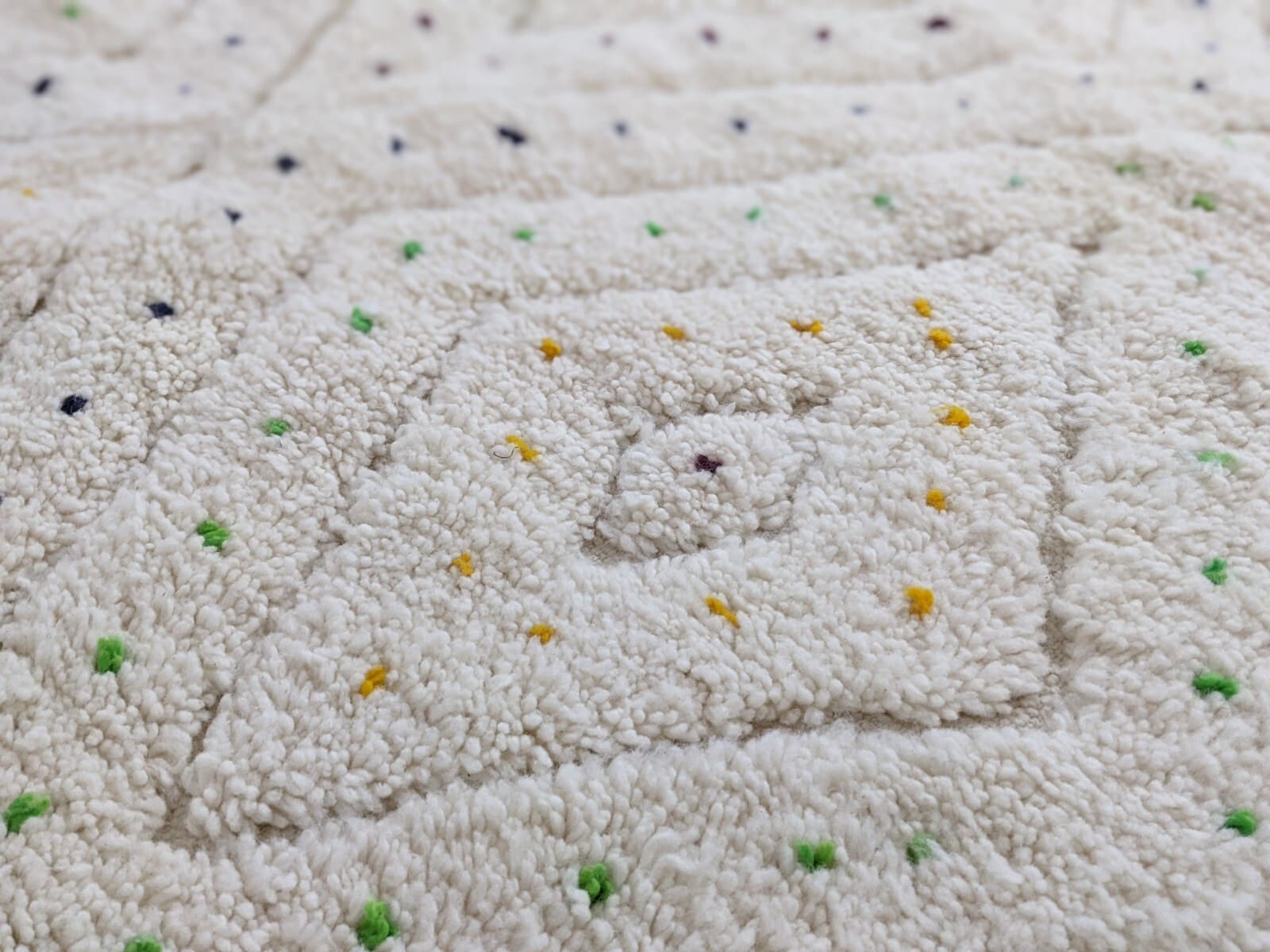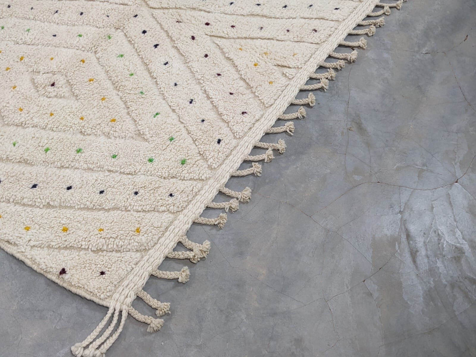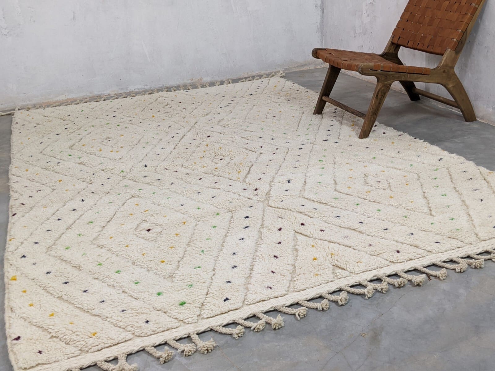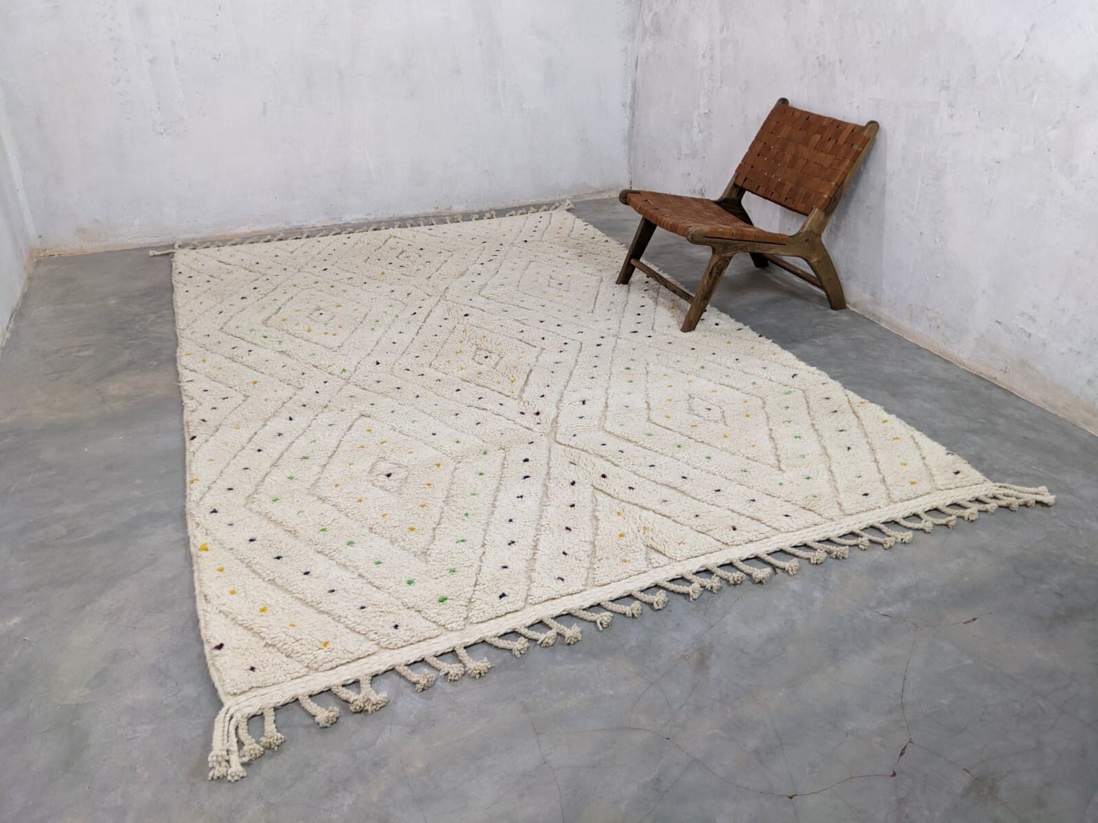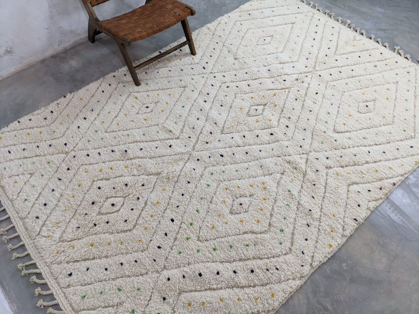Ein weiterer Pluspunkt dieses Berber Teppichs ist seine Vielseitigkeit. Er lässt sich mühelos mit verschiedenen Einrichtungsstilen kombinieren, sei es modern, boho, rustikal oder traditionell. Jedes Stück erzählt seine eigene Geschichte, die von den Traditionen der Berber und der marokkanischen Kultur zeugt. Zudem sind handgeknüpfte Teppiche in der Regel langlebiger und bieten eine bessere Qualität als industriell hergestellte Varianten. Ein handgeknüpfter Berber Teppich wird über Generationen hinweg geschätzt und ist eine tolle Investition in die eigene Wohnqualität.
