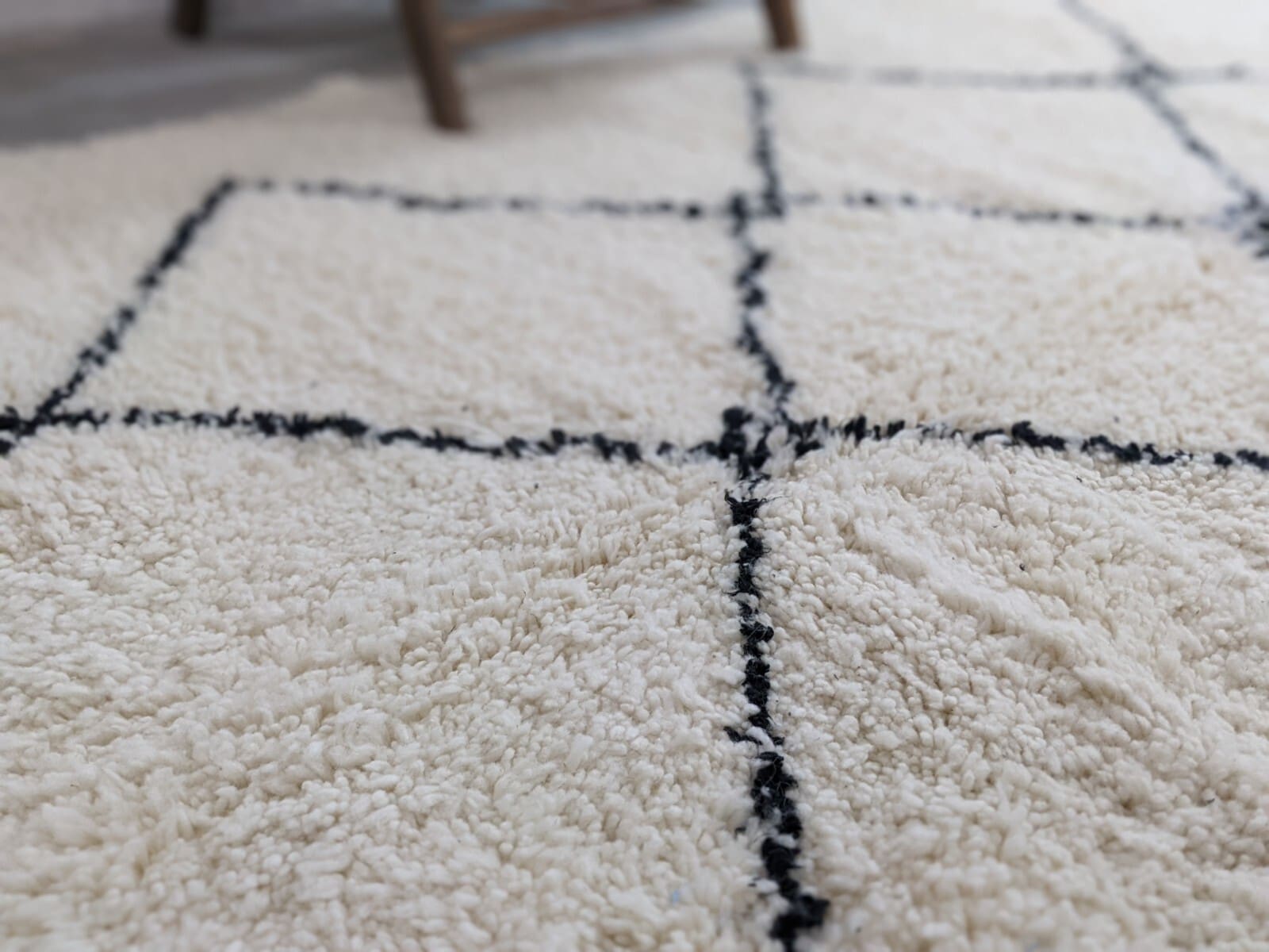 Die Verwendung von reiner Wolle macht diesen Berber Teppich besonders gemütlich und strapazierfähig. Wolle hat die natürlichen Eigenschaften, Wärme zu speichern und gleichzeitig für ein angenehmes Raumklima zu sorgen. Die handgeknüpfte Technik verleiht dem Teppich außerdem eine außergewöhnliche Langlebigkeit. Jeder Knoten, der in mühevoller Handarbeit gefertigt wurde, bringt das Talent und die Hingabe der Berber-Künstler zum Ausdruck und macht jedes Stück zu einem Unikat.