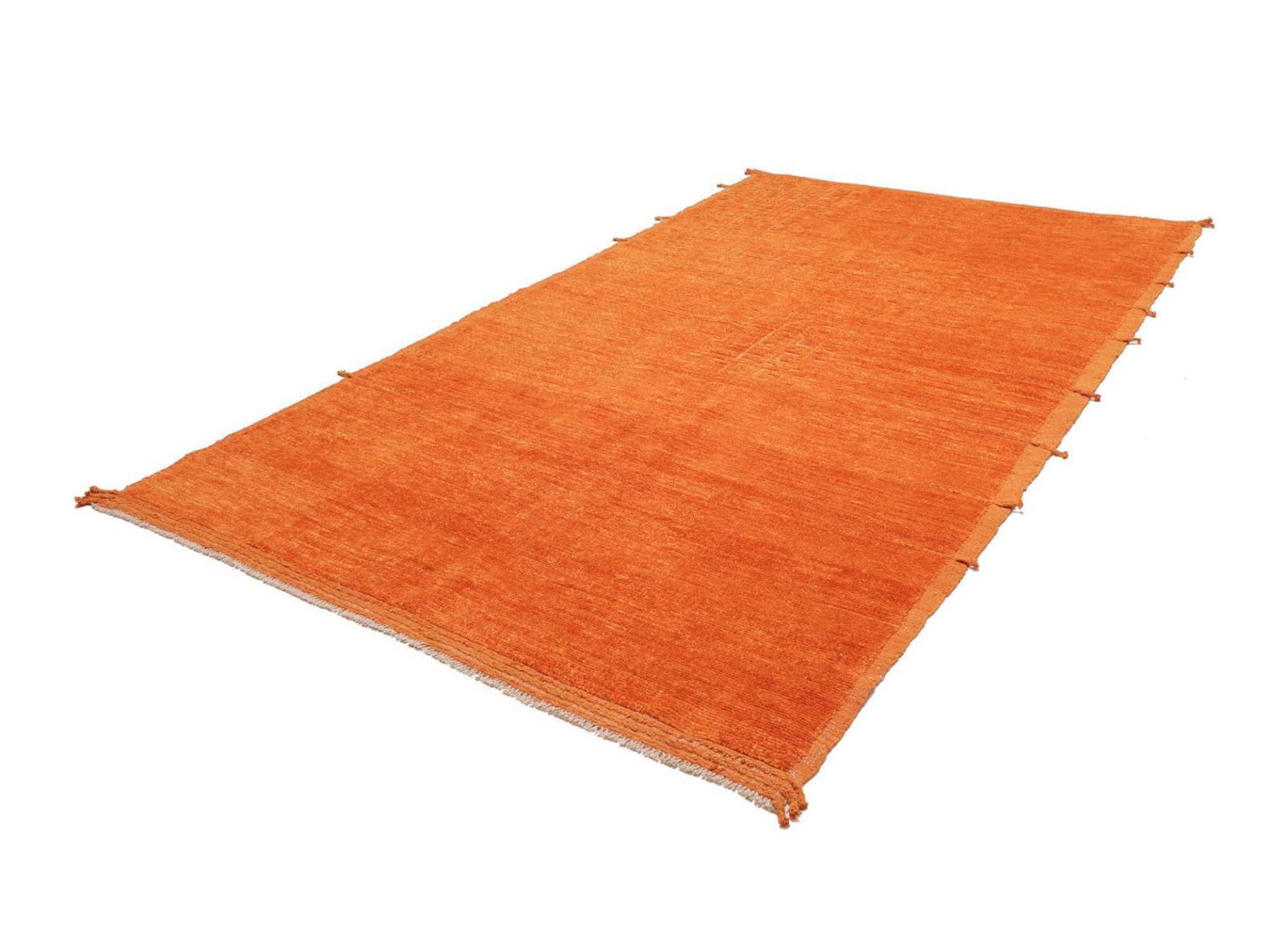 Der Berber Teppich ist handgeknüpft und verfügt über einen Flor aus 100% Schurwolle, während die Kette aus 100% Baumwolle besteht. Die Verwendung von natürlicher Wolle sorgt für eine angenehme Haptik und eine hohe Strapazierfähigkeit. Die Knüpfqualität ist durch eine hohe Knotendichte von ca. 100.000 Knoten pro Quadratmeter gekennzeichnet, was zur Langlebigkeit des Teppichs beiträgt. Die Höhe des Flors liegt zwischen 12 und 15 mm, wodurch der Teppich weich und komfortabel ist.