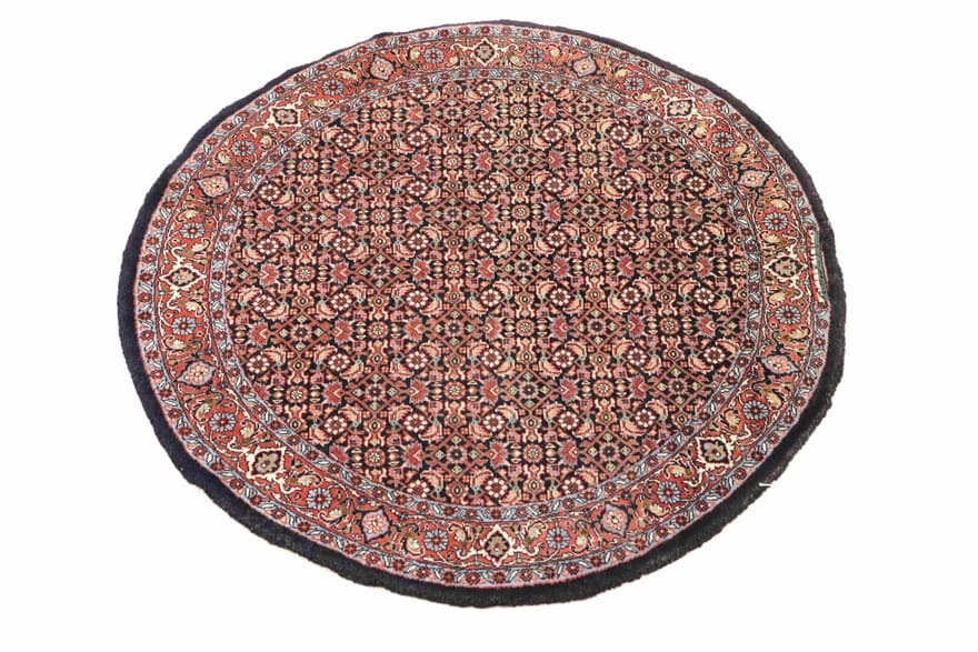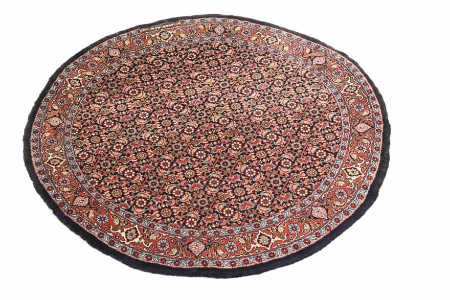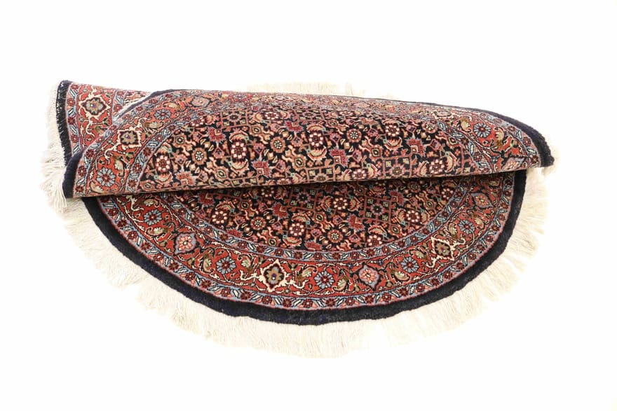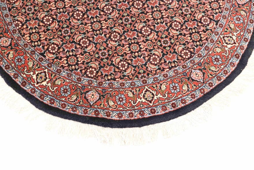 Bidjar Teppich | Knotendichte: 440.000 – 490.000 Knoten/m² | Material: Wolle (Flor), Baumwolle (Kette) | Größe: 102×101 cm | Farbe: Blau/Türkis | Form: Rund | Zustand: Neu | Ursprung: Iran/Persien | Verarbeitung: Handgeknüpft | Dicke: ca. 10 mm | Gewicht: ca. 4 kg