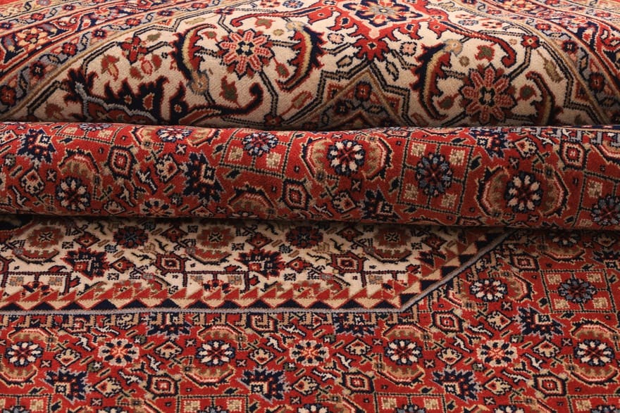 Robuster Bidjar Teppich | Knotendichte: 320.000 – 360.000 Knoten/m² | Material: Hochwertige Wolle und Baumwolle | Größe: 248×253 cm | In neuem Zustand | Farbe: Rot/Orange | Ursprung: Indien | Handgeknüpft | Dicke: ca. 10 mm | Gewicht: ca. 20 kg