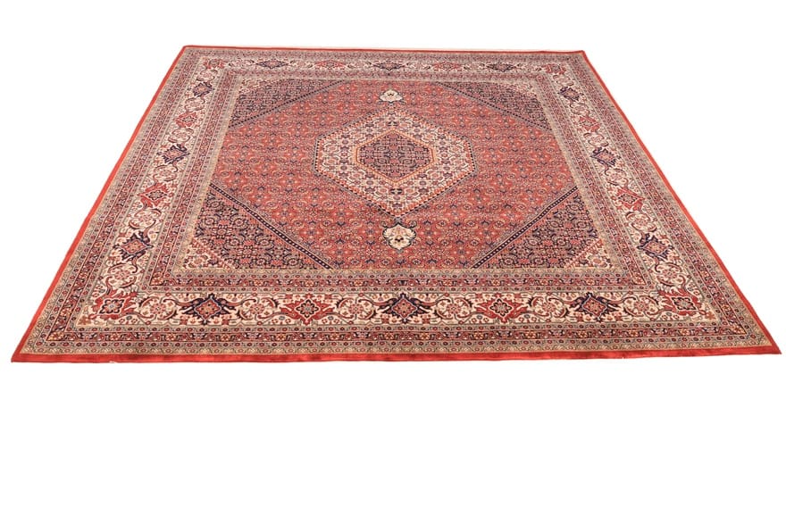 BIDJAR Teppich | Knotendichte: 320.000 – 360.000 Knoten/m² | Material: Hochwertige Wolle und Baumwolle | Größe: 250×251 cm | Farbe: Rot/Orange | Ursprung: Indien | Zustand: Neu | Verarbeitung: Handgeknüpft | Dicke: ca. 10 mm | Gewicht: ca. 22 kg | Ideal für stark frequentierte Bereiche