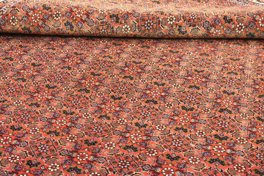 Bidjar Teppich | Knotendichte: 320.000 – 360.000 Knoten/m² | Material: Handgesponnene Wolle und Baumwolle | Größe: 302×201 cm | Farbe: Rot/Orange | Zustand: Neu | Ursprung: Iran/Persien | Verarbeitung: Handgeknüpft | Dicke: ca. 10 mm | Gewicht: ca. 20 kg