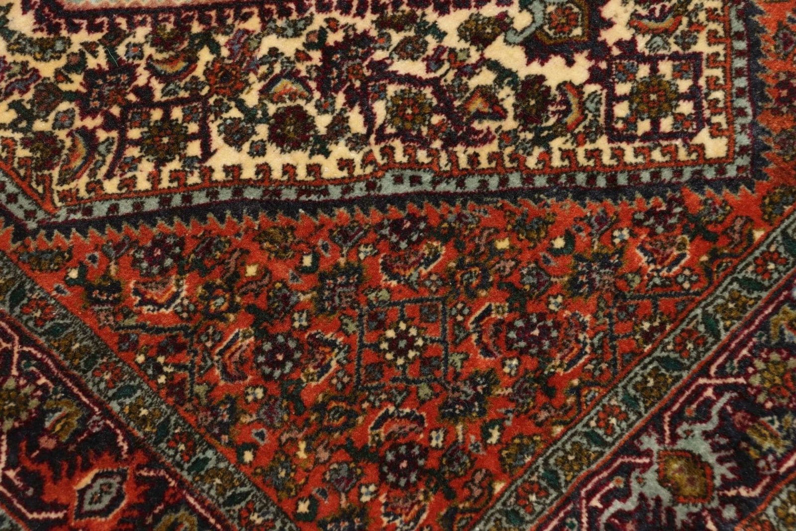 Die Teppichknüpftradition in dieser Region reicht bis ins 16. Jahrhundert zurück und ist stark beeinflusst von den unterschiedlichen Kulturen und Traditionen der kurdischen und persischen Völker. Bidjar Teppiche zeichnen sich oft durch eine robuste Qualität und eine breite Palette von auffälligen Farben und Mustern aus, die von floralen Motiven bis zu geometrischen Formen reichen.