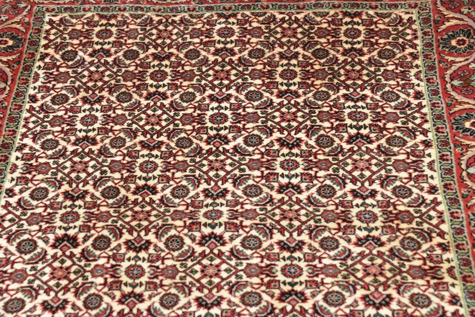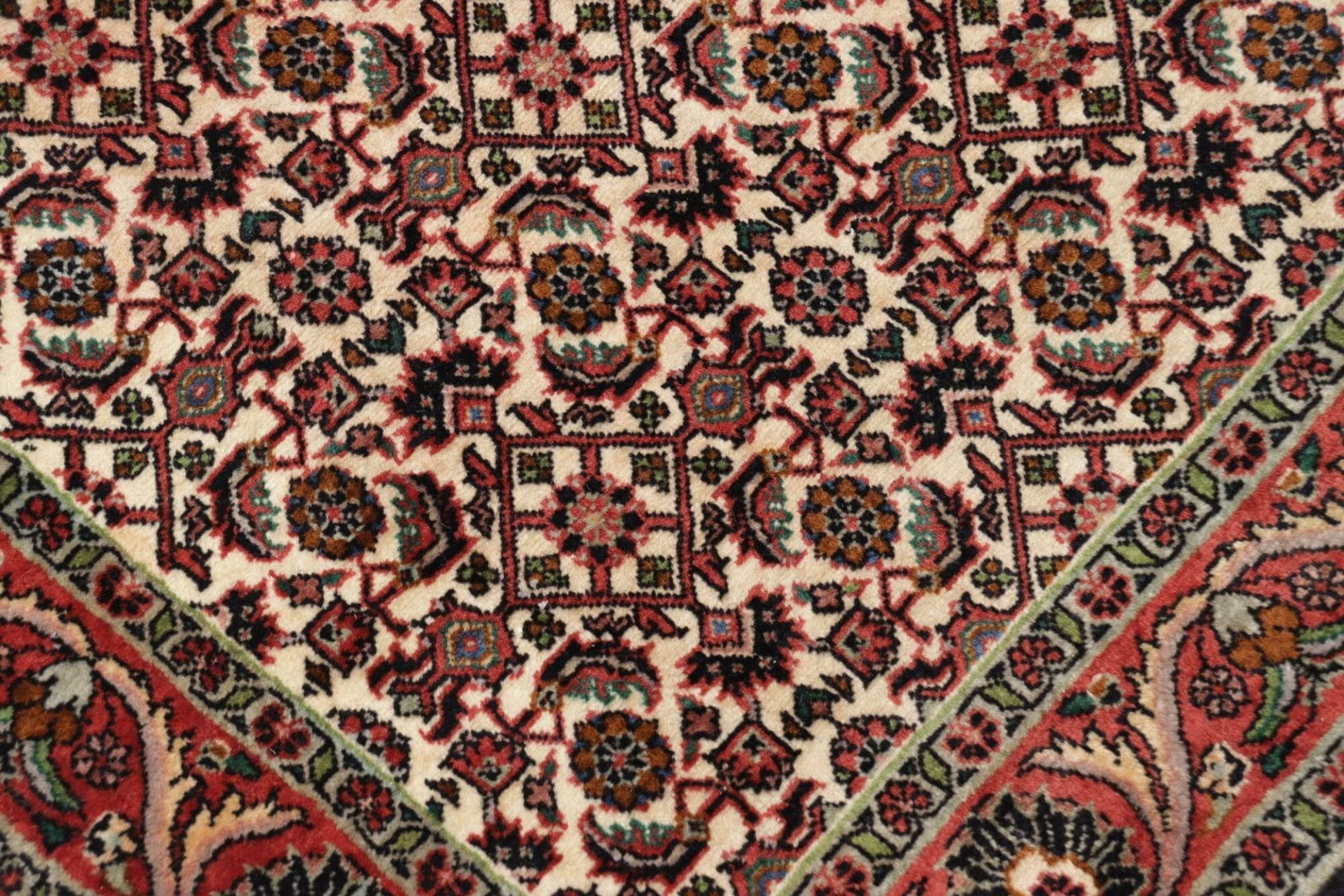 Der Bidjar Teppich stammt aus dem Iran, einer Region, die für ihre reiche Teppichtradition bekannt ist. Insbesondere die Stadt Bidjar hat sich als Zentrum erstklassiger handgefertigter Teppiche etabliert. Hier werden seit Jahrhunderten Teppiche hergestellt, die für ihre Robustheit und ihre ausgefeilten Designs geschätzt werden. Bidjar Teppiche sind oft mit geometrischen Mustern und lebendigen Farben ausgestattet, die das kulturelle Erbe der Region widerspiegeln.