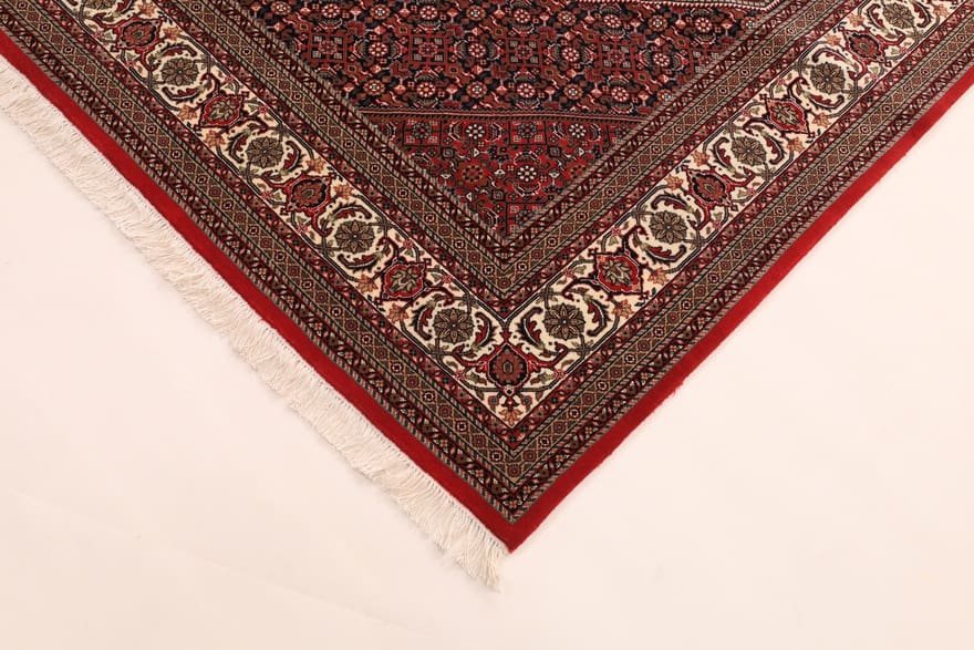Handgeknüpfter Bidjar Teppich | Knotendichte: 200.000 – 250.000 Knoten/m² | Material: Wolle/Seide auf Baumwollkette | Größe: 298×204 cm | Farbe: Rot/Orange | Zustand: Neu | Ursprung: Indien | Dicke: ca. 10 mm | Gewicht: ca. 20 kg | Ideal für stark frequentierte Bereiche