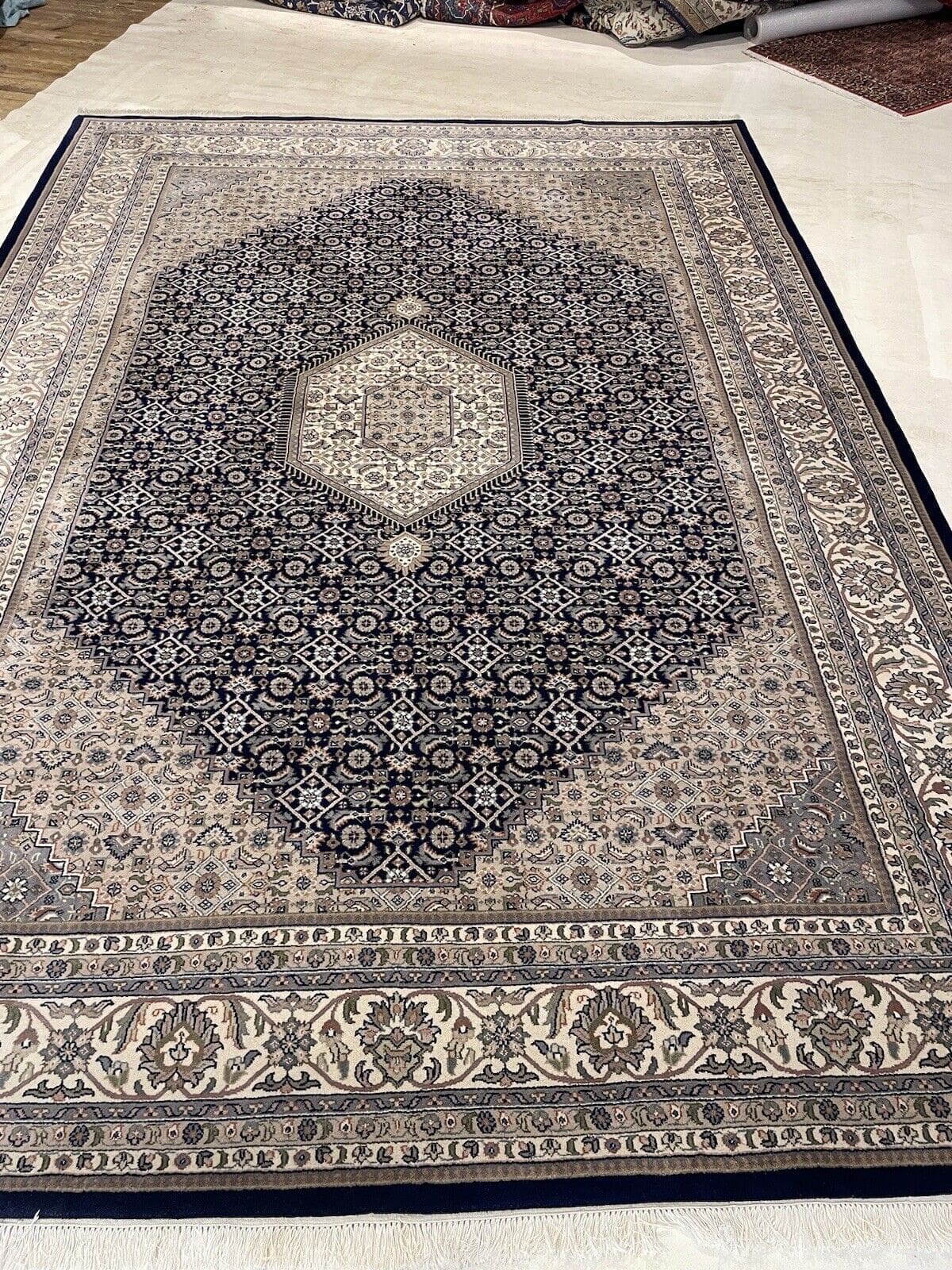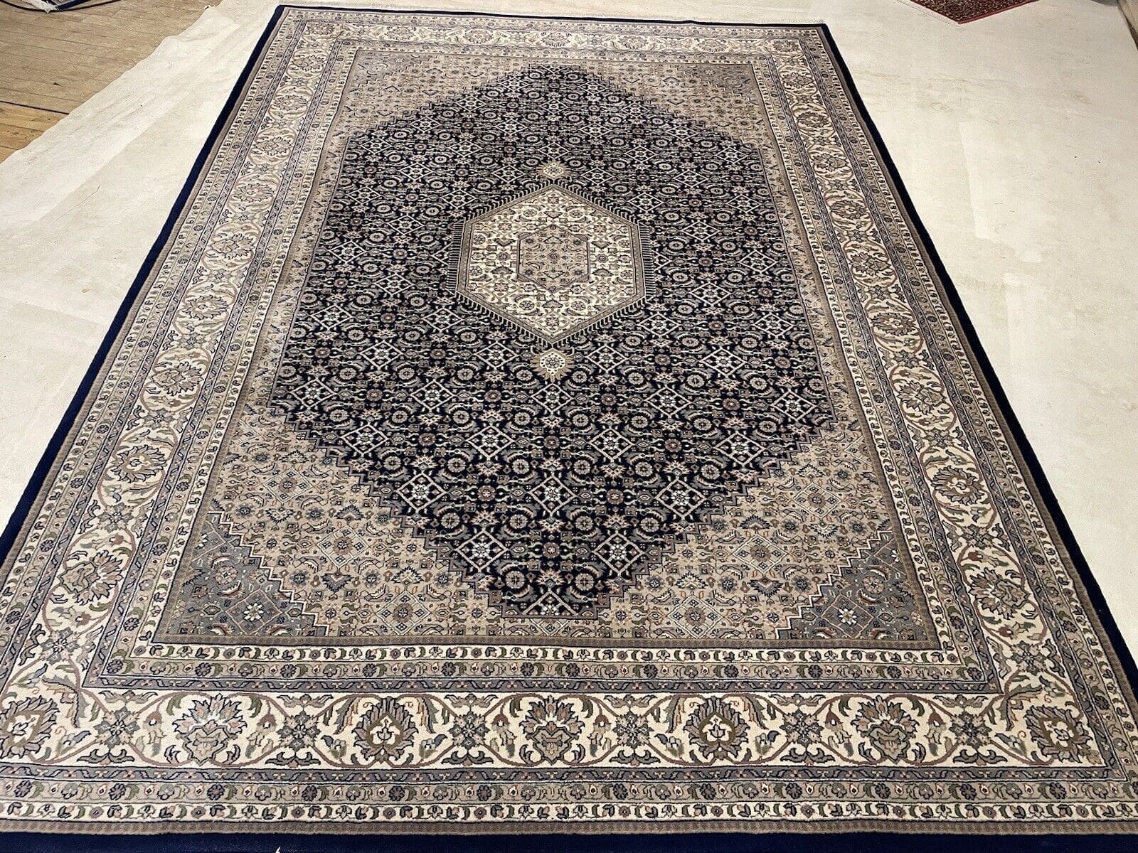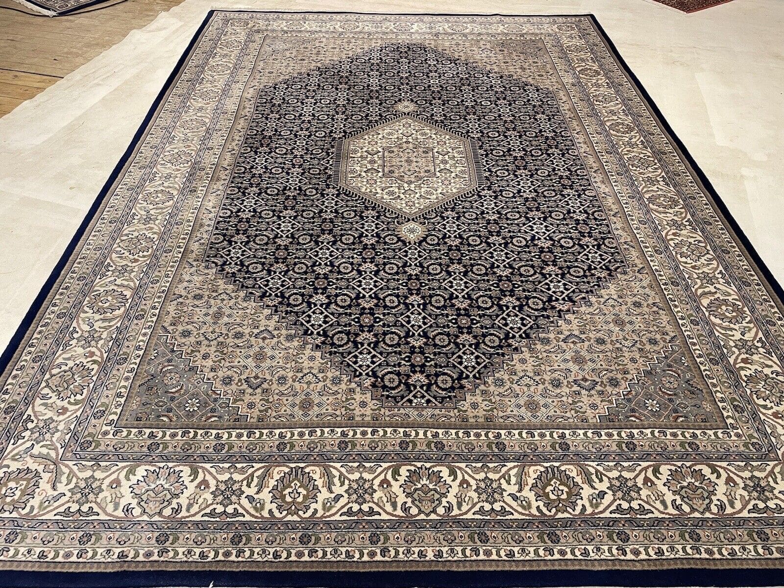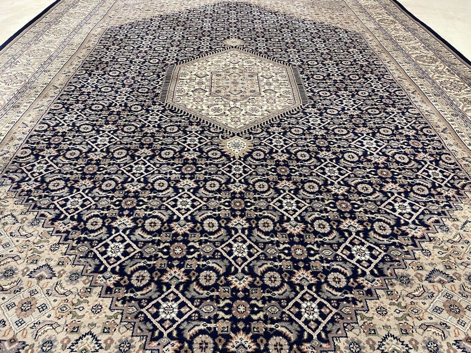 Handgeknüpfter Bijar Teppich | Knotendichte: 400.000 Knoten/m² | Material: Reine Schurwolle | Größe: 350 x 250 cm | Muster: Herati | Farbe: Blau | Zustand: Neu mit Etikett | Besonderheiten: Für Fußbodenheizung geeignet | Stil: Traditionell Persisch/Orientalisch | Florhöhe: 12 mm | Regionales Design: Kaschmir
