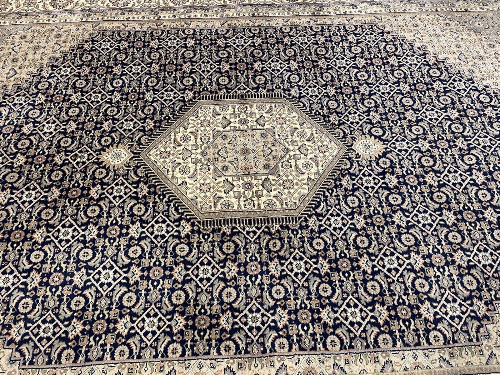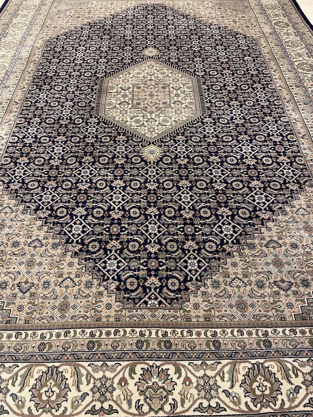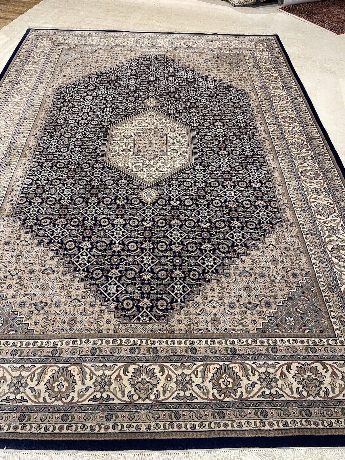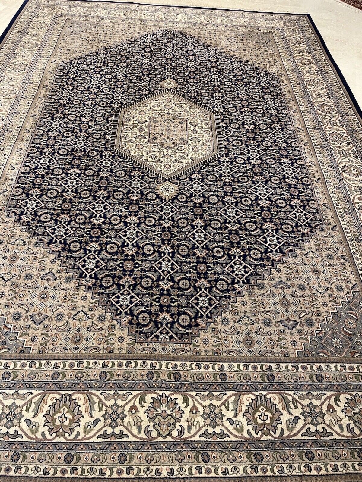 Handgeknüpfter Bijar Teppich | Knotendichte: 400.000 Knoten/m² | Material: Reine Schurwolle | Größe: 350 x 250 cm | Muster: Herati | Farbe: Blau | Zustand: Neu mit Etikett | Besonderheiten: Für Fußbodenheizung geeignet | Stil: Traditionell Persisch/Orientalisch | Florhöhe: 12 mm | Regionales Design: Kaschmir