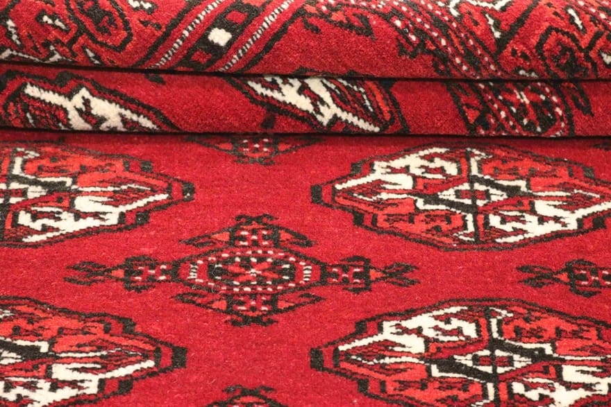 Der Buchara Teppich wird aus 100% hochwertiger Wolle gefertigt. Wolle ist ein Material, das für seine Robustheit bekannt ist, gleichzeitig aber auch weich und angenehm anfühlt. Die Handknüpftechnik verleiht jedem Teppich eine einzigartige Note, da er nicht im Massenschnitt gefertigt wird. Die Knotendichte ist dabei entscheidend – je höher sie ist, desto filigraner ist das Design. Diese traditionellen Herstellungsmethoden garantieren, dass jeder Teppich ein Unikat ist, das die Zeit überdauert.