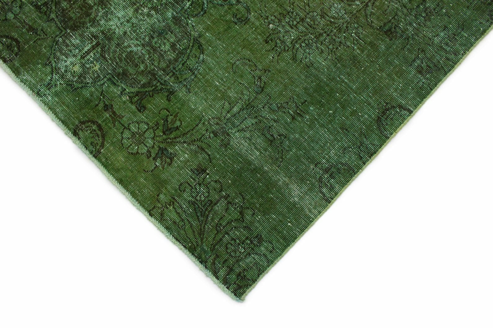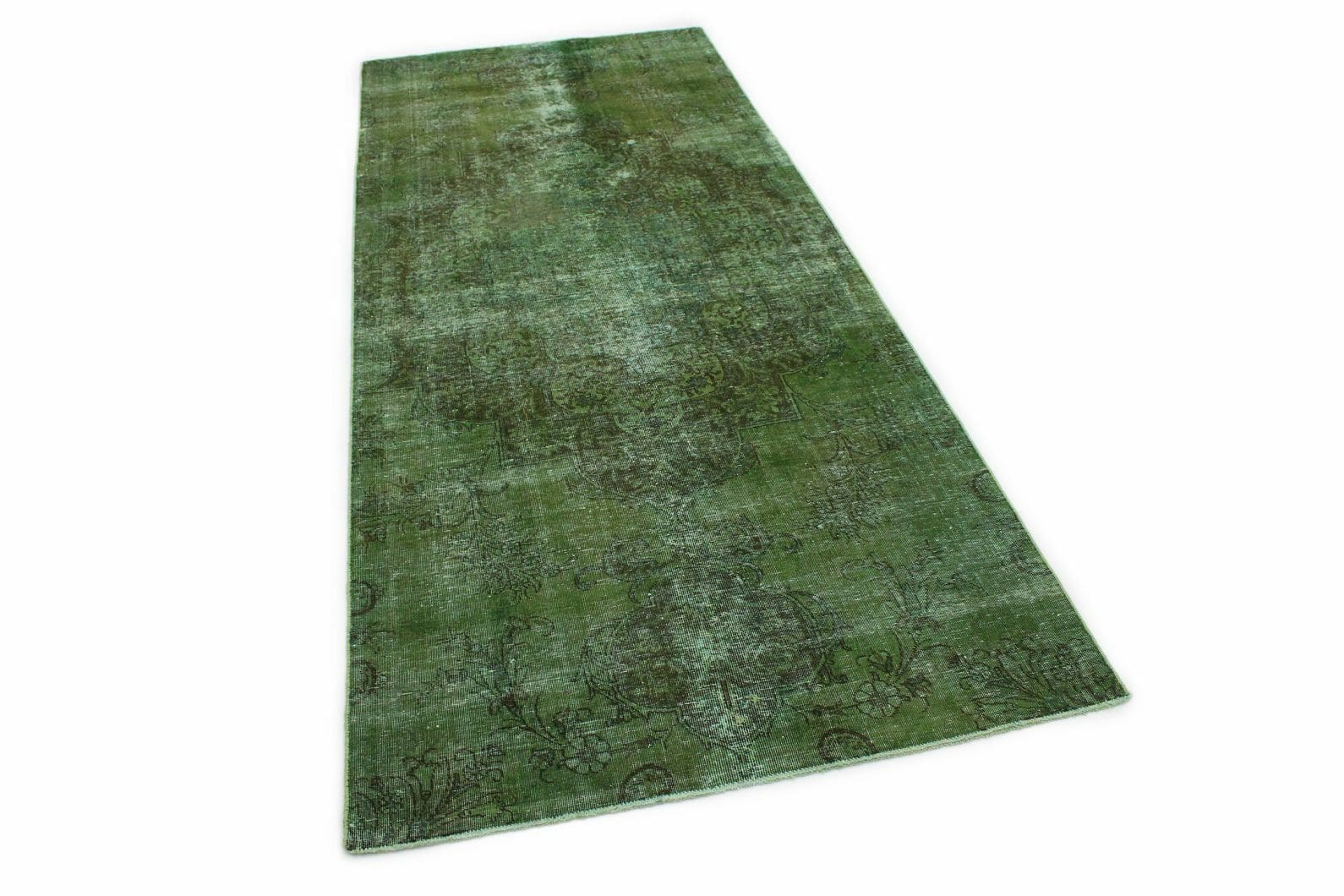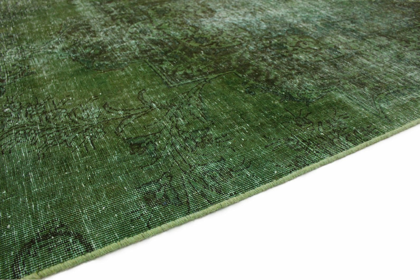 Vintage Orientteppich Läufer Grün 342x137cm handgeknüpft