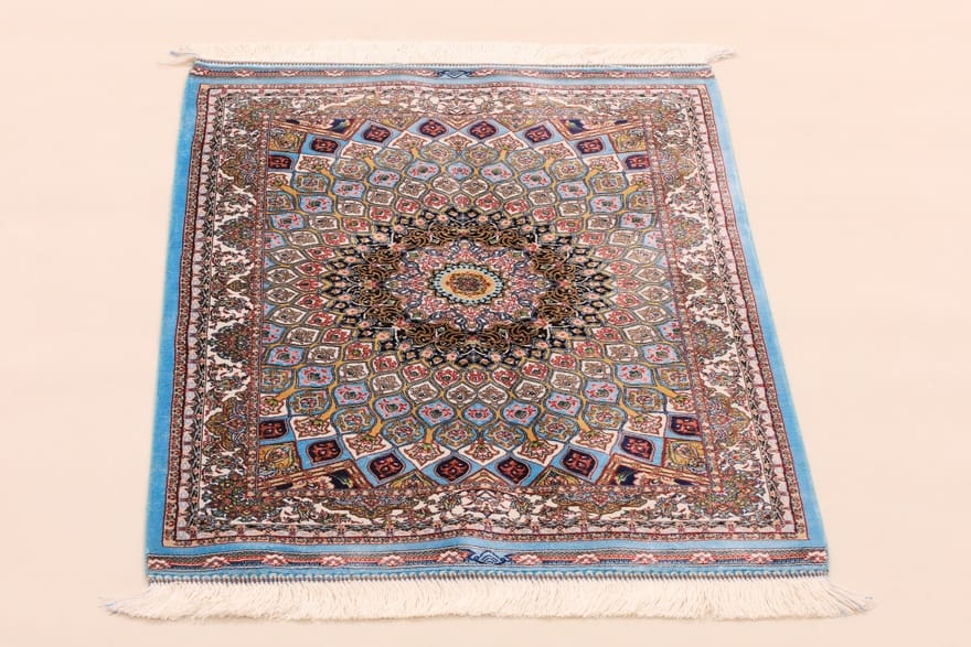 Edler Ghom Design Teppich 92×61 cm blau/türkis – Perserteppich handgeknüpft