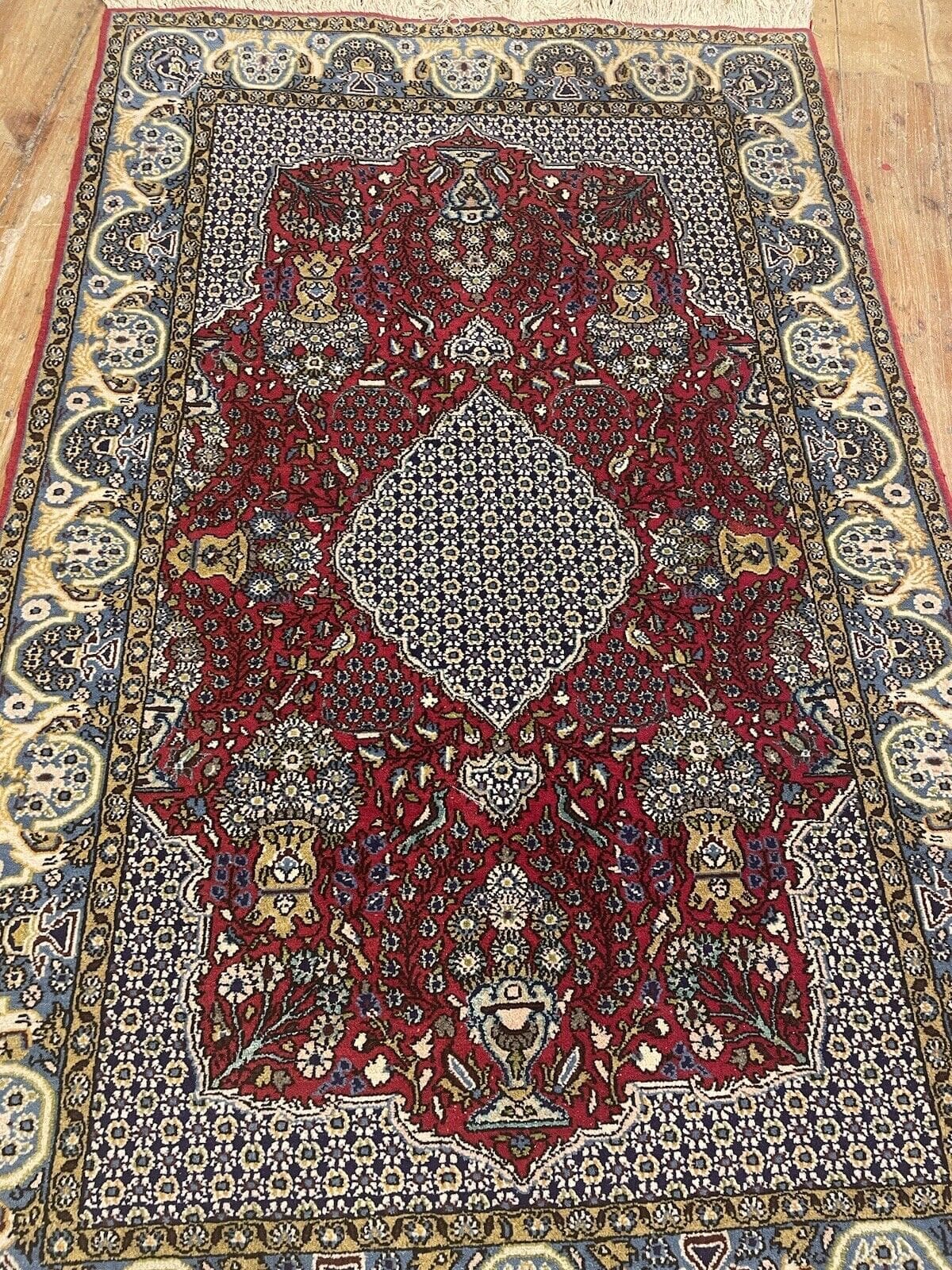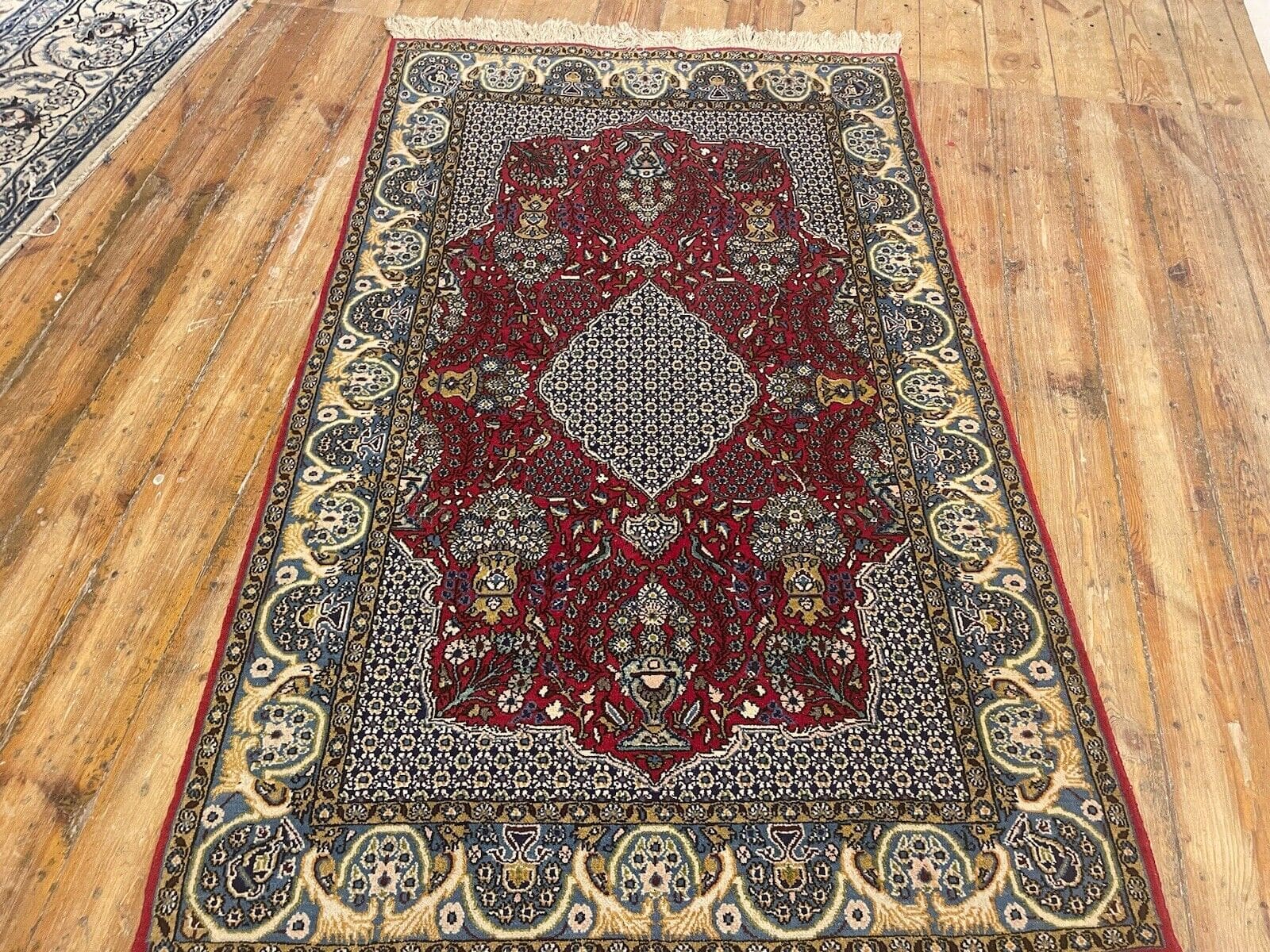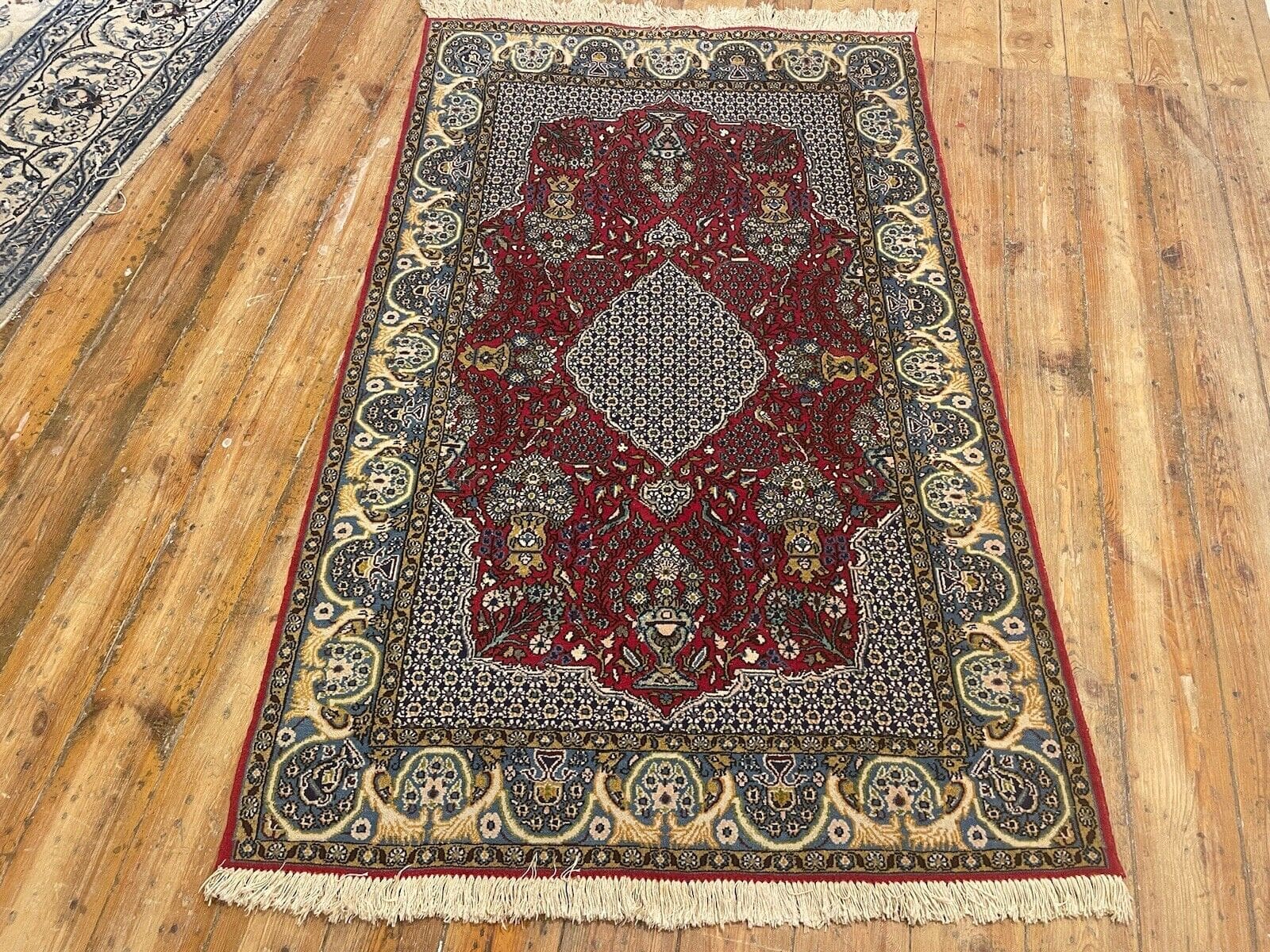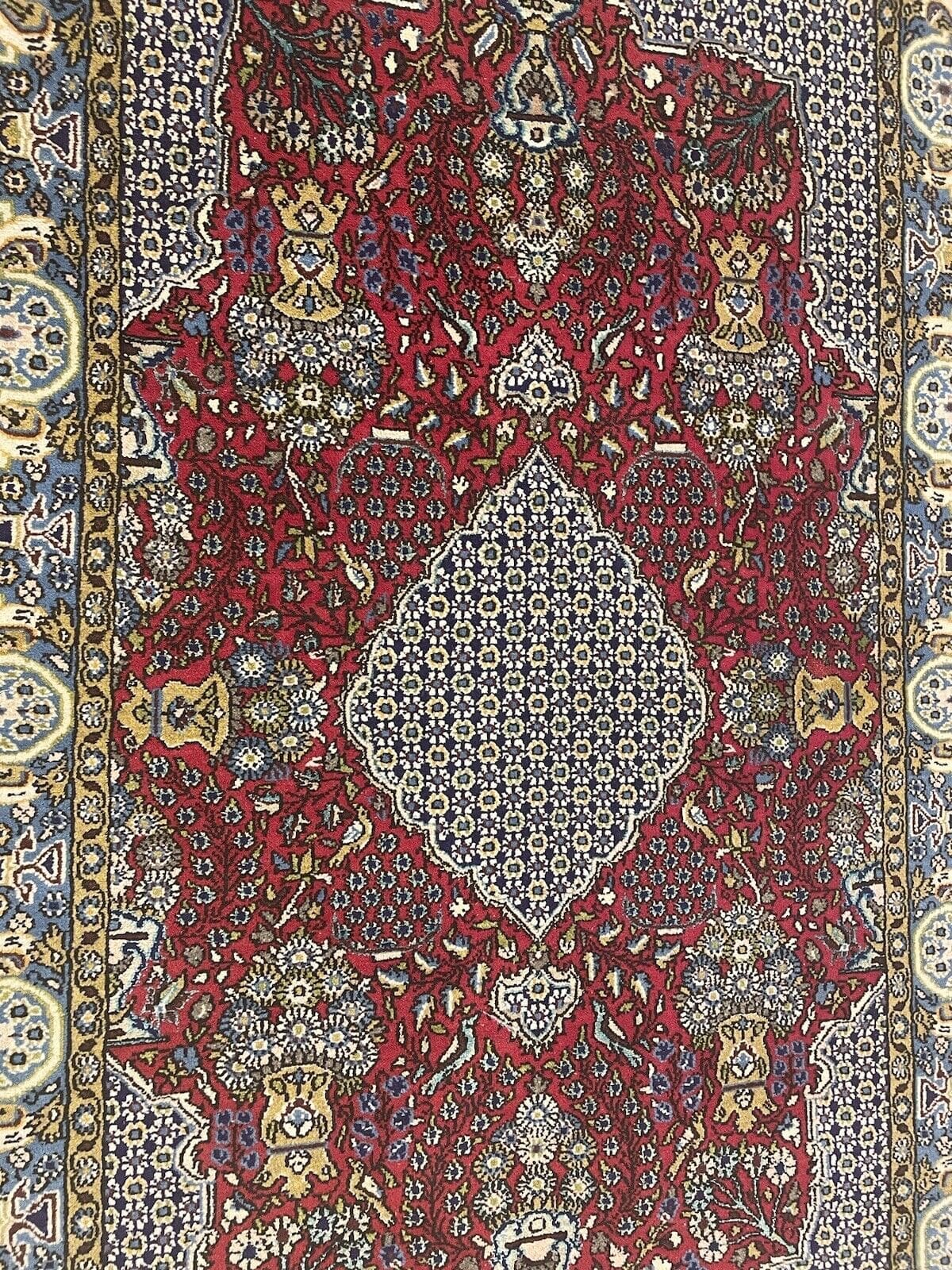 Perserteppich Ghom | Handgeknüpft | Größe: 160×100 cm | Knotendichte: ca. 3.500.000 Knoten/m² | Material: 100% Kaschmir | Zustand: Gebraucht, guter Zustand | Muster: Medaillon | Stil: Traditionell Orientalisch/Persisch | Florhöhe: Normal Flor | Herkunft: Ghom, Iran