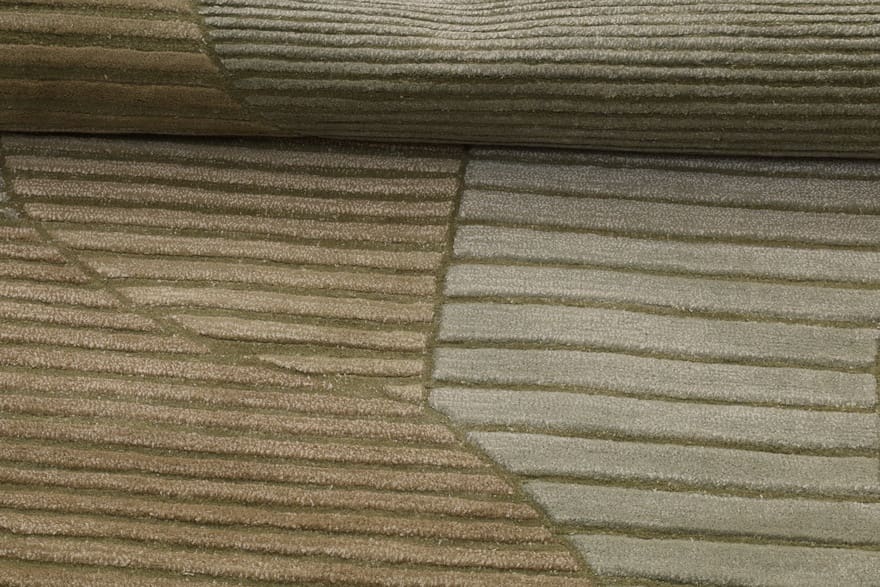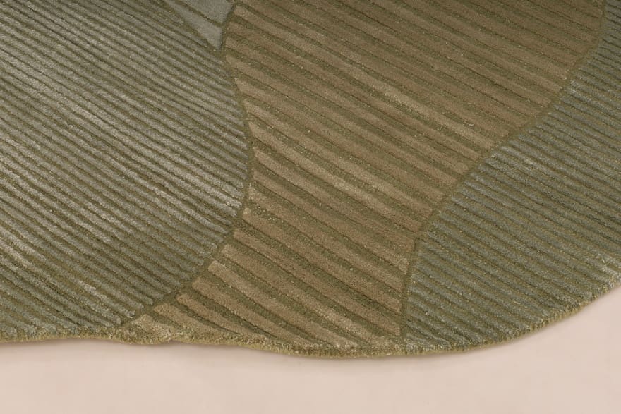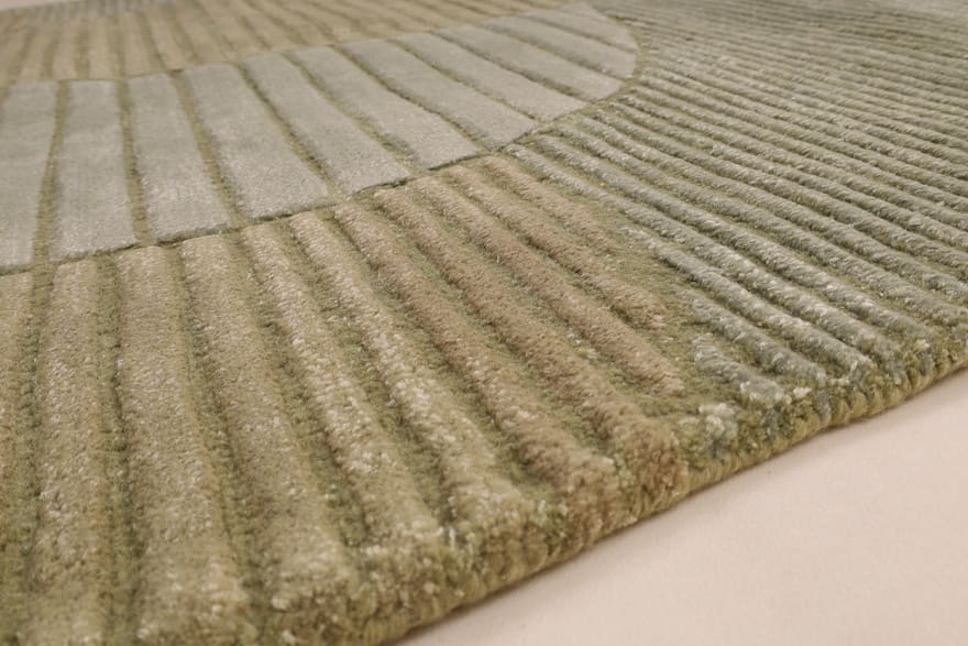 Edler handgetufteter Teppich | Knotendichte: 200.000 – 250.000 Knoten/m² | Material: Wolle mit Bamboo-Seide | Größe: 232×161 cm | Farbe: Grün/Oliv | Zustand: Neu | Ursprung: Indien | Dicke: ca. 14 mm | Gewicht: ca. 12 kg | Vielseitig einsetzbar für verschiedene Einrichtungsstile
