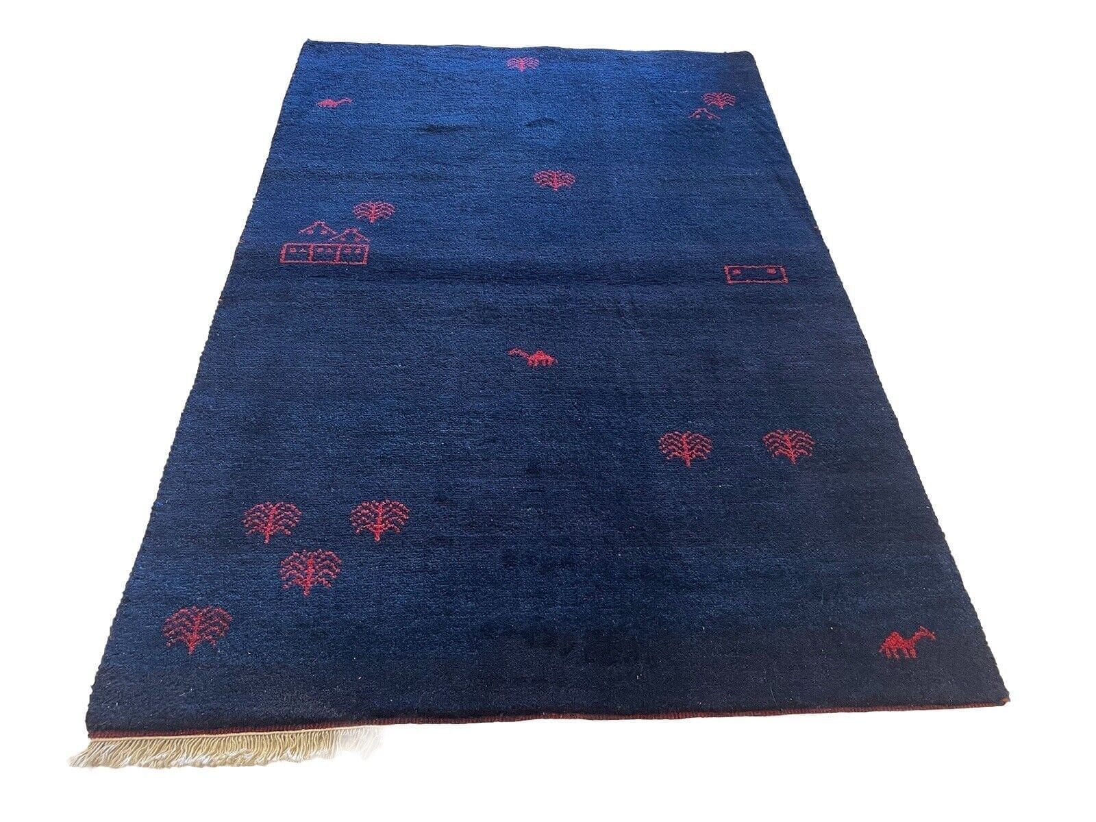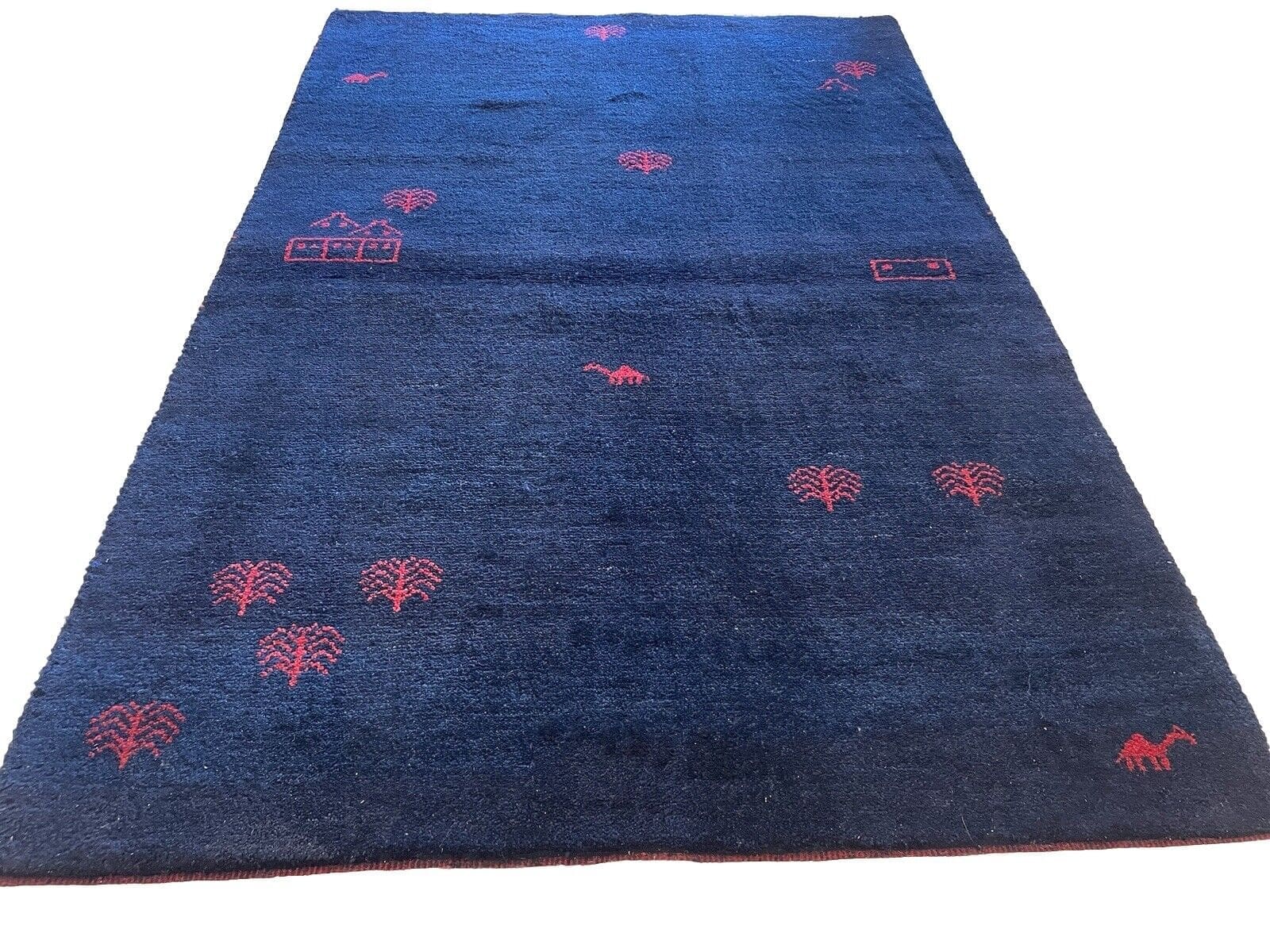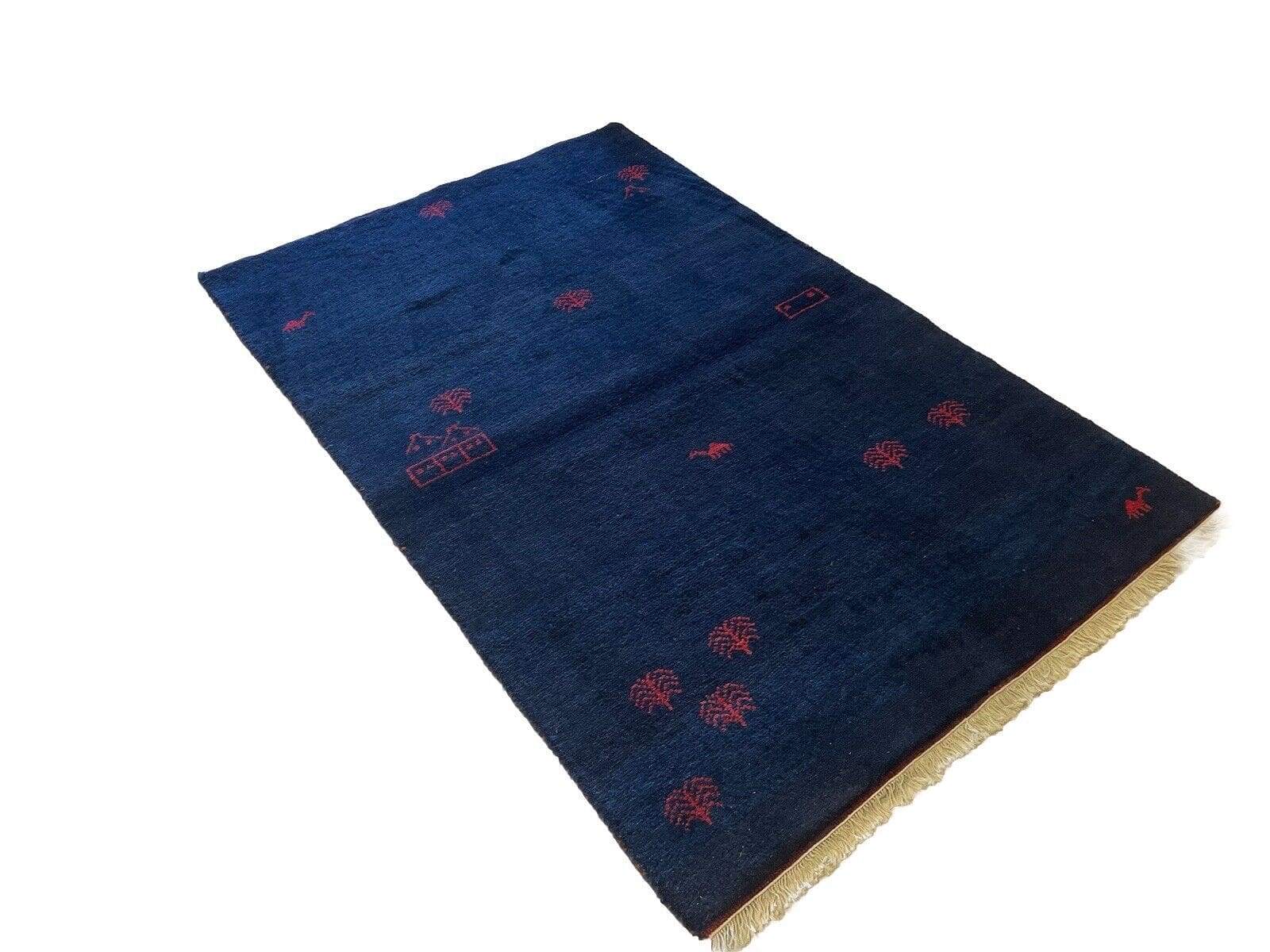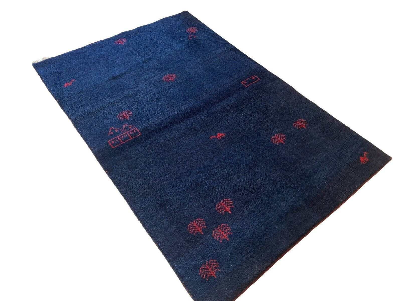 Eleganter Gabbeh Teppich 180×120 cm – 100% handgesponnene Wolle, feine Teppich Kunst in Marin Blau, handgeknüpft, Perserteppich