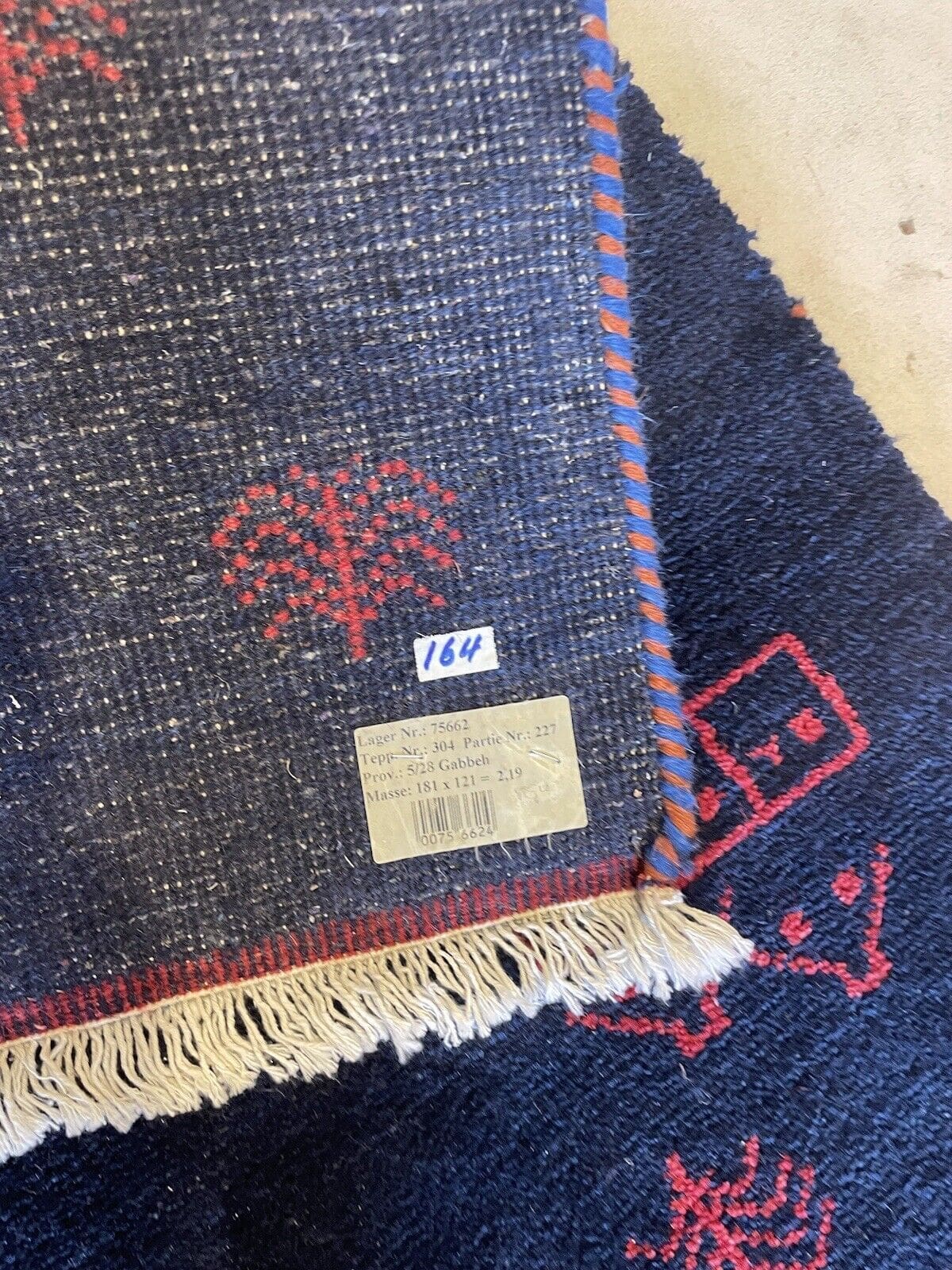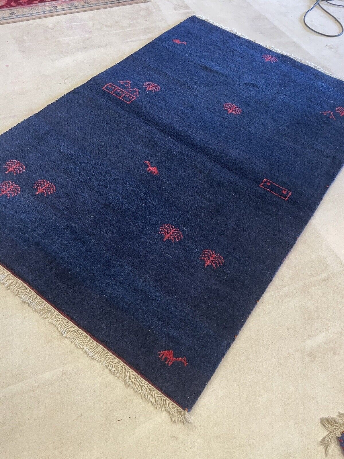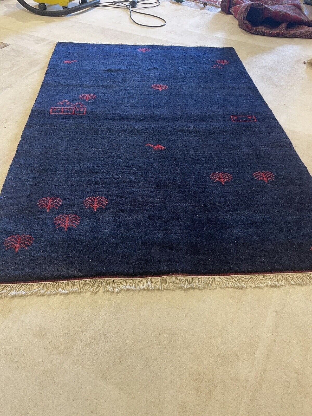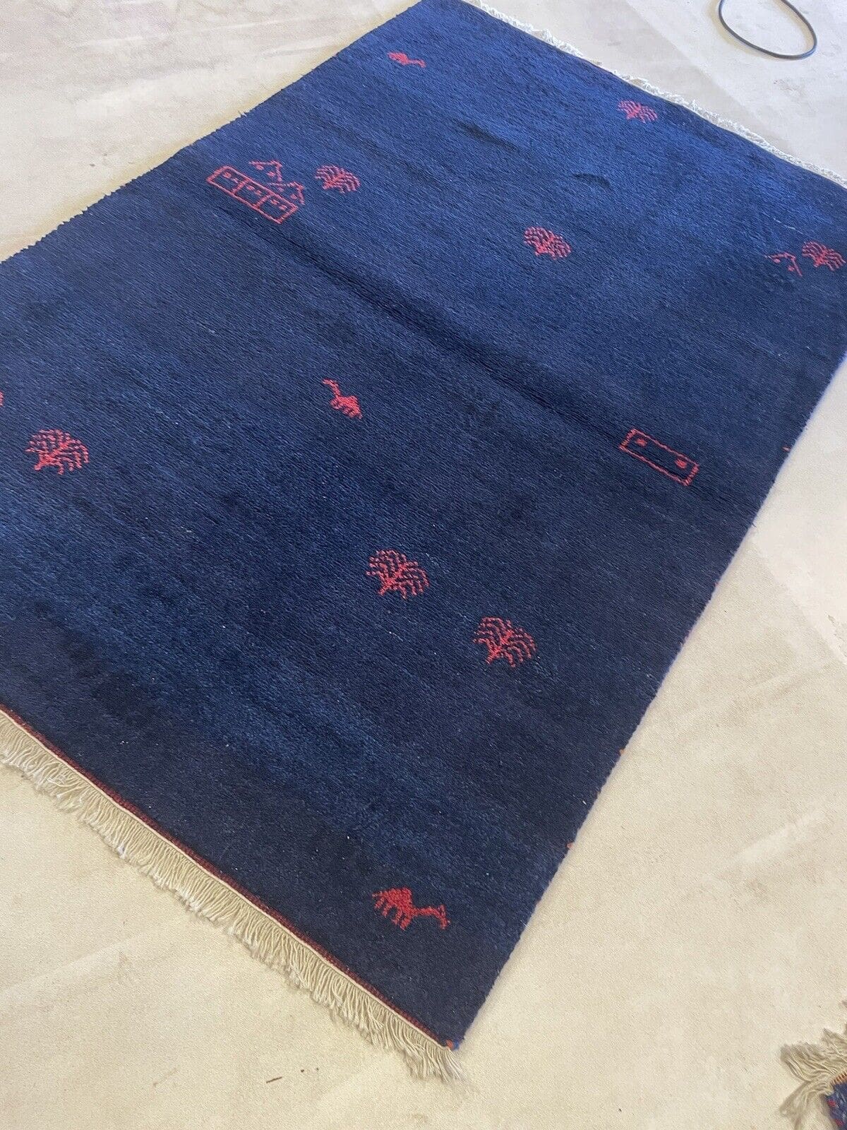 Eleganter Gabbeh Teppich 180×120 cm – 100% handgesponnene Wolle, feine Teppich Kunst in Marin Blau, handgeknüpft, Perserteppich