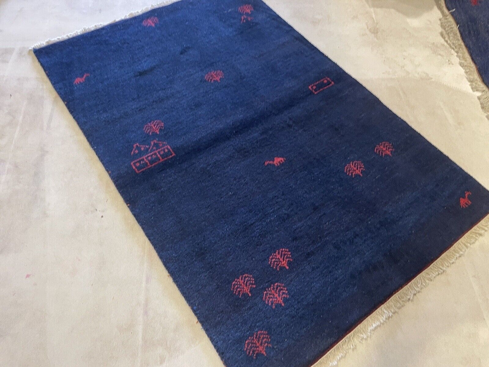Der Gabbeh Teppich ist in verschiedenen Größen erhältlich, was ihn vielseitig einsetzbar macht. Ob im Wohnbereich, im Schlafzimmer oder als stilvolles Element in einem Flur – dieser Teppich fügt sich nahtlos in jede Einrichtung ein und wertet jeden Raum optisch auf. Der Zustand dieses handgeknüpften Teppichs ist ausgezeichnet, was ihn zu einer lohnenden Investition macht.