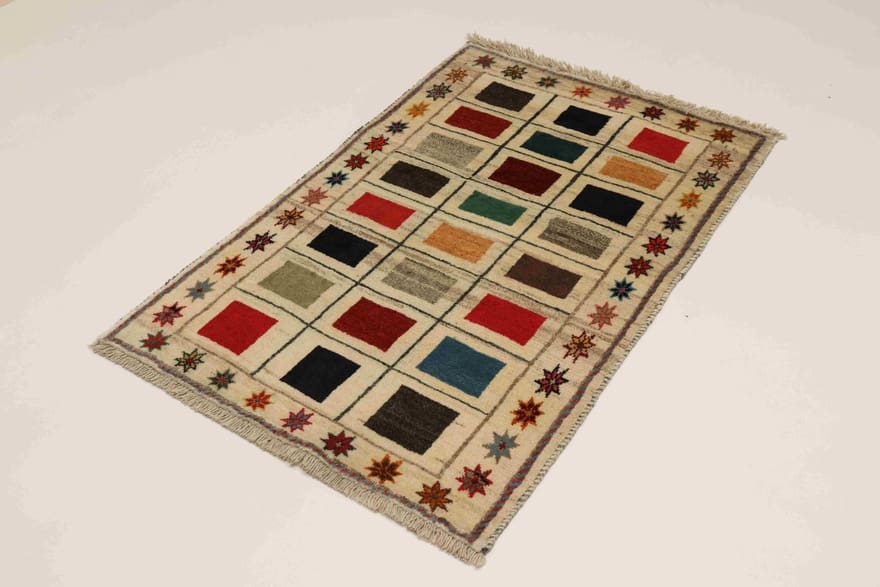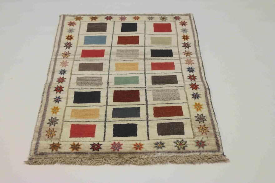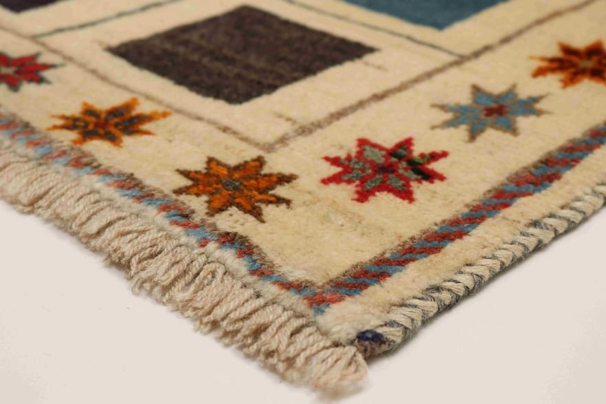 Eleganter Ghashghai Teppich | Knotendichte: 160.000 – 200.000 Knoten/m² | Material: 100% handgesponnene Wolle | Größe: 131×82 cm | In neuem Zustand | Herkunft: Iran / Persien | Farbe: Weiß/Beige | Florhöhe: ca. 10 mm | Handgeknüpft | Rechteckige Form
