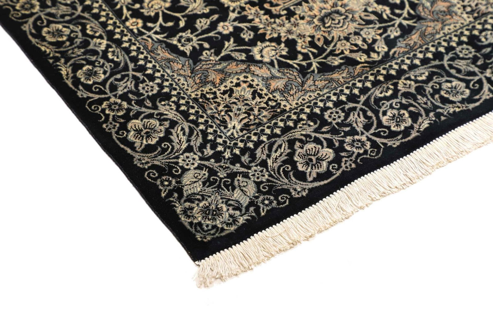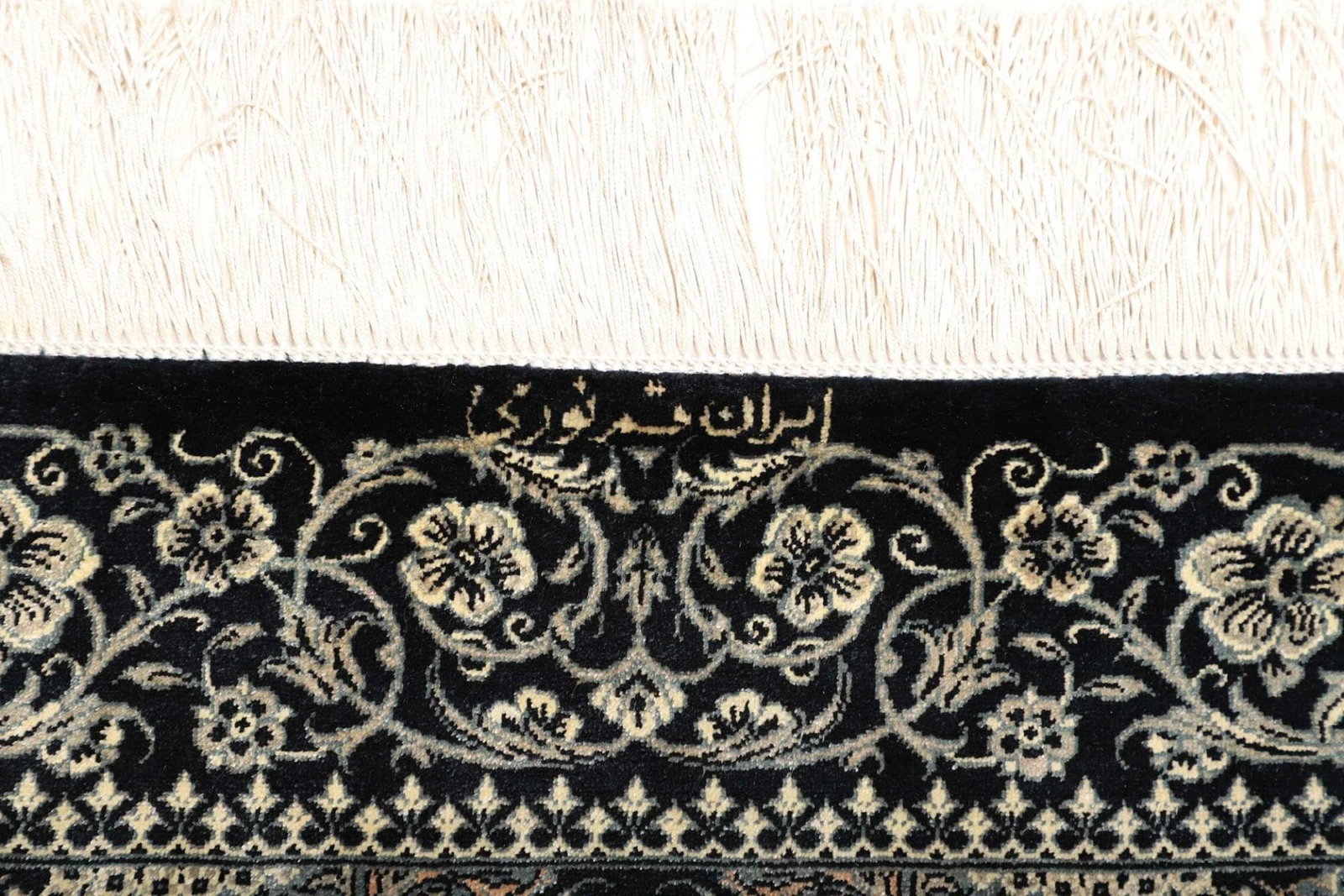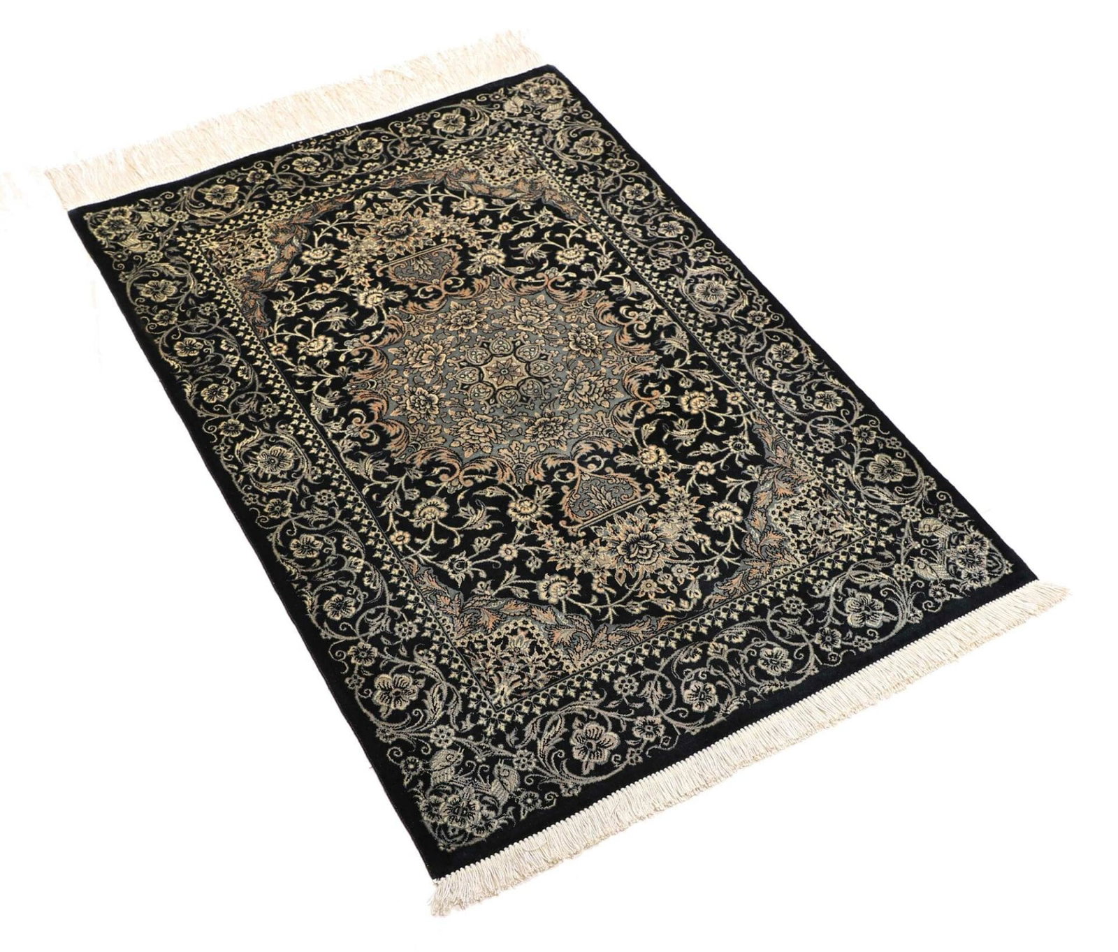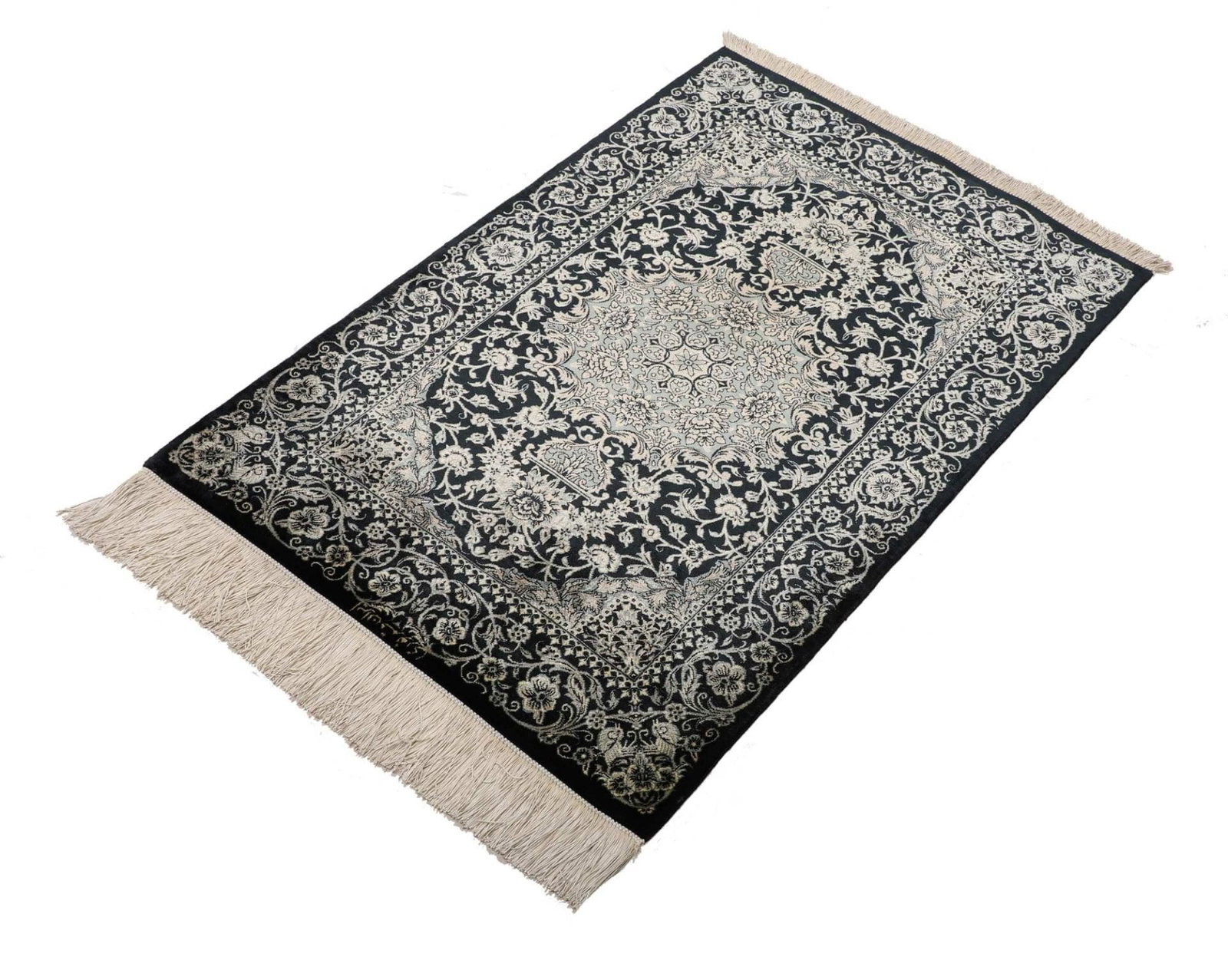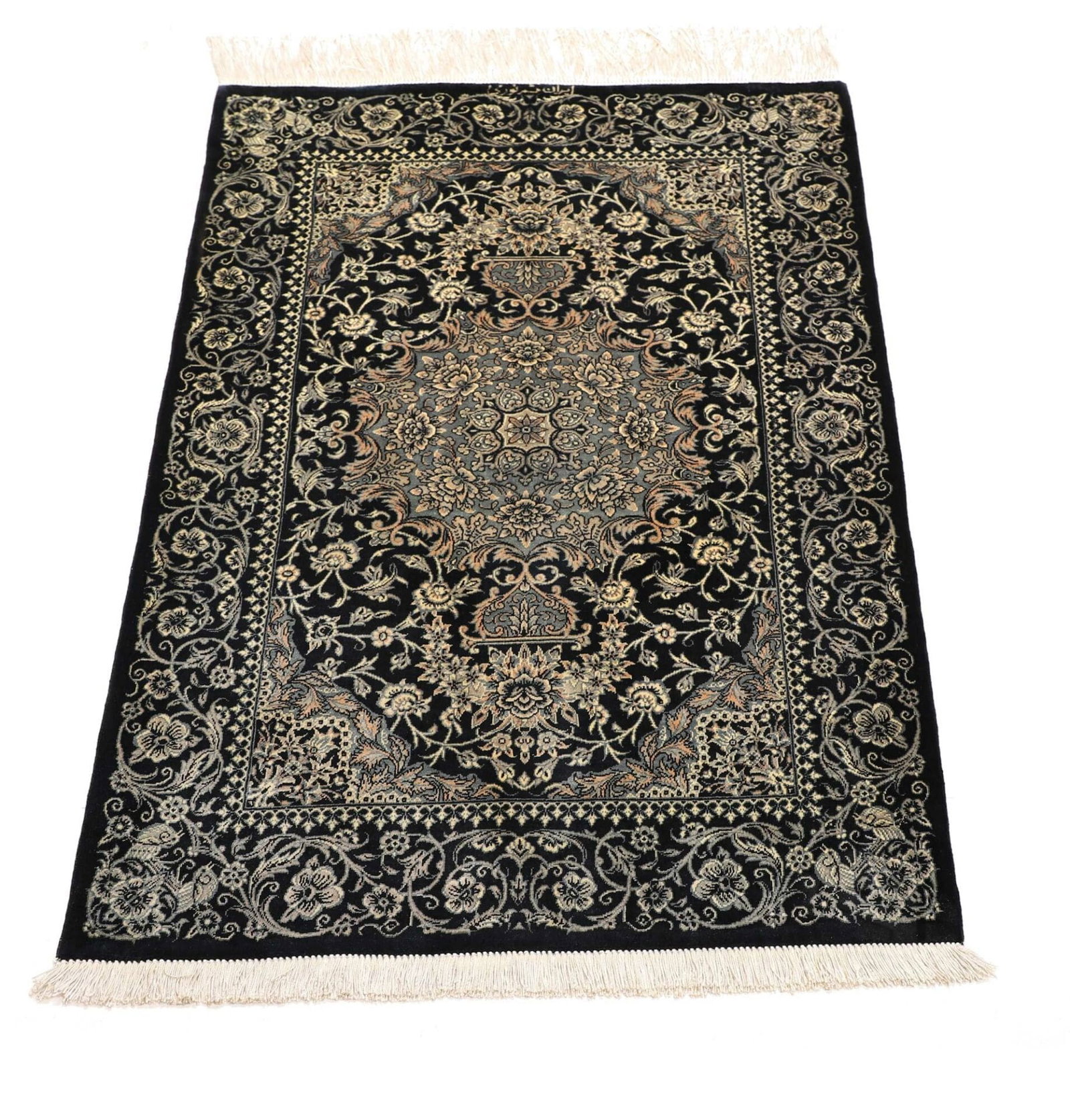 | Ghom Teppich | Knotendichte: ca. 900.000 Knoten/m² | Material: 100% Seide | Größe: 61 x 88 cm | In ausgezeichnetem Zustand | Herkunft: Iran | Verarbeitung: Handgeknüpft | Höhe: ca. 4 mm |