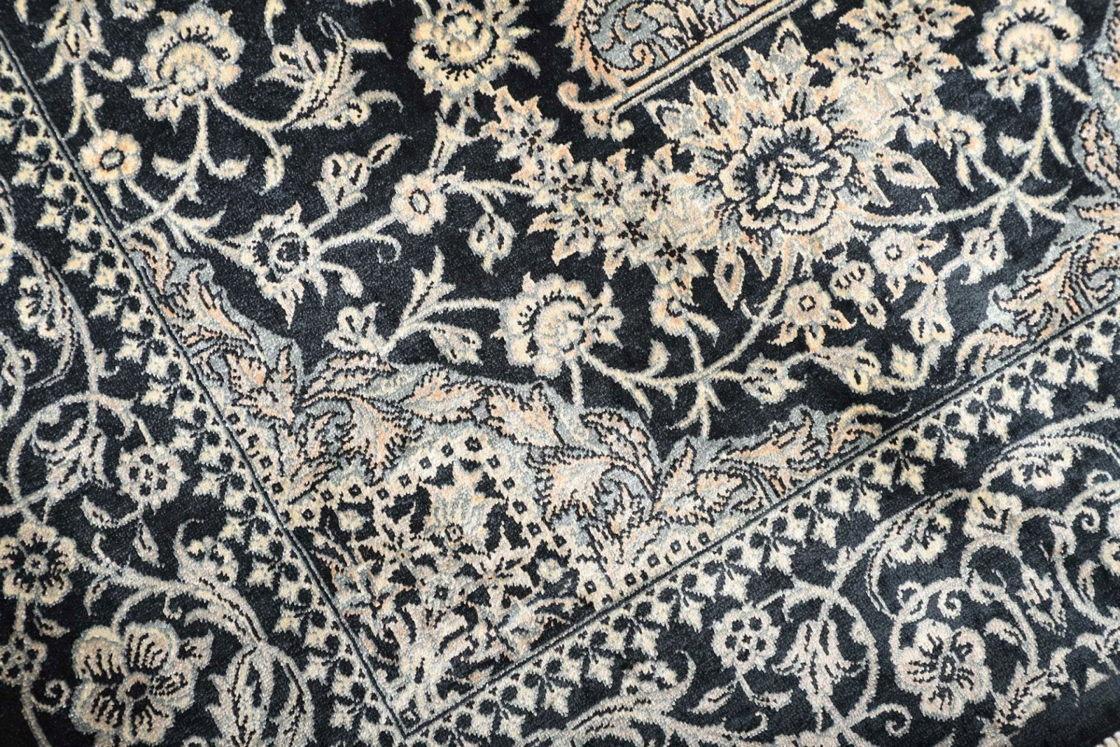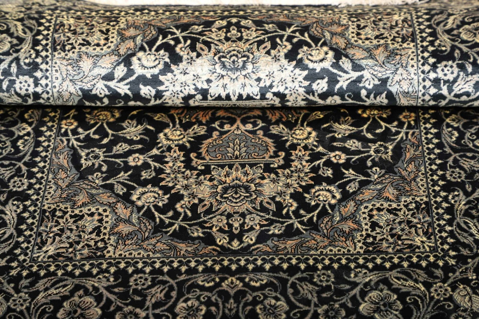 Der Teppich ist aus hochwertiger Seide gefertigt, die ihm eine bemerkenswerte Weichheit und einen feinen Glanz verleiht. Seide ist bekannt für ihre Strapazierfähigkeit und Langlebigkeit. Zudem sind Teppiche aus Seide widerstandsfähig gegen Verschmutzungen und behalten ihre Schönheit über viele Jahre hinweg. Die Knotendichte dieses Ghom Teppichs ist äußerst hoch, was bedeutet, dass er mit vielen Knoten pro Quadratmeter gefertigt wurde. Diese hohe Knotendichte sorgt nicht nur für eine komplexe und detailreiche Optik, sondern auch für eine besondere Haltbarkeit und Widerstandsfähigkeit.