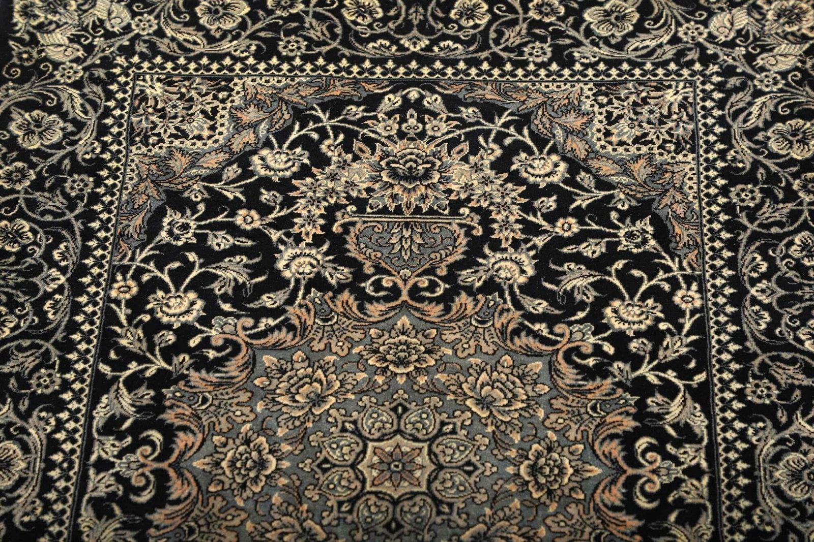 Der Teppich besticht durch sein elegantes und kunstvoll gestaltetes Muster. Die Motive sind oft eine harmonische Kombination aus floralen Elementen und geometrischen Formen, die sich zu einem beeindruckenden Gesamtbild zusammenfügen. Solche Designs sind nicht nur ästhetisch ansprechend, sondern tragen auch eine tiefere symbolische Bedeutung. Zum Beispiel stehen florale Muster oft für Wachstum und Leben, während geometrische Formen Stabilität und Harmonie repräsentieren.