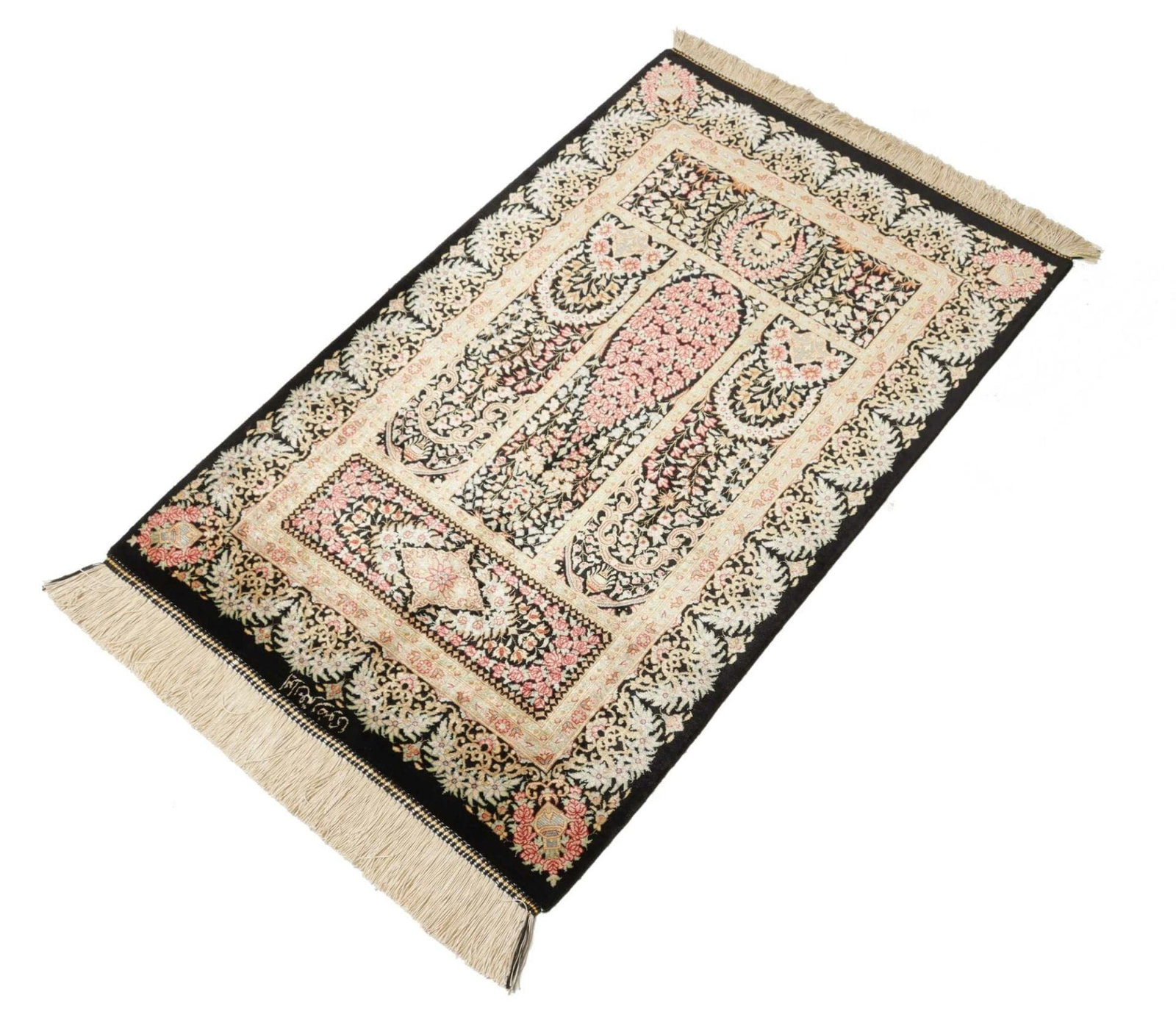 Eleganter Ghom Teppich 63 x 93 cm aus Seide, handgeknüpft, Perserteppich