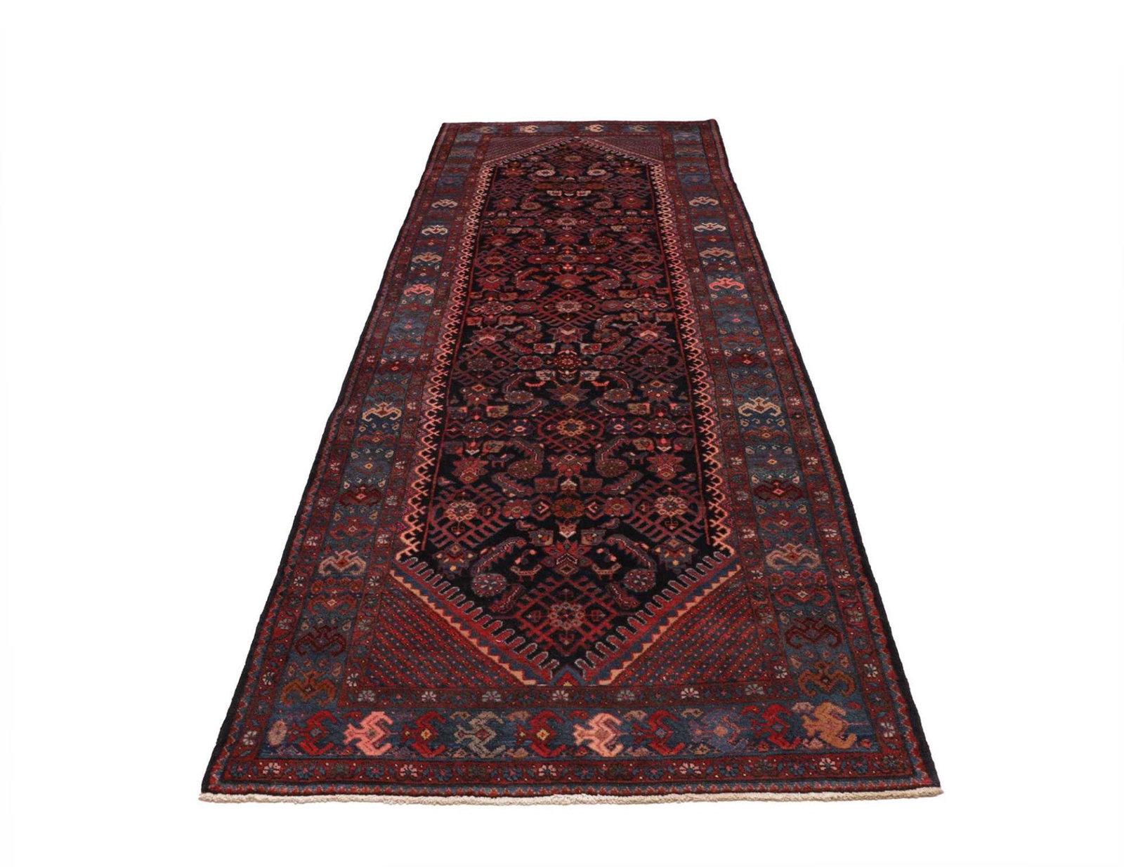 Hamadan Teppich | Knotendichte: ca. 200.000 Knoten/m² | Material: 100% Schurwolle und 100% Baumwolle | Größe: 115 x 372 cm | Muster: Herati und geometrische Formen | In ausgezeichnetem Zustand | Herkunft: Iran | Verarbeitung: Handgeknüpft