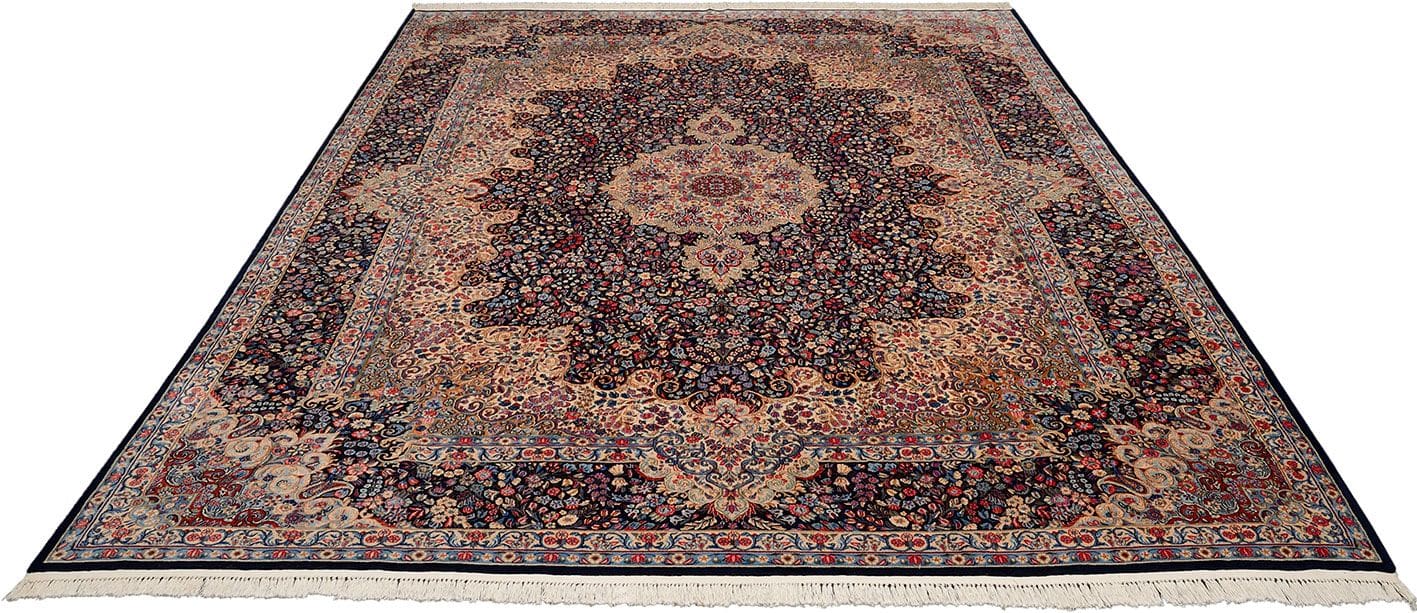 Handgeknüpfter Kirman Teppich | Knotendichte: ca. 500.000 Knoten/m² | Flor: 100% Schurwolle | Kette: 100% Baumwolle | Größe: 303 x 420 cm | Ursprung: Iran | Höhe: ca. 10-12 mm | Feine florale Muster | Ideal für große Land- und Bauernhäuser