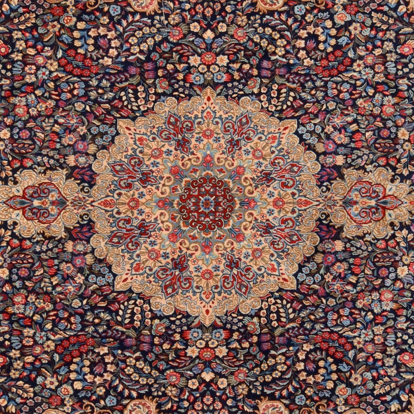 Das florale Muster, das den Teppich ziert, zeigt die hohe Kunstfertigkeit und die tief verwurzelte Tradition der persischen Teppichknüpferei. Jedes Detail ist sorgfältig durchdacht und spiegelt die kulturelle Bedeutung von Ornamenten und Symbolik in der persischen Kunst wider. Die harmonischen Farben und die feinen Linien machen diesen Teppich zu einem zeitlosen Klassiker, der sowohl in modernen als auch in traditionellen Wohnkonzepten hervorragend zur Geltung kommt.