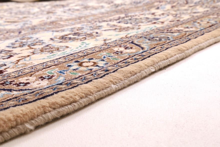 Ein bemerkenswertes Merkmal dieses Nain-Teppichs ist seine Langlebigkeit. Der hochwertige Materialeinsatz und die handgeknüpfte Technik garantieren, dass der Teppich viele Jahre hält, selbst bei täglicher Beanspruchung. Zudem wird die Verwendung von natürlichen Farbstoffen, die aus Pflanzen gewonnen werden, oft in der Nain-Region praktiziert. Diese umweltfreundlichen und gesundheitlich unbedenklichen Farben halten die Schönheit des Teppichs über lange Zeit aufrecht, ohne dass sie verblassen oder ihre Intensität verlieren. Ein Nain-Teppich ist damit nicht nur ein dekoratives Element, sondern auch eine nachhaltige Investition in Qualität und Handwerkskunst.