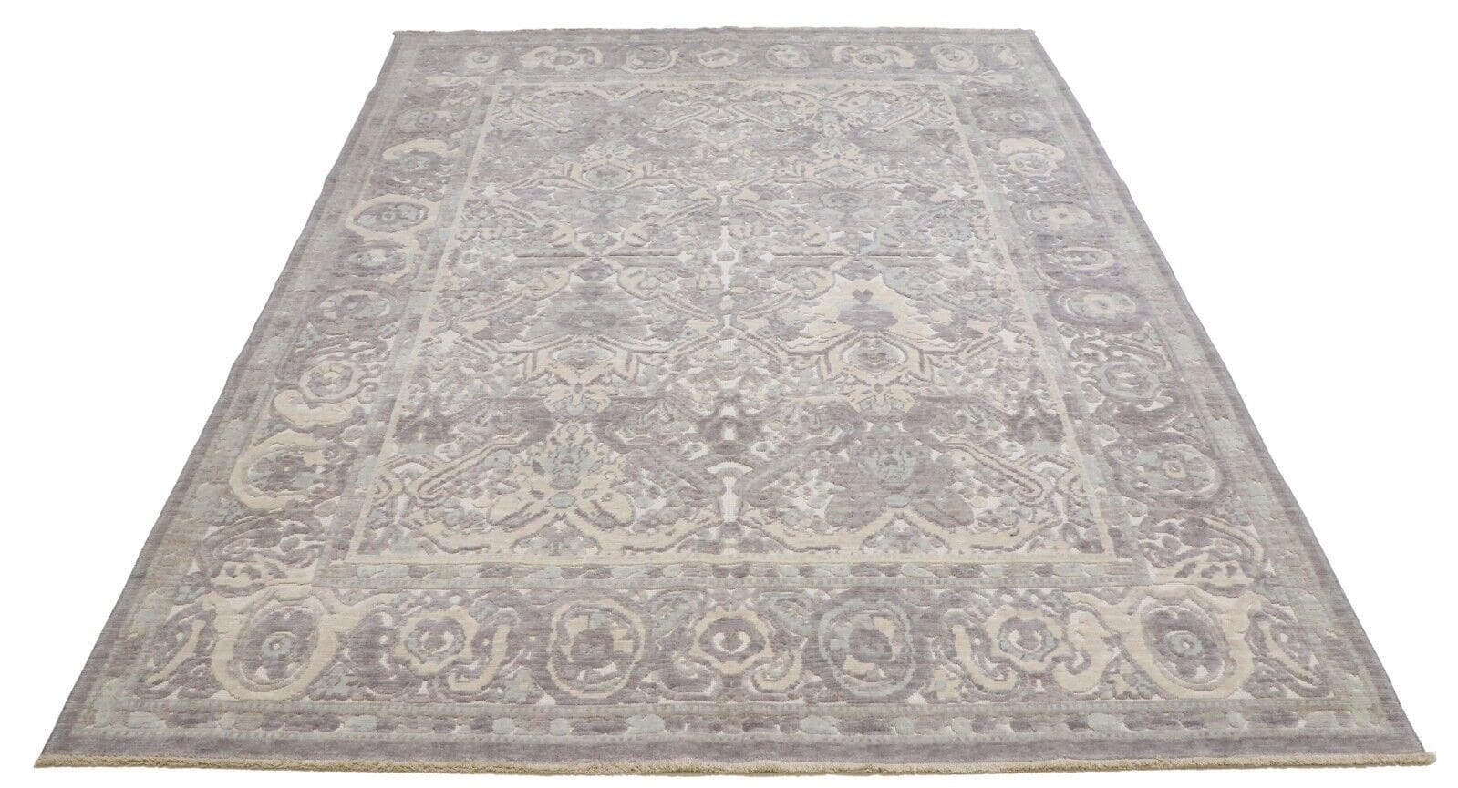 Handgeknüpfter Designer Teppich | Größe: 184 x 230 cm | Material: Echte Wolle und Baumwolle | Florhöhe: Hochflor | Muster: Orientalisch mit floralen Elementen | Farbe: Beige mit Creme- und Pastelltönen | Zustand: Neu ohne Etikett | Herkunft: Türkei | Für Fußbodenheizung geeignet | Stil: Modern mit traditionellem Einfluss