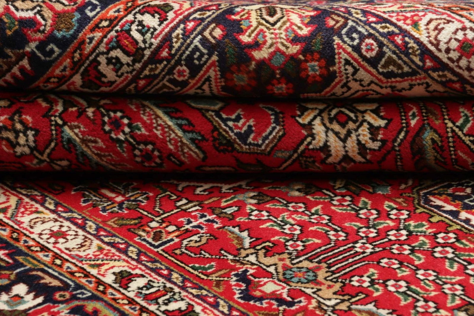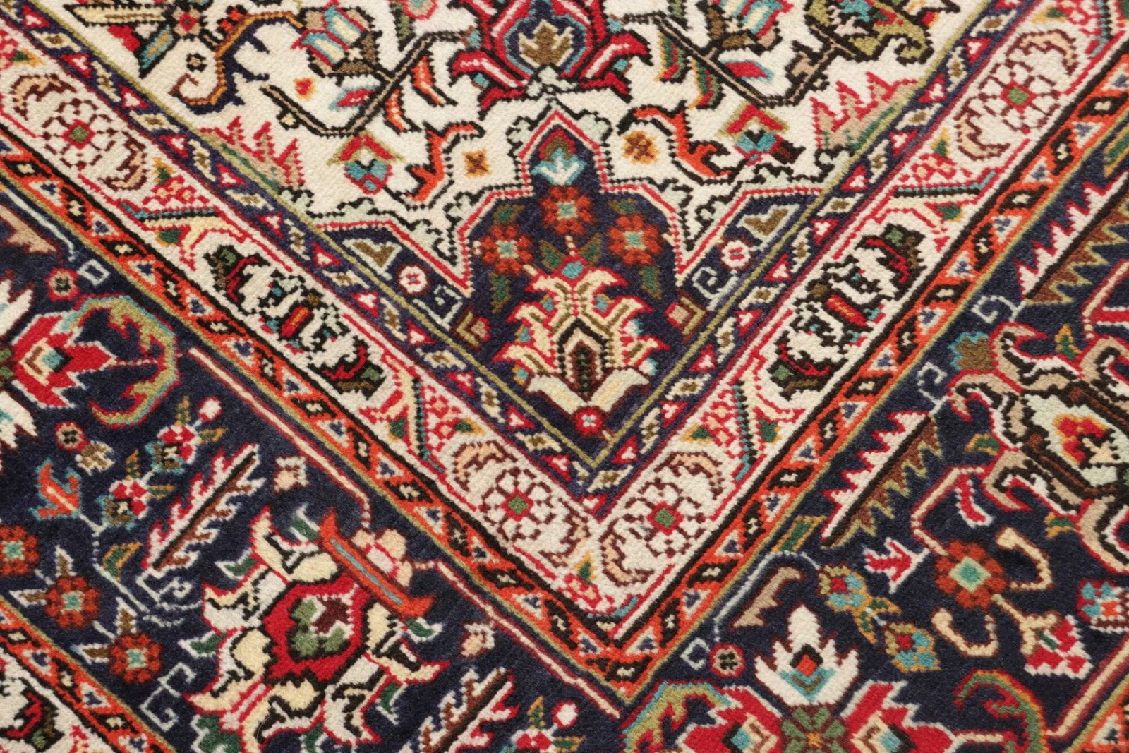 Ein besonderes Merkmal dieses Täbriz Teppichs ist seine hohe Knotendichte, die eine entscheidende Rolle bei der Qualität und Haltbarkeit spielt. Die Knotendichte kann oft 300.000 Knoten pro Quadratmeter erreichen, was für die Feinheit und Detailtreue der Muster verantwortlich ist. Darüber hinaus bietet die Schurwolle hervorragende Eigenschaften in Bezug auf Wärmeisolierung und Geräuschdämmung, wodurch der Teppich ideal für den Einsatz in Wohnräumen oder Büros ist.